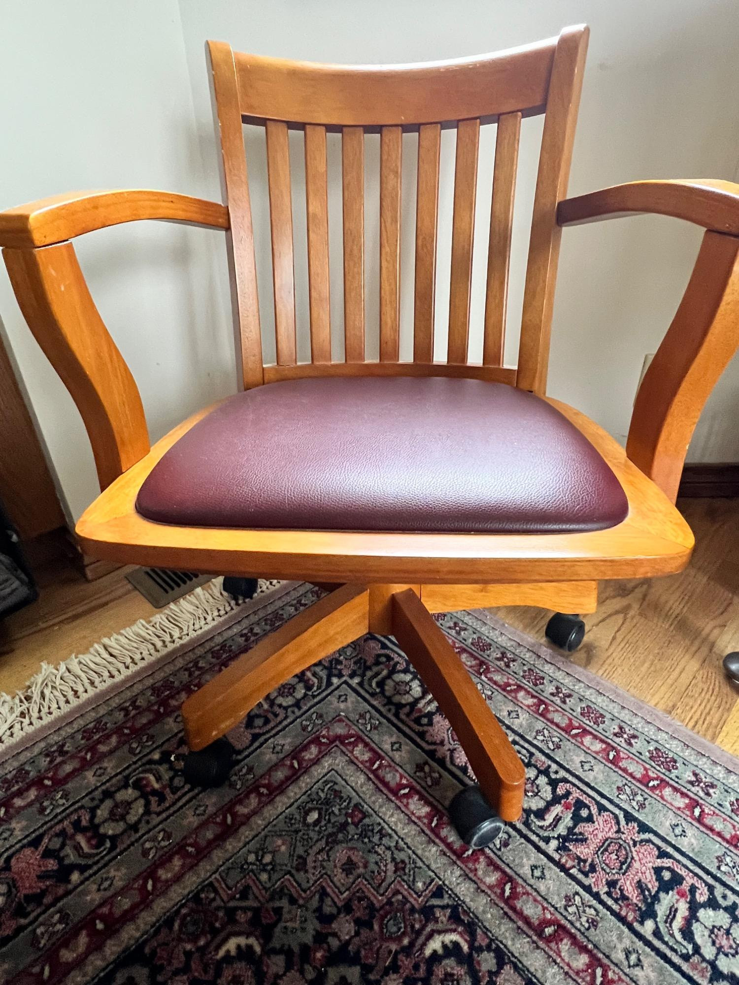 Lot # 67 - Vintage Solid Wood Bankers Chair - Rolling and Swivel, Leather Seating