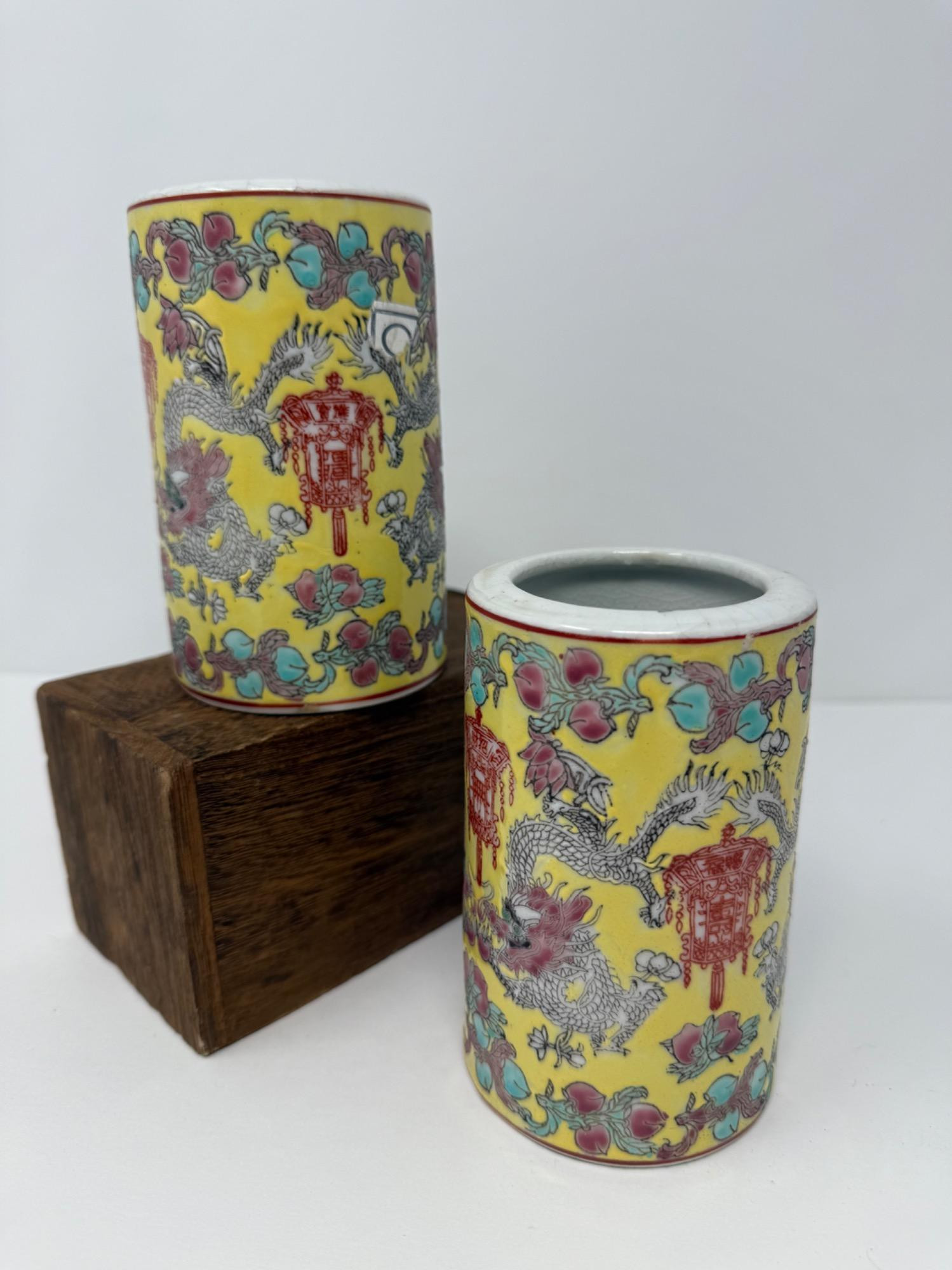 Chinese Antique Porcelain Brush Pots. 5" Tall x 3" W
