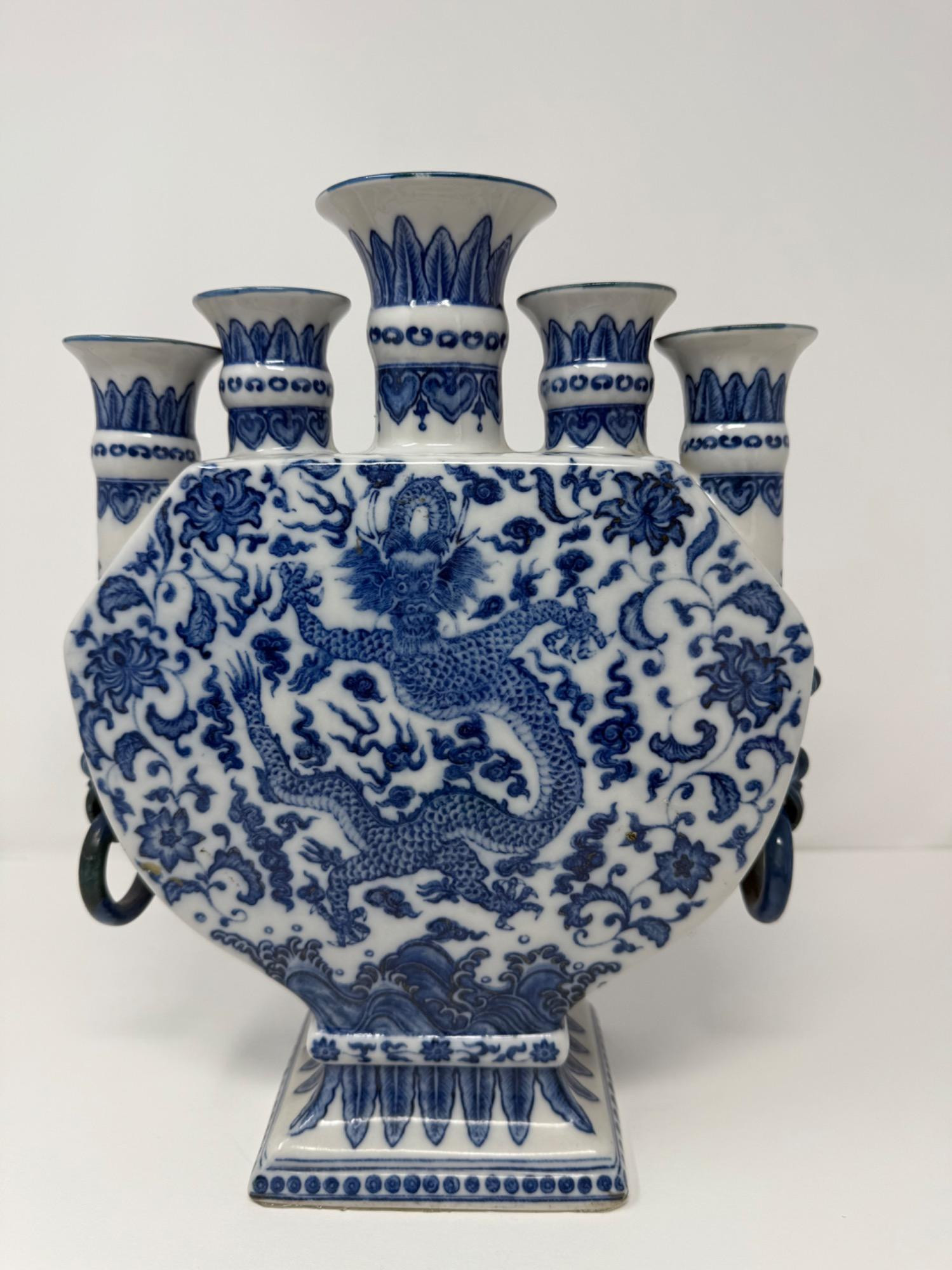 Chinese Blue and White Five Neck Vase. 11.5 T x 9.5 W Hong Horizons- Limited Edition 171/500