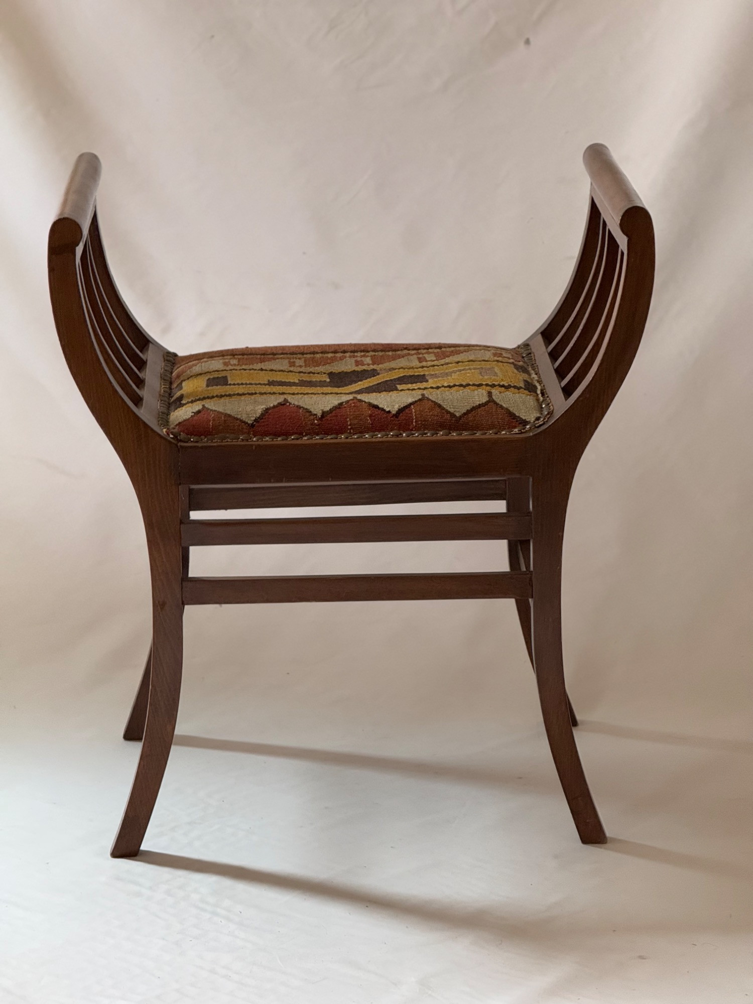 Lot # 116 - Antique-Style Wooden Kilim Bench Hand Woven Upholstered Seat