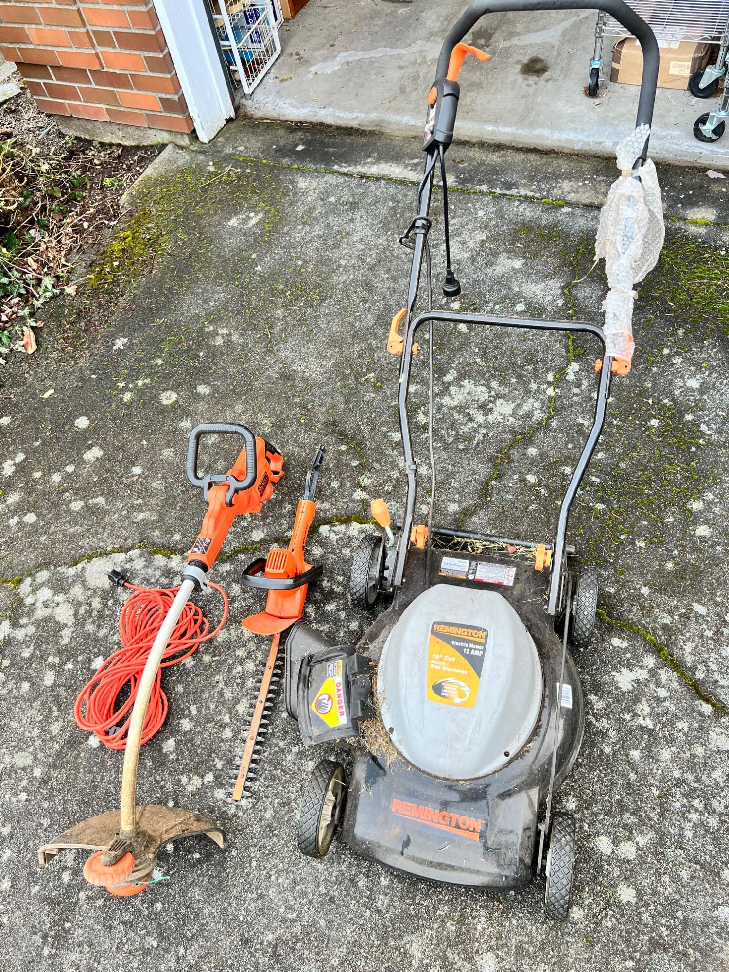 Lot # 157 - Remington Electric Mower and Electric Yard Tools