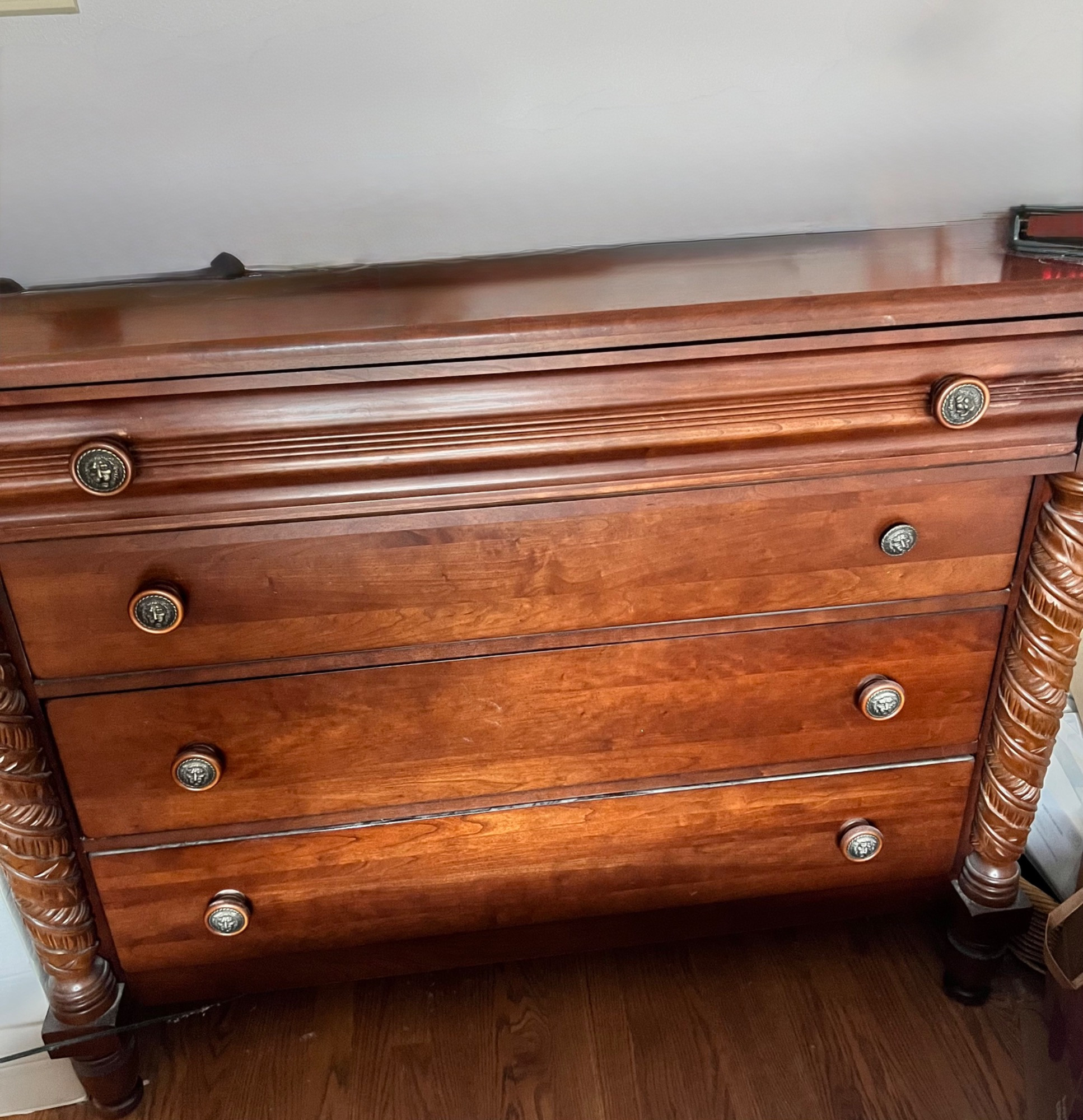 Lot # 180 - Antique Solid Wood Dresser with Carved Columns & Lion Head Drawer Pull