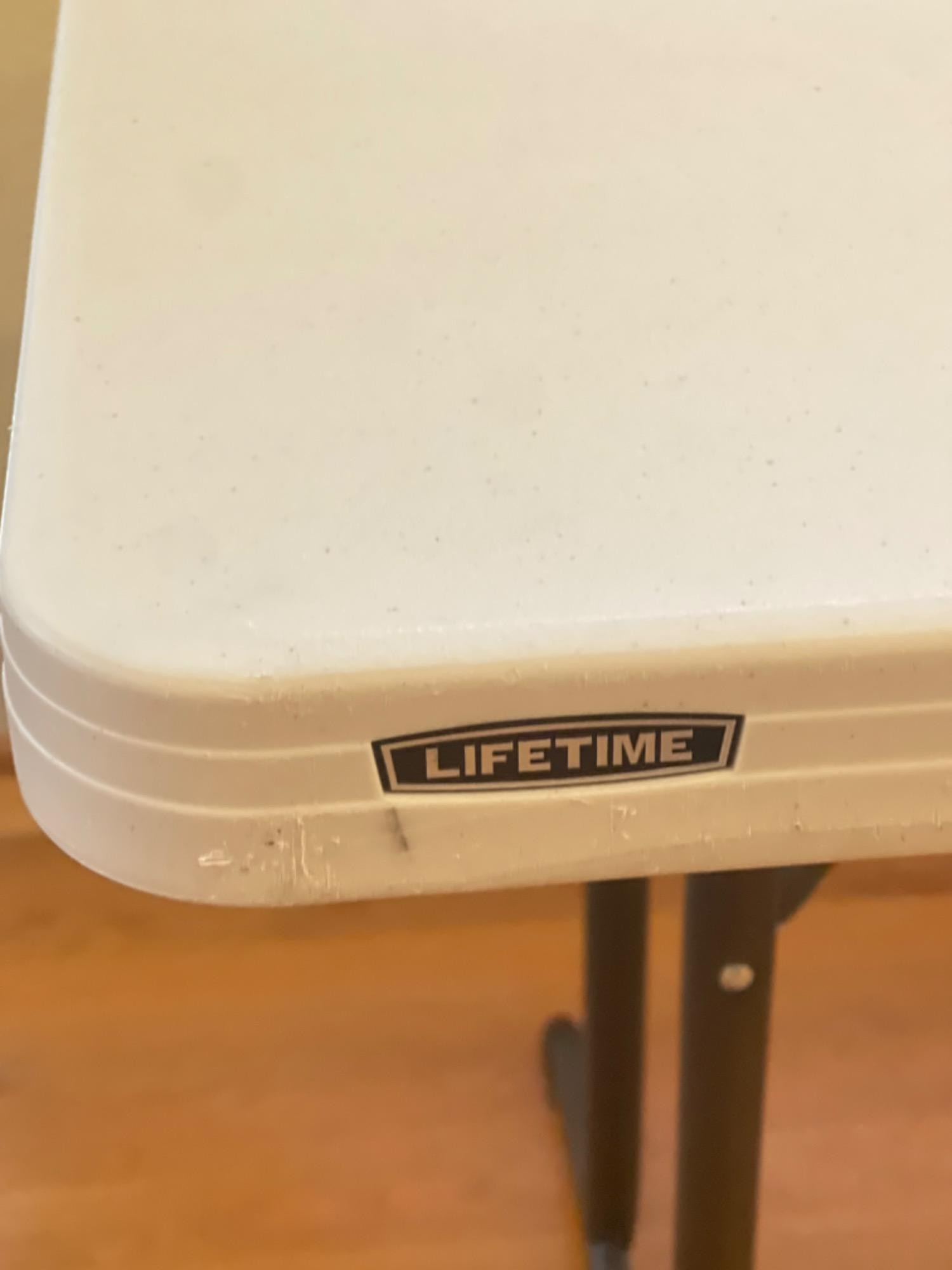 Lifetime Folding Table Condition: Multiple scuffs, scratches and stains. Sturdy and ready to use.