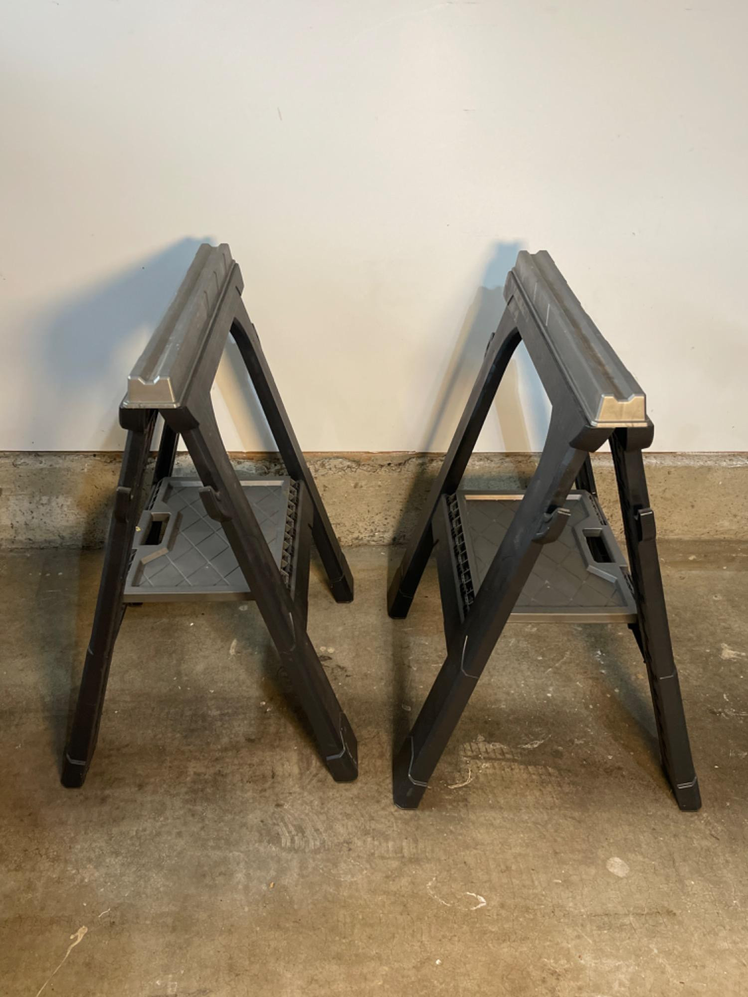 Lot # 162 - Large Assortment of Tools + Saw Horses