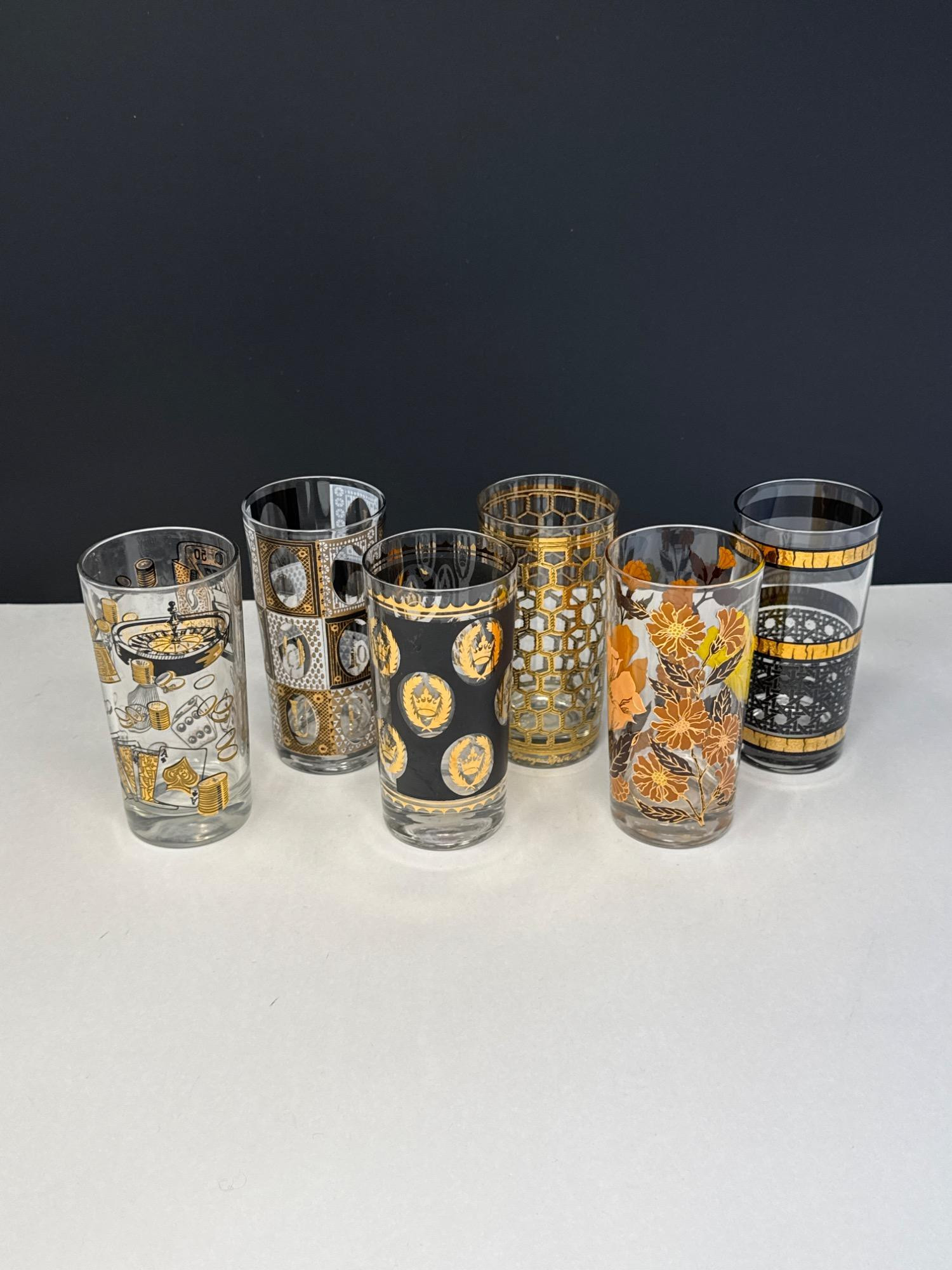 Assorted MCM 22K HighBall Glasses- 6pc *some gold has rubbed off due to typical vintage wear and tear