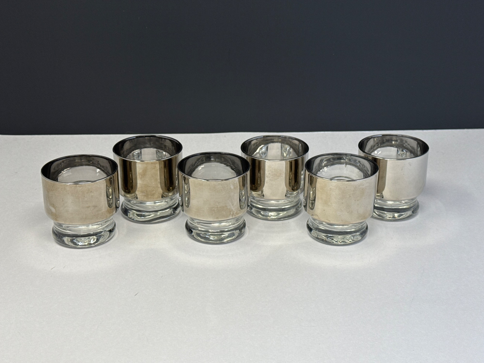 Lot # 217 - Dorothy Thorpe? Wide Silver Band Low Ball Glasses - set 6