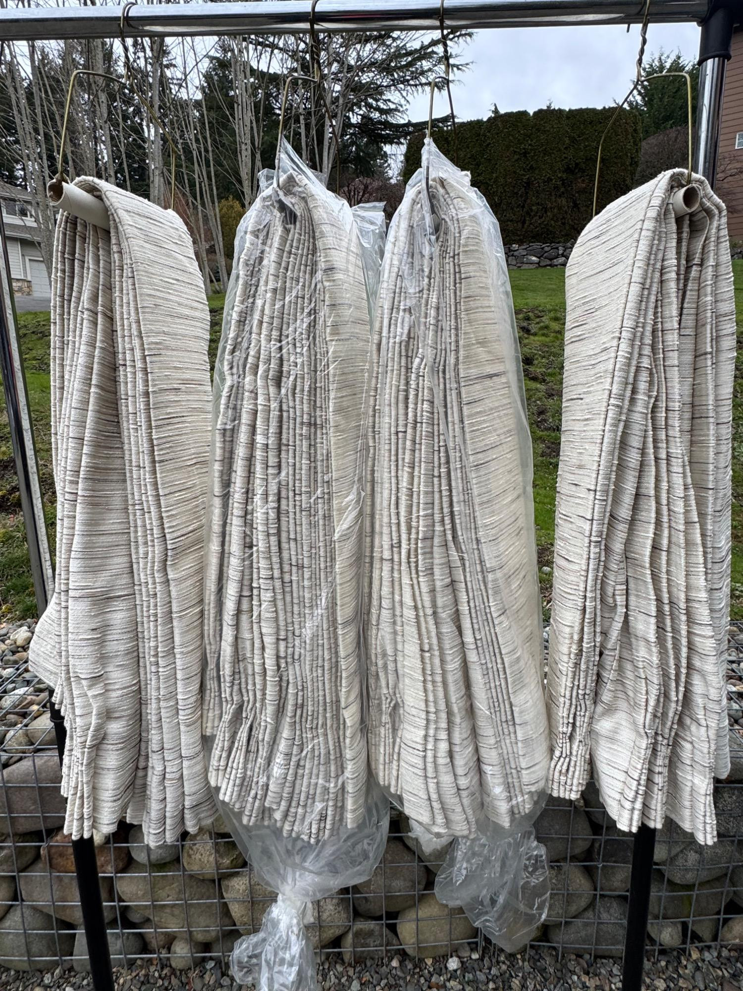 Pinch Pleat design. Thick nubby pattern material. Lined. A total of 4 panels.