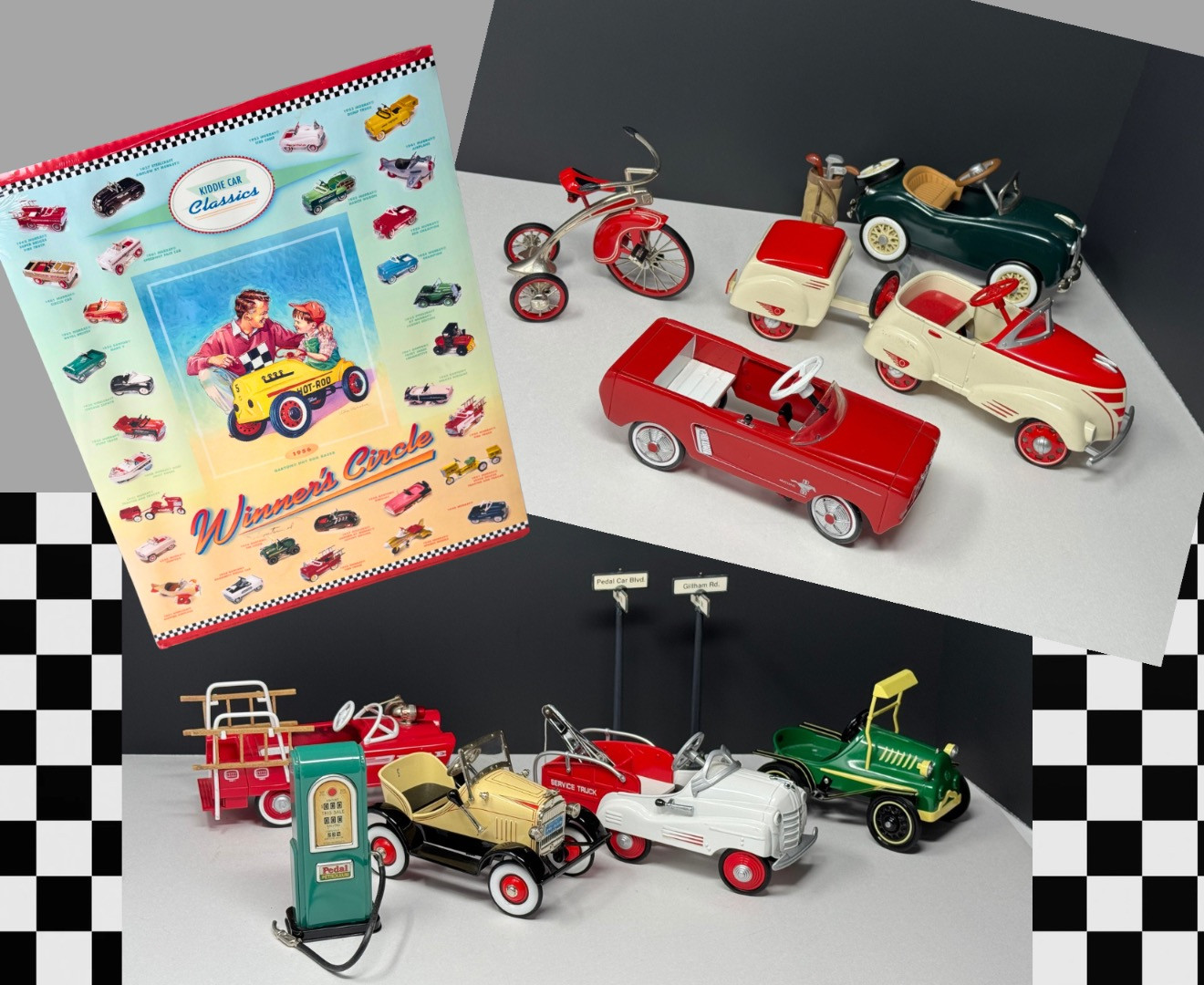 Hallmark Kiddie Car Classics- Lot #2 Lot includes 7 cars, gas pump, poster and 2 street signs. *Have most of the boxes