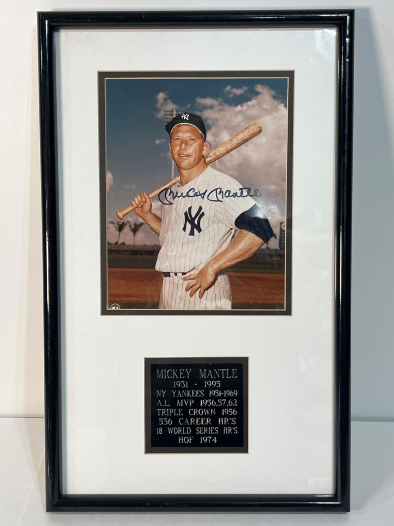 Lot # 1 - The Legendary Mickey Mantle Signed and Framed Photo with Plaque