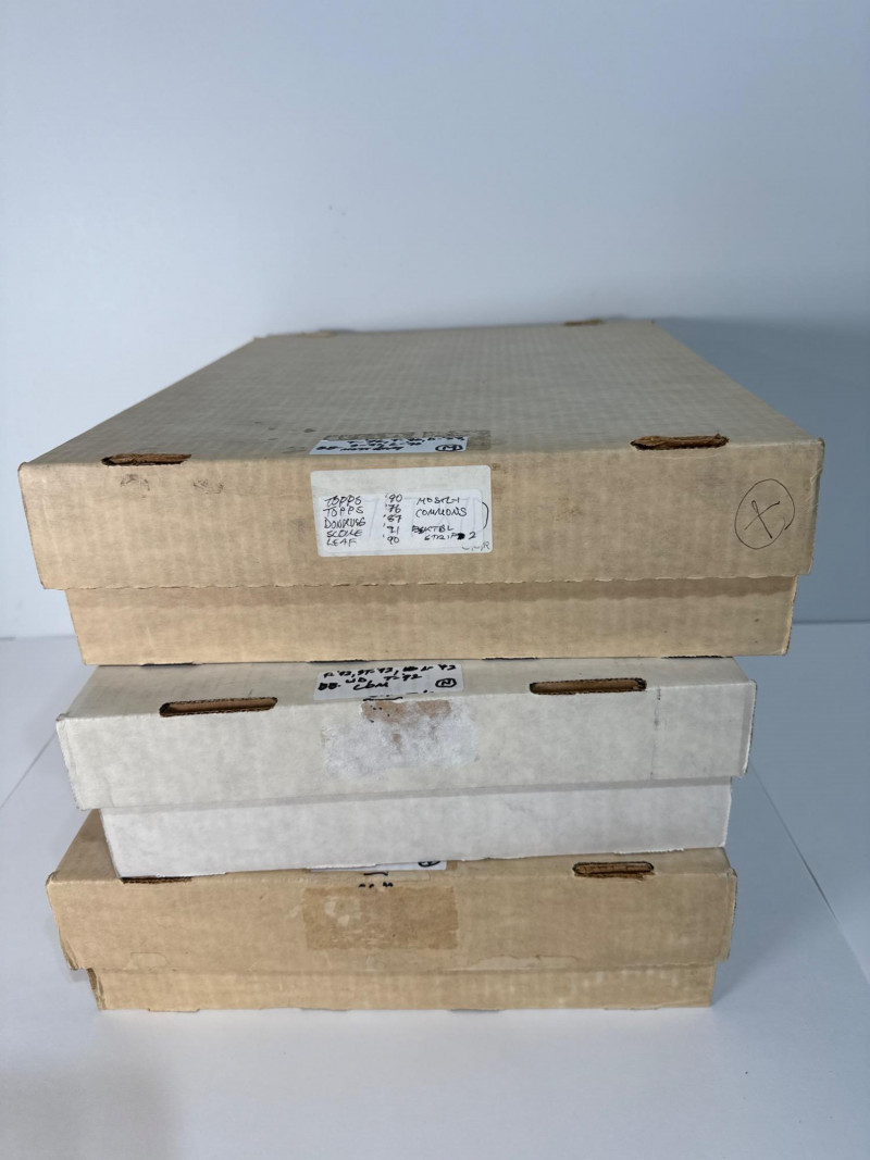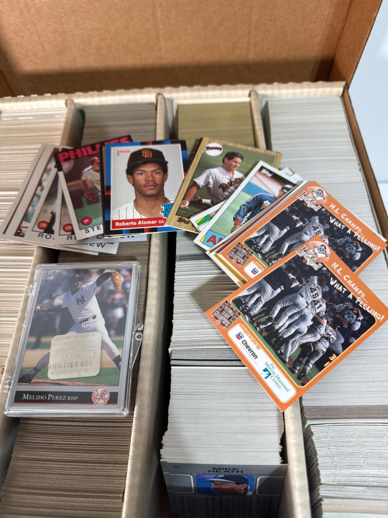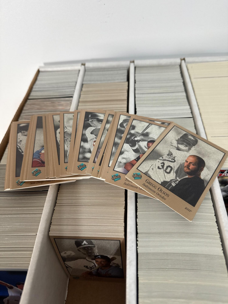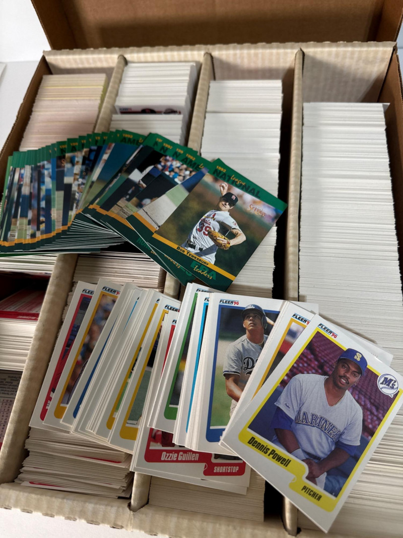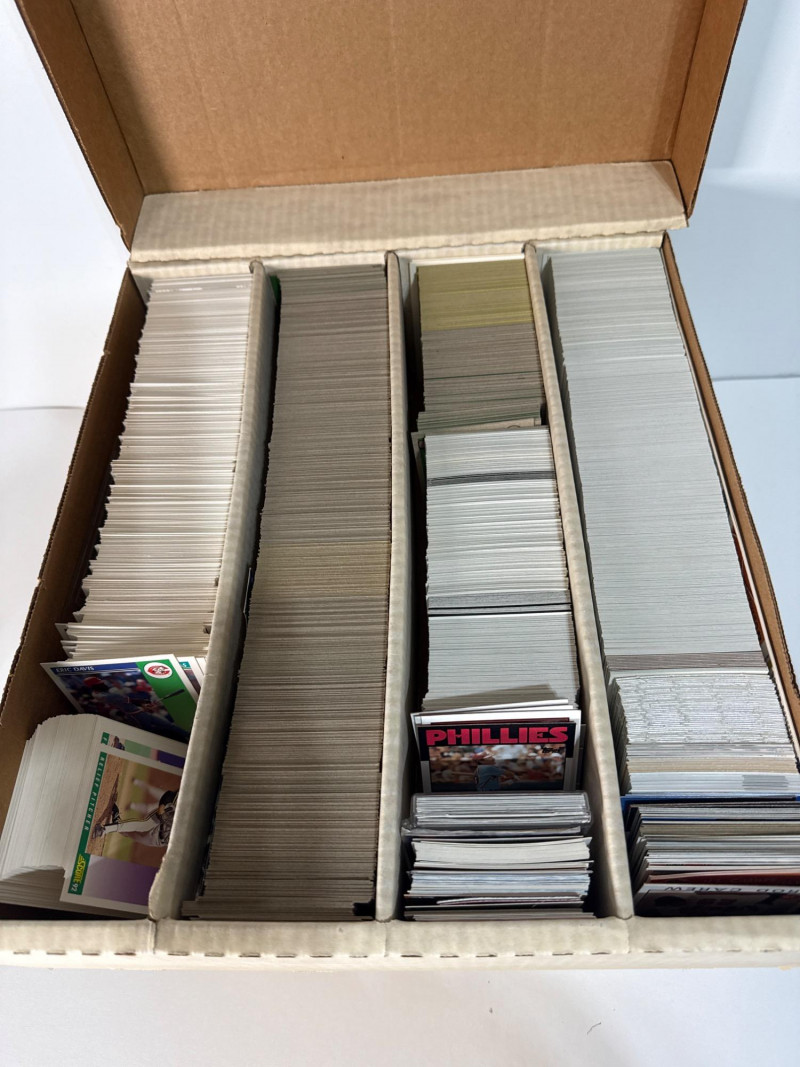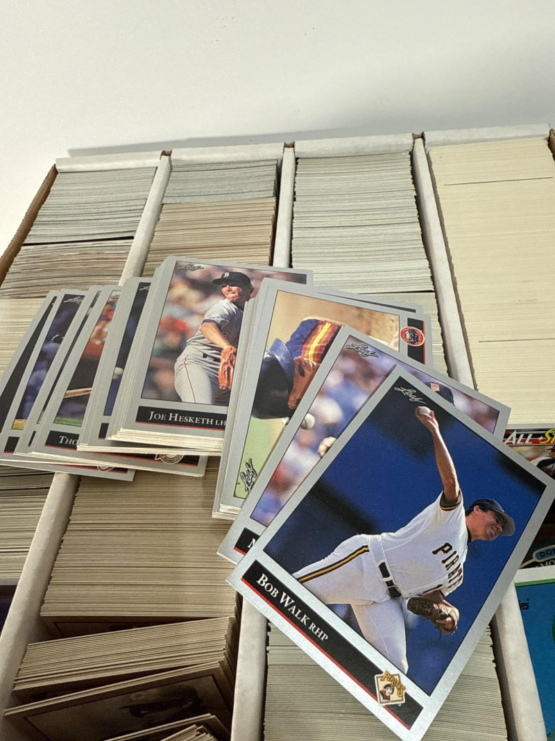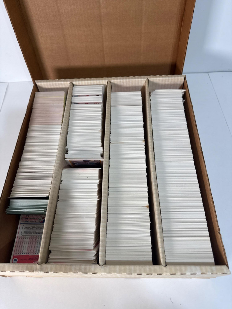 Box contains several different brands of cards, Upper Deck, Flair, Don Ross, Topps and many others. I have not gone through these boxes so you’re getting what you get. We took pictures of some not all. Please note that we do not go through trading card sets to assess their completeness. While we do make every effort to describe the exact contents of each lot, we cannot guarantee that a previously opened box contains every card advertised on its label. Unless the description expressly states that a case or box is sealed, please assume that the card set inside is or may be incomplete.