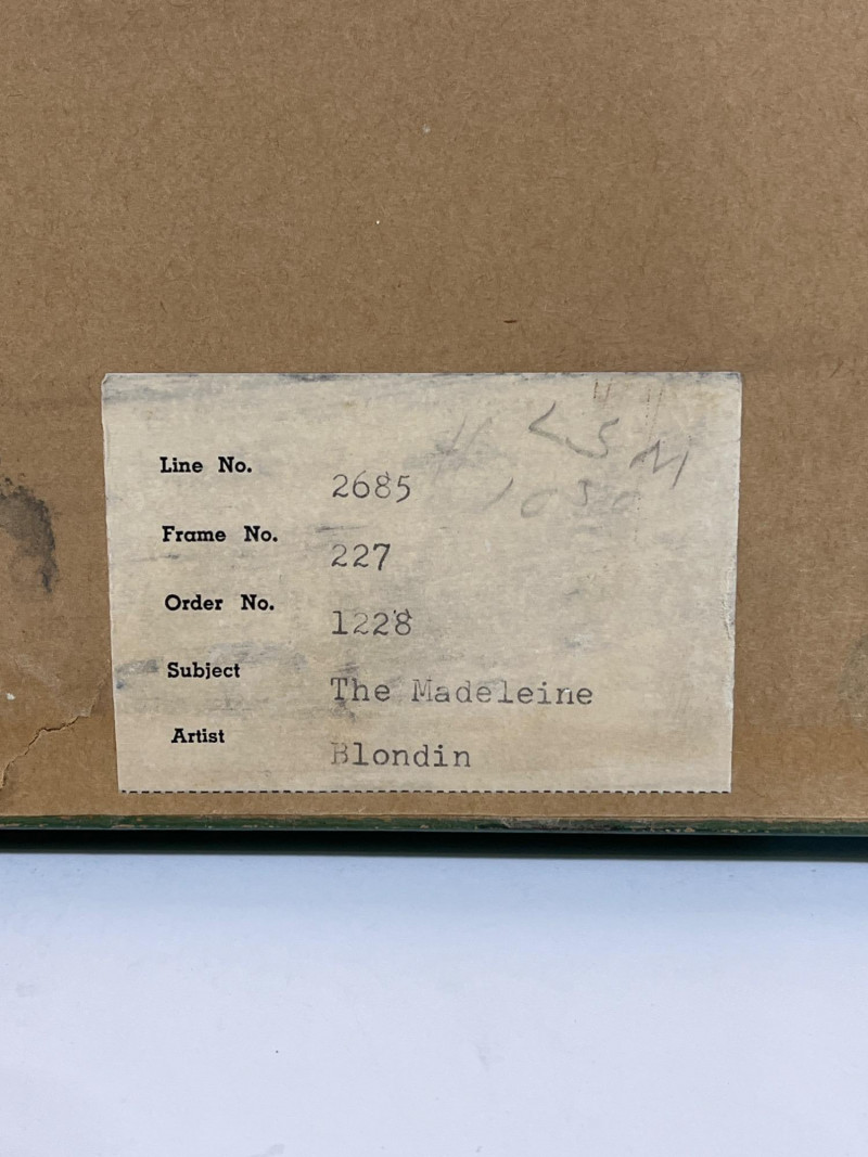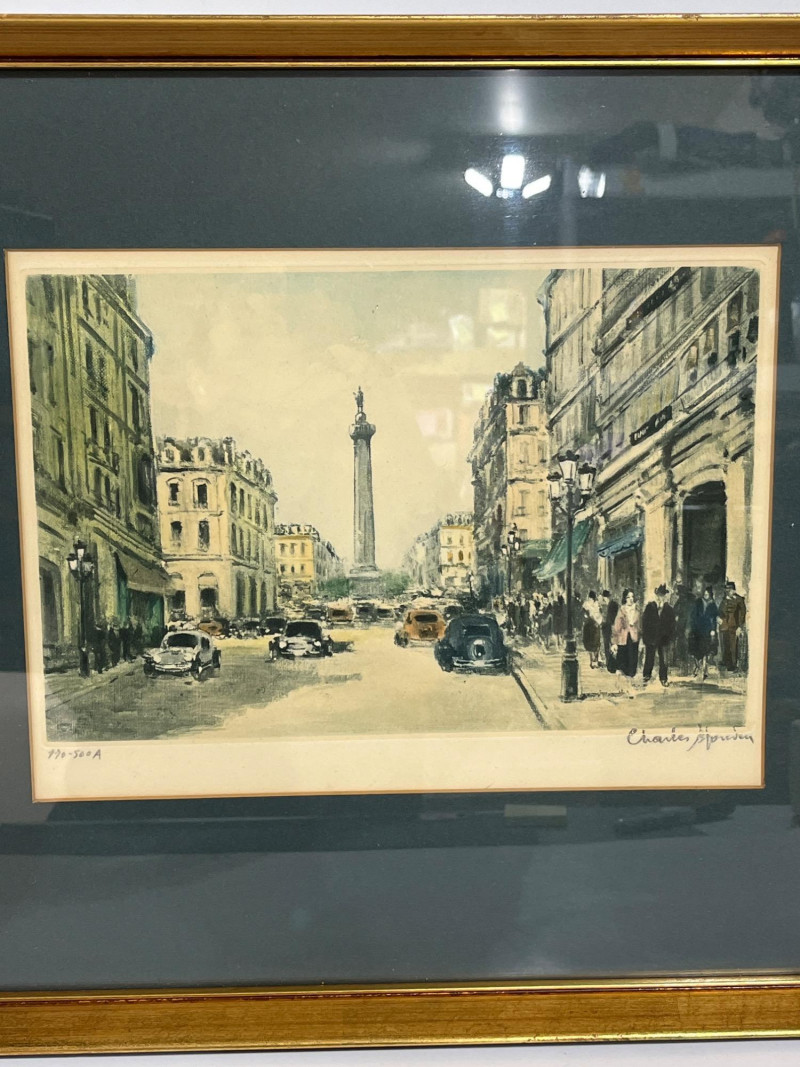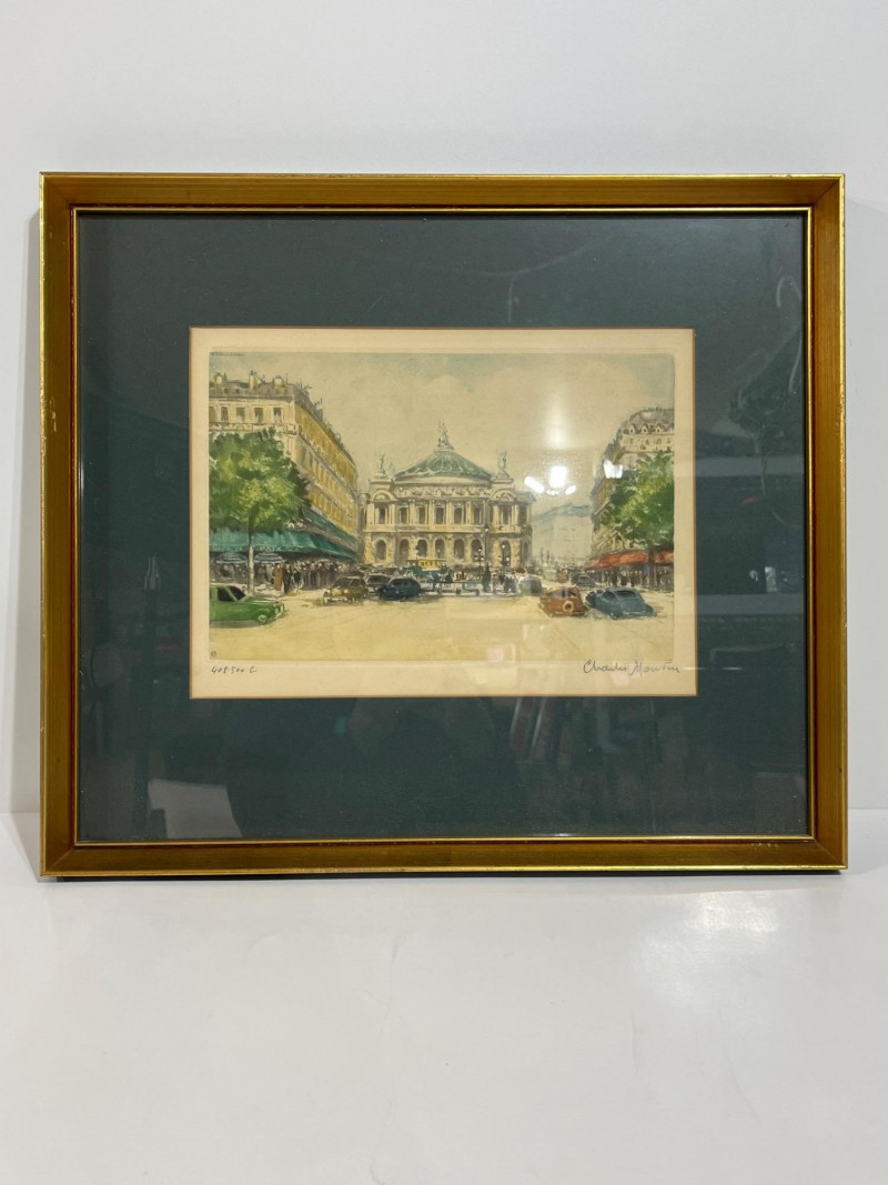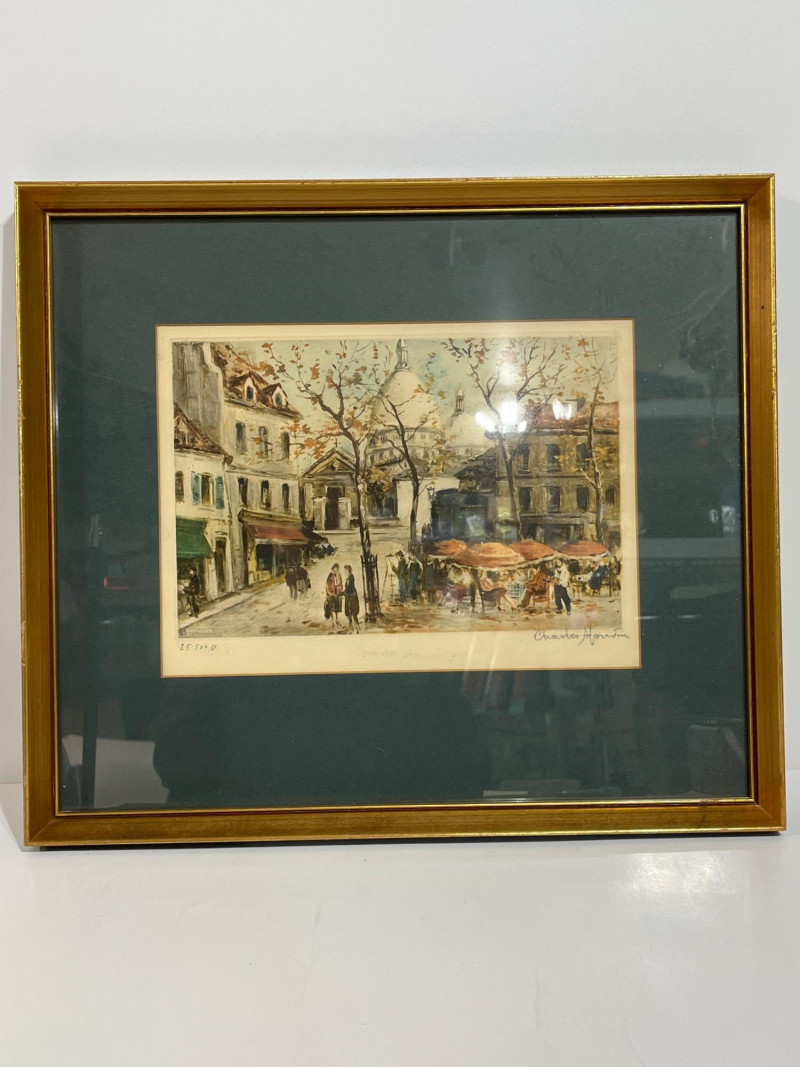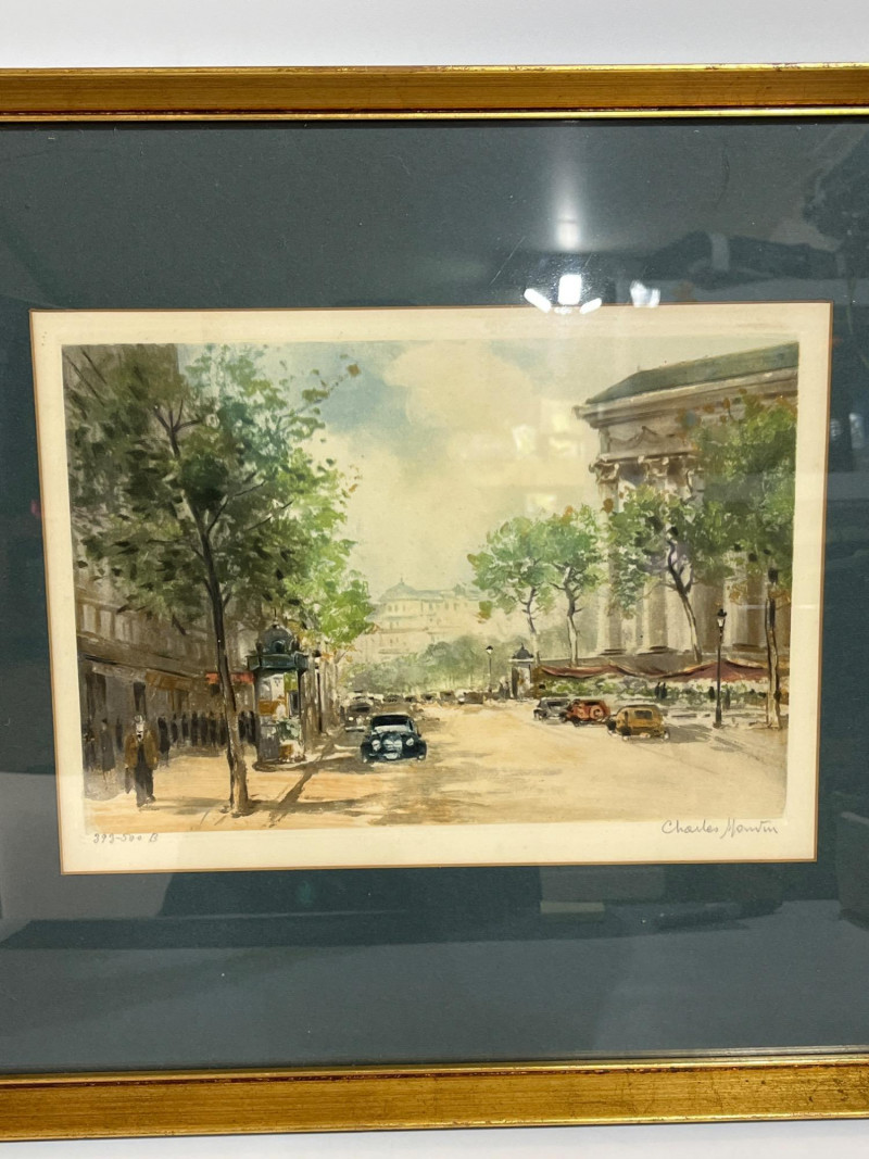 This lot is four etchings of France by the artist Charles Blondin. The paintings are numbered and professionally framed. The frames measure 18 3/4 x 16 and the art measures 12“ x 9“. The art itself is in great condition while the frames show some signs of wear.