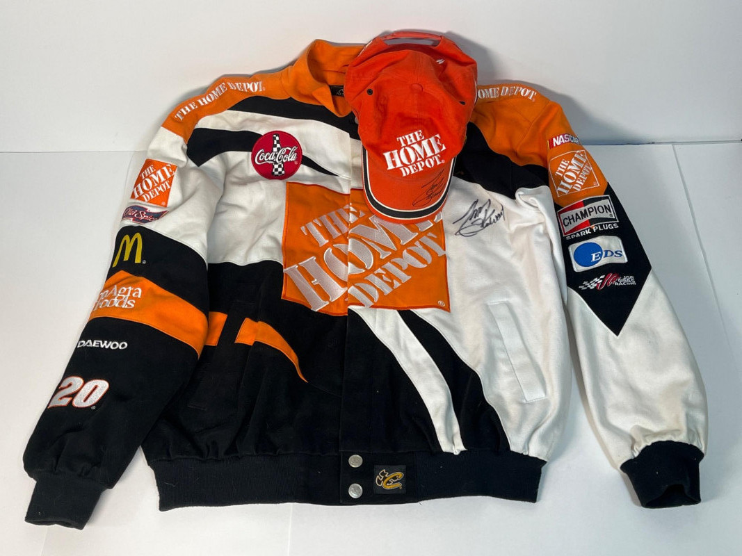 This lot is a Chase Authentics jacket and hat both signed in permanent marker by Tony Stewart The jacket is size large and as you can see from photos, both the jacket and hat have been worn and have some signs of wear.