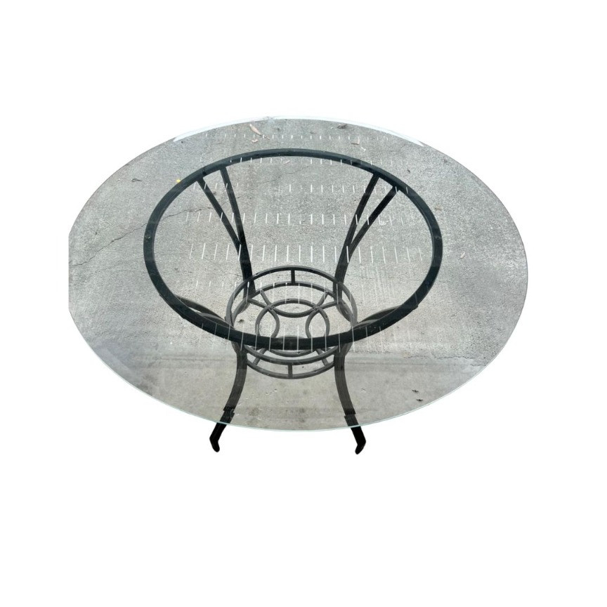 Upgrade your outdoor space with this elegant round glass patio table, perfect for both casual gatherings and stylish dining. Featuring a sturdy metal frame with a black powder-coated finish, this table offers durability and weather resistance, making it ideal for outdoor use. The clear tempered glass tabletop provides a sleek, modern aesthetic while ensuring easy maintenance and durability. Features: Round clear glass top – Spacious and easy to clean Sturdy metal frame – Powder-coated for rust resistance Dimensions: 45” D x 30.5” H
