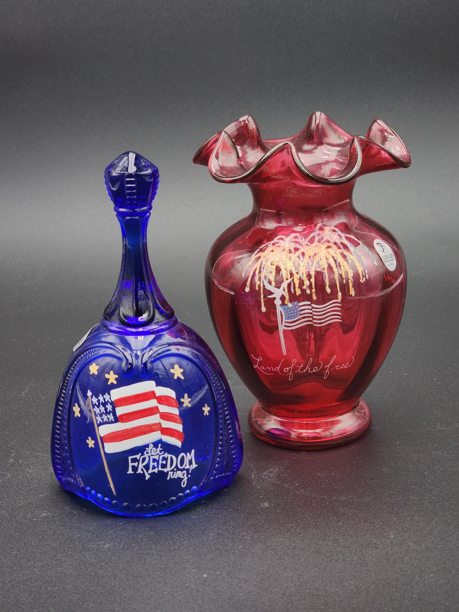 Lot # 120 - Signed Huck/ Brightbill Fenton Stars & Stripes Bell / Vase