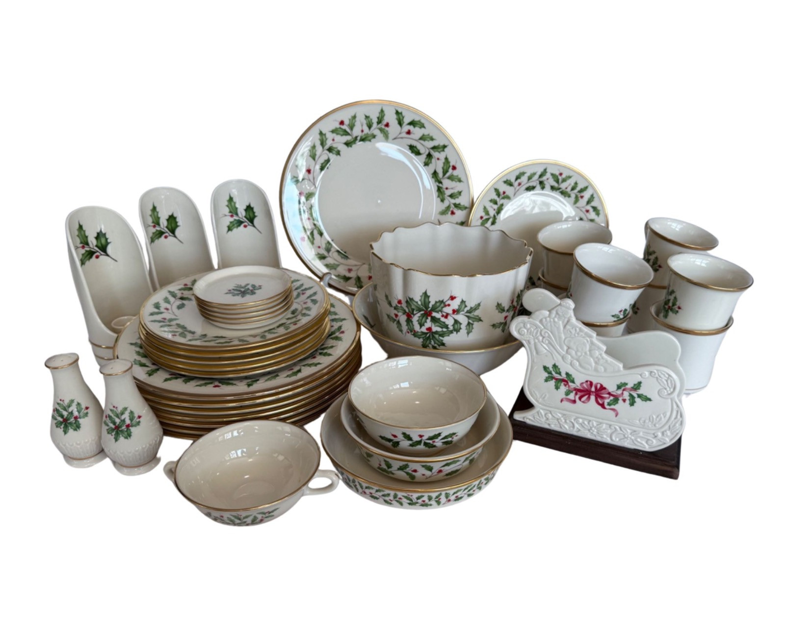 Lot # 127 - Medium Lenox Christmas Dinnerware Set – Holly & Gold Trim