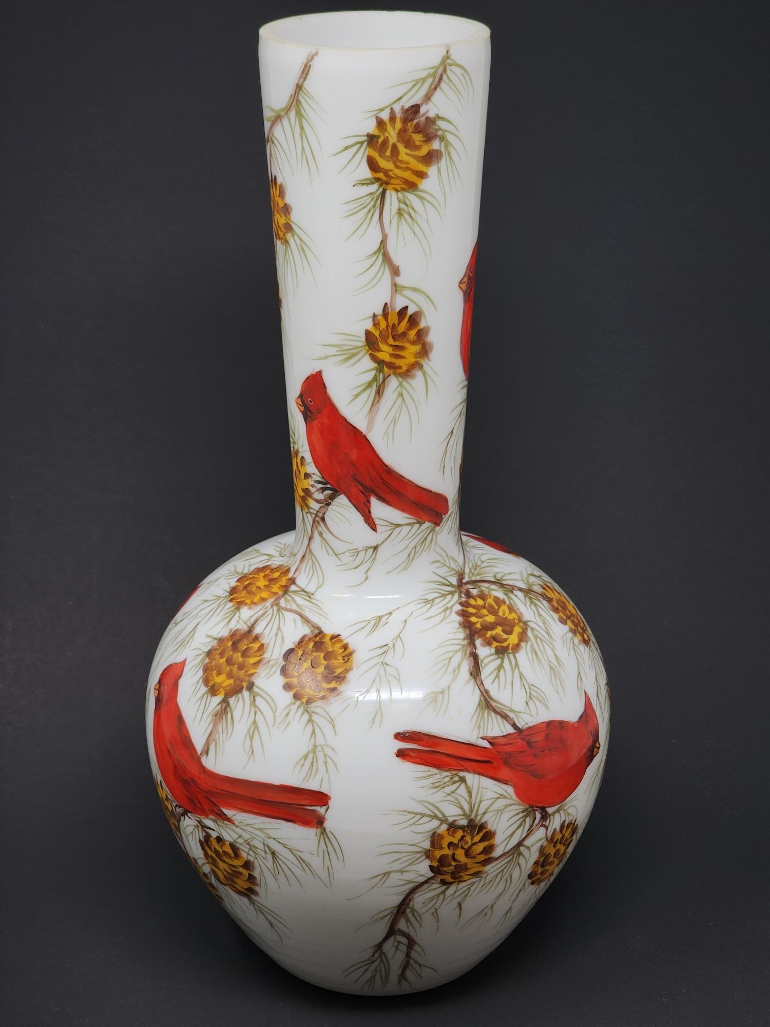 Lot # 147 - Louis Piper Hand-painted Vase with Beautiful Cardinal Birds