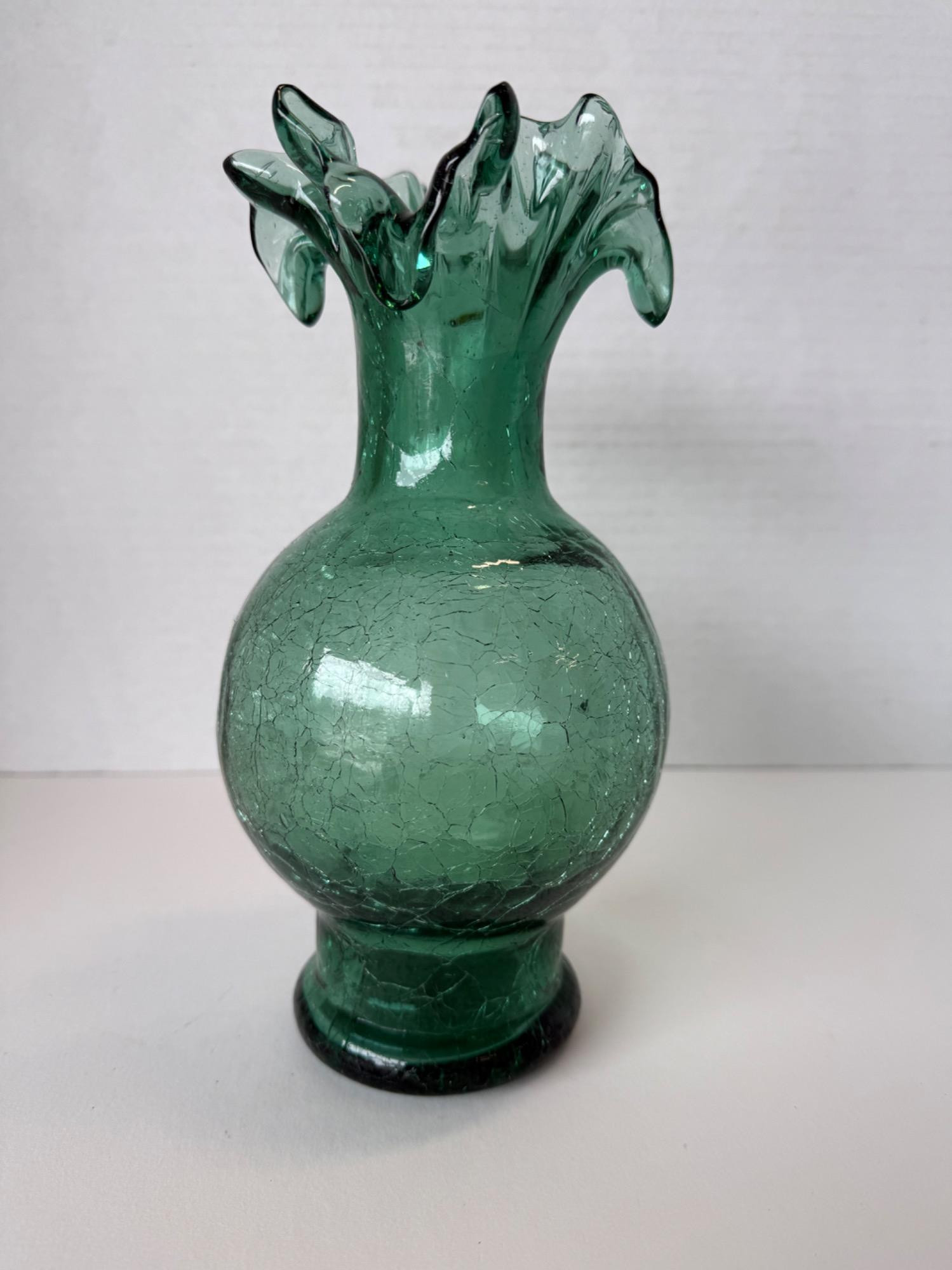Lot # 9 - Vintage Green Crackle Glass Vase