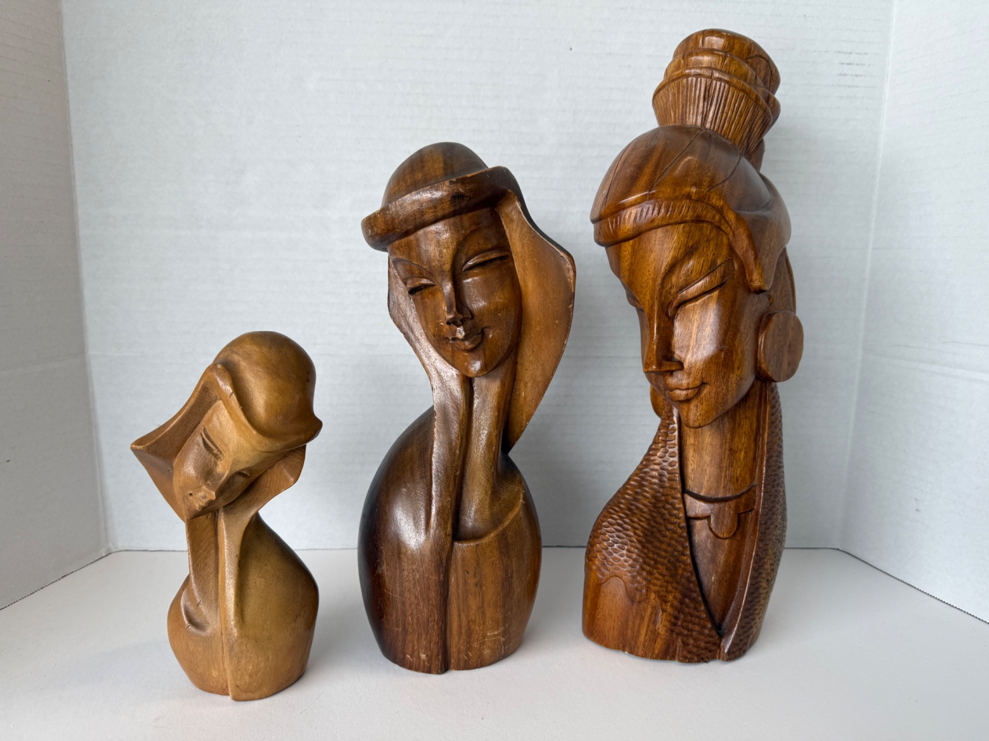 Lot # 12 - Vintage Mid Century Wood Carved Busts