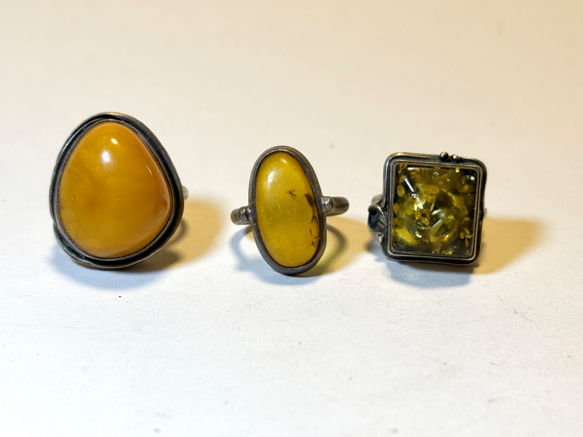 Lot # 29 - Vintage Baltic Amber Ring Set (Sterling Silver) – Sizes 9, 8, and 7