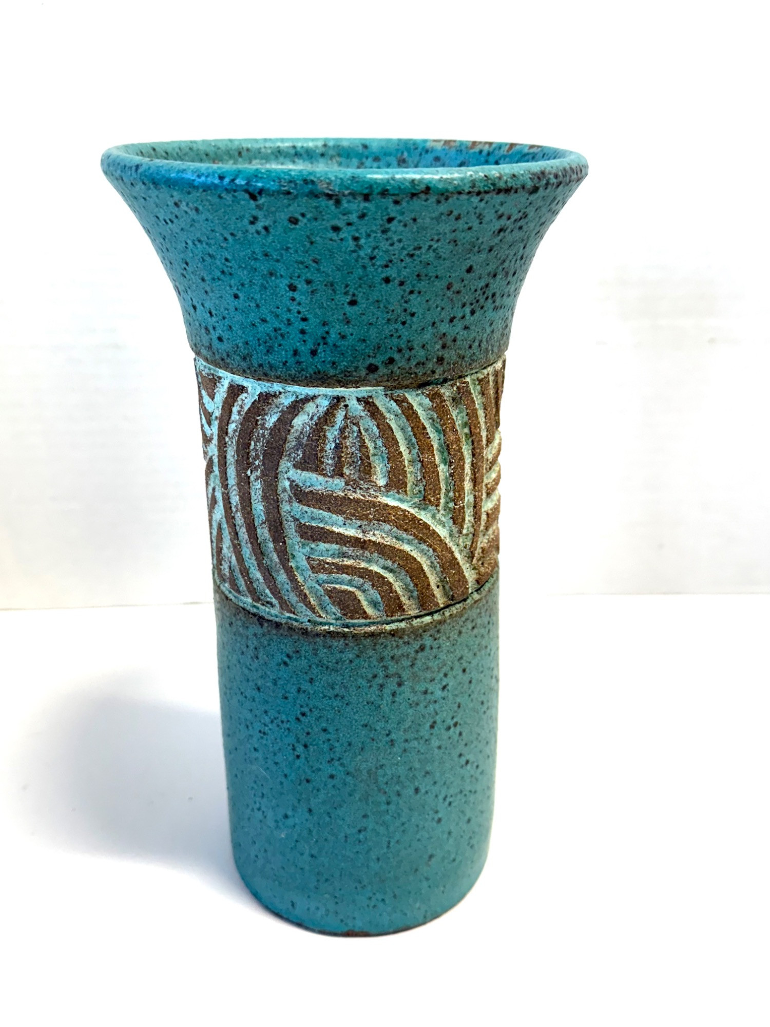 Larry Thomsen Pottery Vase. This beautiful and amazing pottery is one of a kind and is all hand made by Larry Thomsen in Southern California. He has been an integral part of the Southern California pottery scene since he started his journey into hand made pottery in the 70s. He started with pottery in 1968 his junior year of high school and the rest is history.