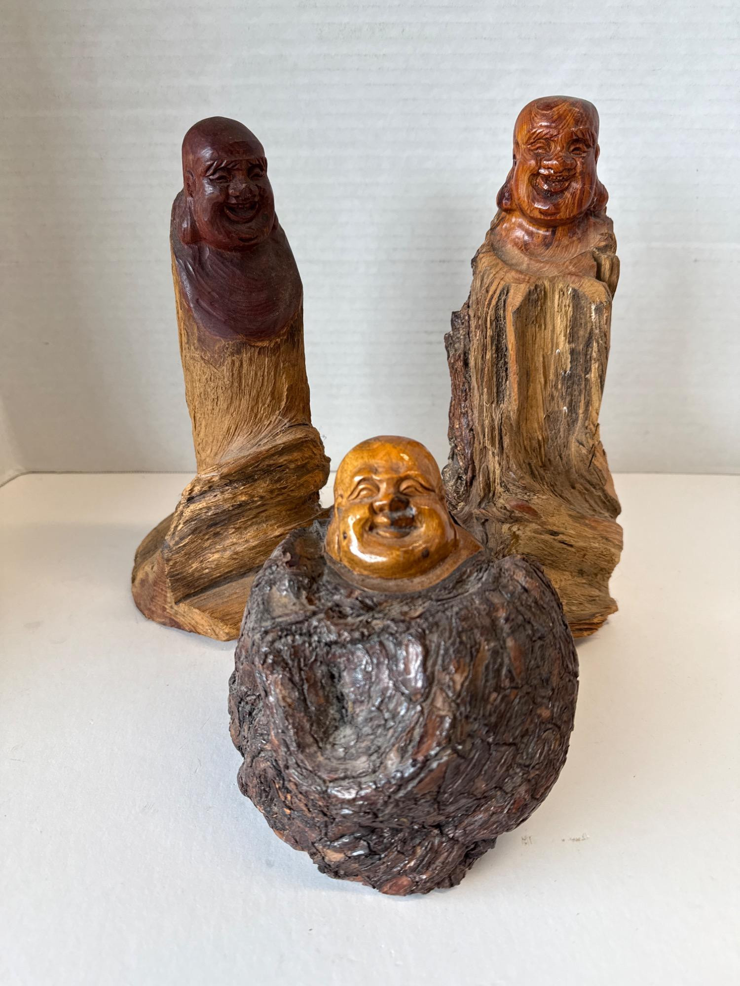 Lot # 57 - Set of 3 Hand-Carved Wooden Buddhas