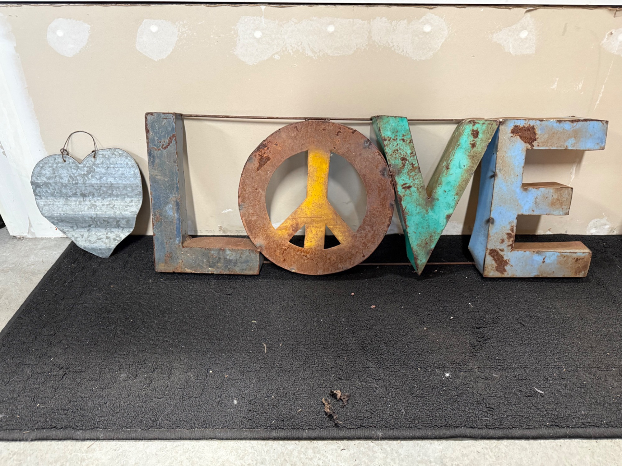 Lot # 92 - Rustic Large Metal “LOVE” Sign with Heart & Peace Symbol