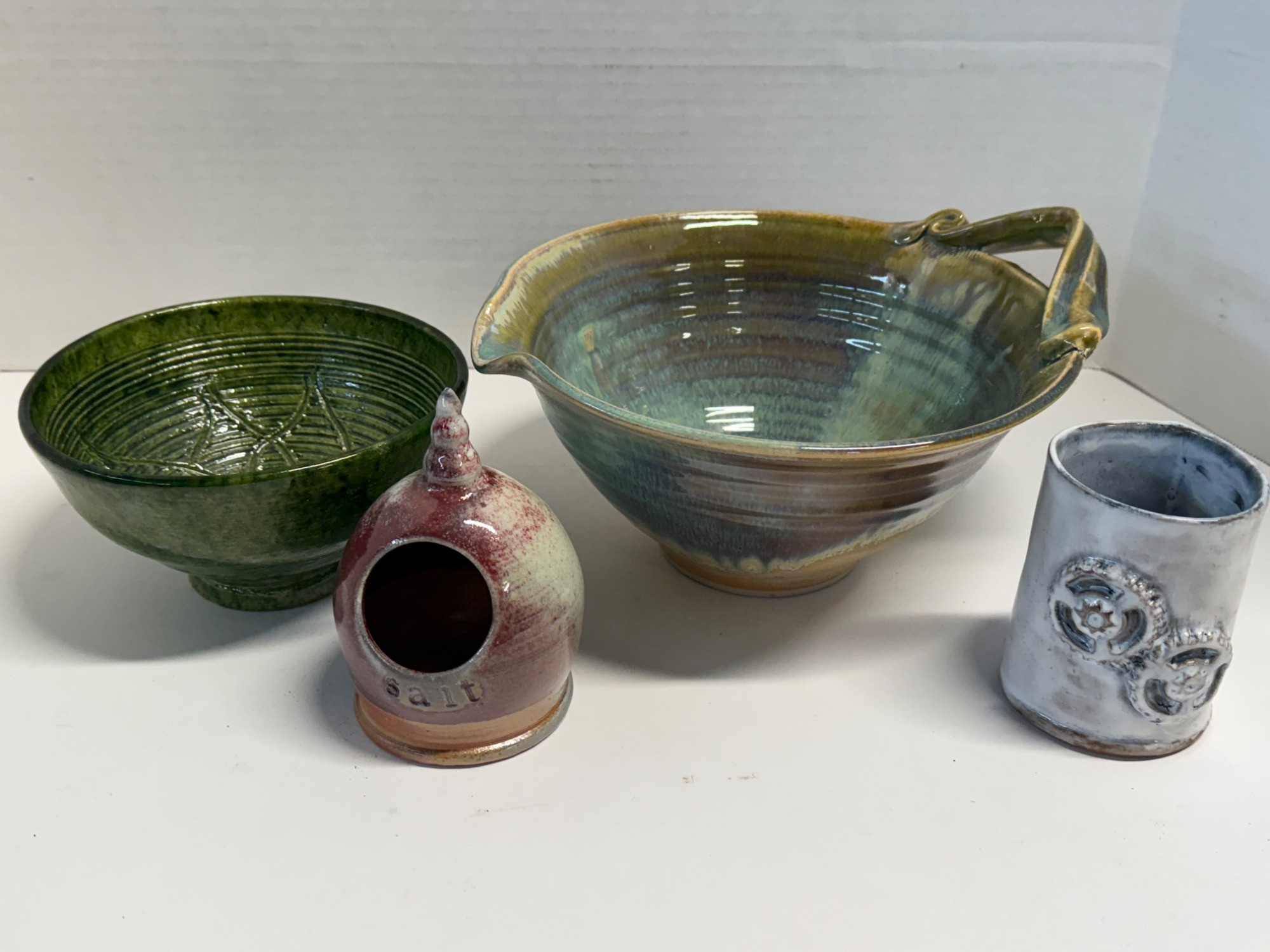 Lot # 98 - Handmade Art Pottery Set – Bowls, Cup, and Salt Cellar