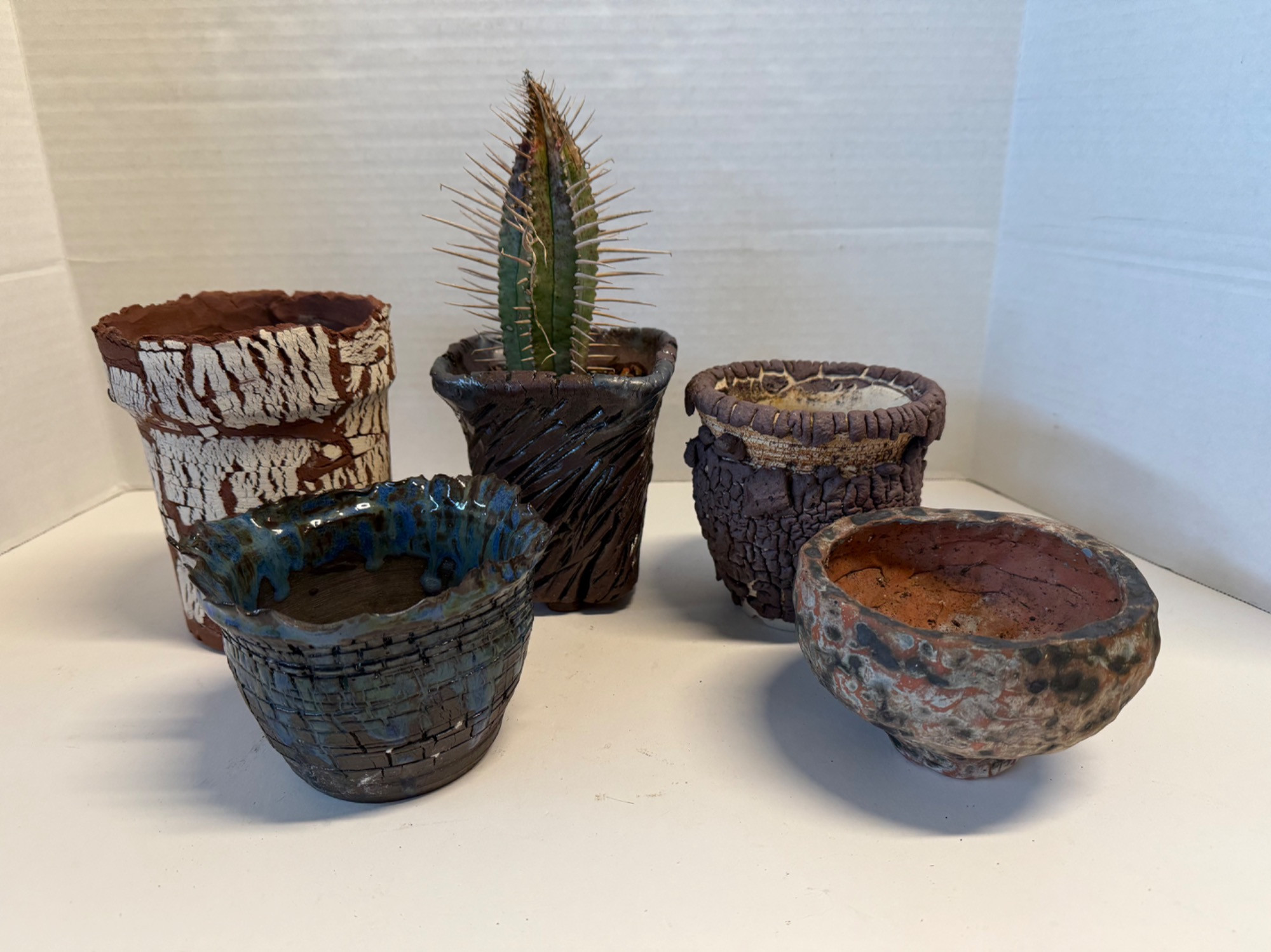 Lot # 129 - Cactus with Assorted Artist Pottery Planters