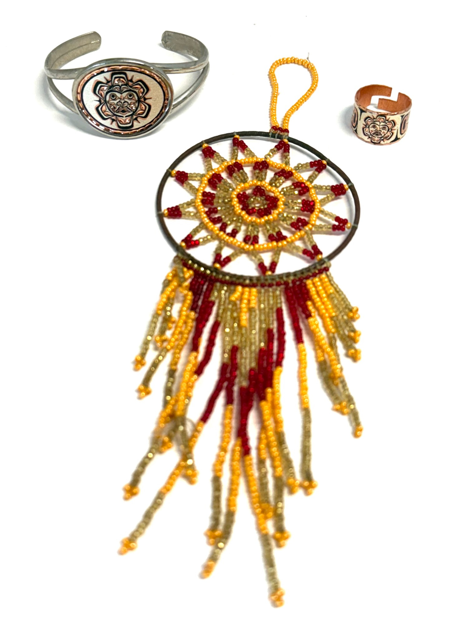 Native Design Bracelet, Ring and Beaded Dreamcatcher.