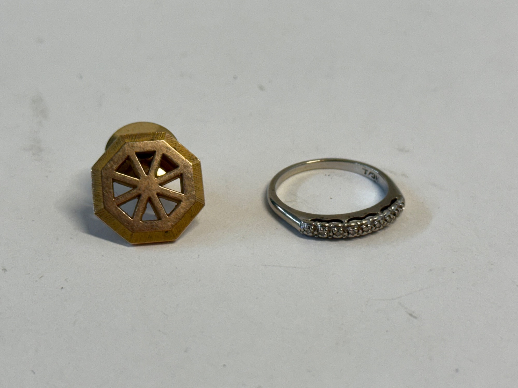 Lot # 190 - 14k Gold and Diamond Ring and 10k Gold Pin