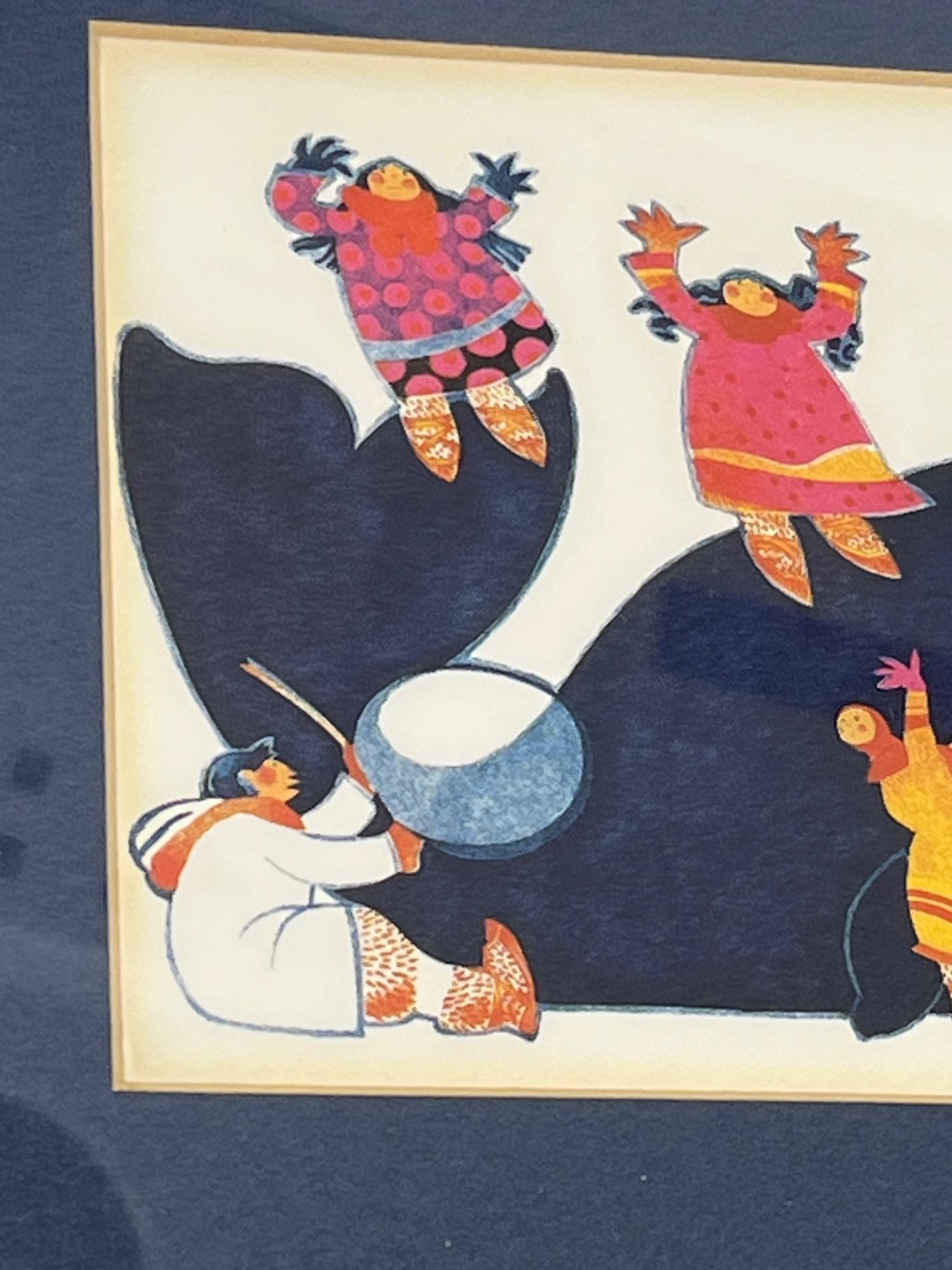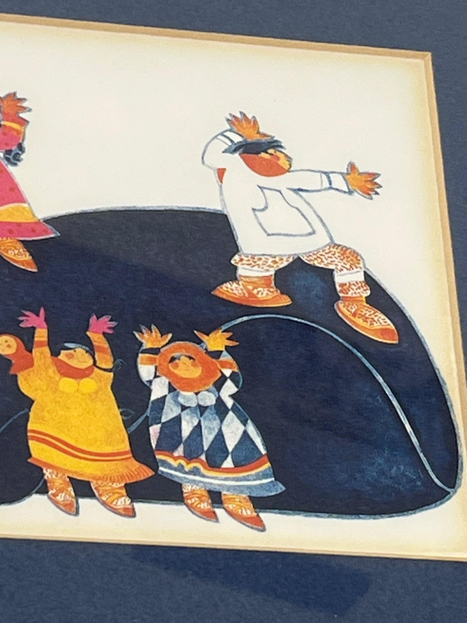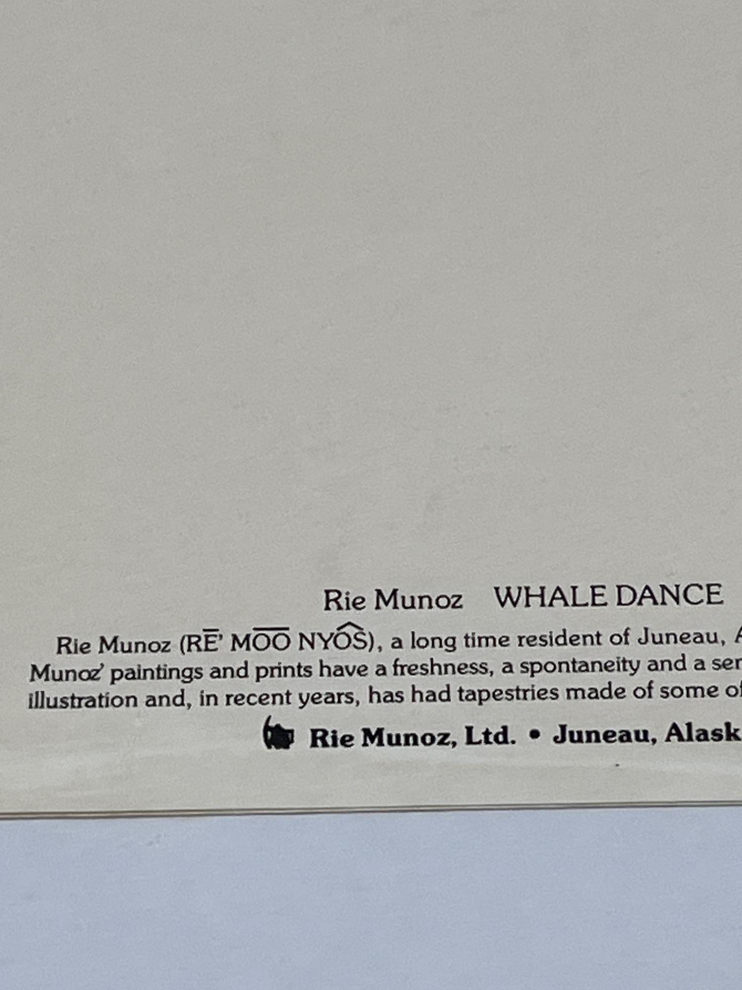 Rie Munoz 1981 print from a stone lithograph. This print is called "Whale Dance" and is highly collectible.