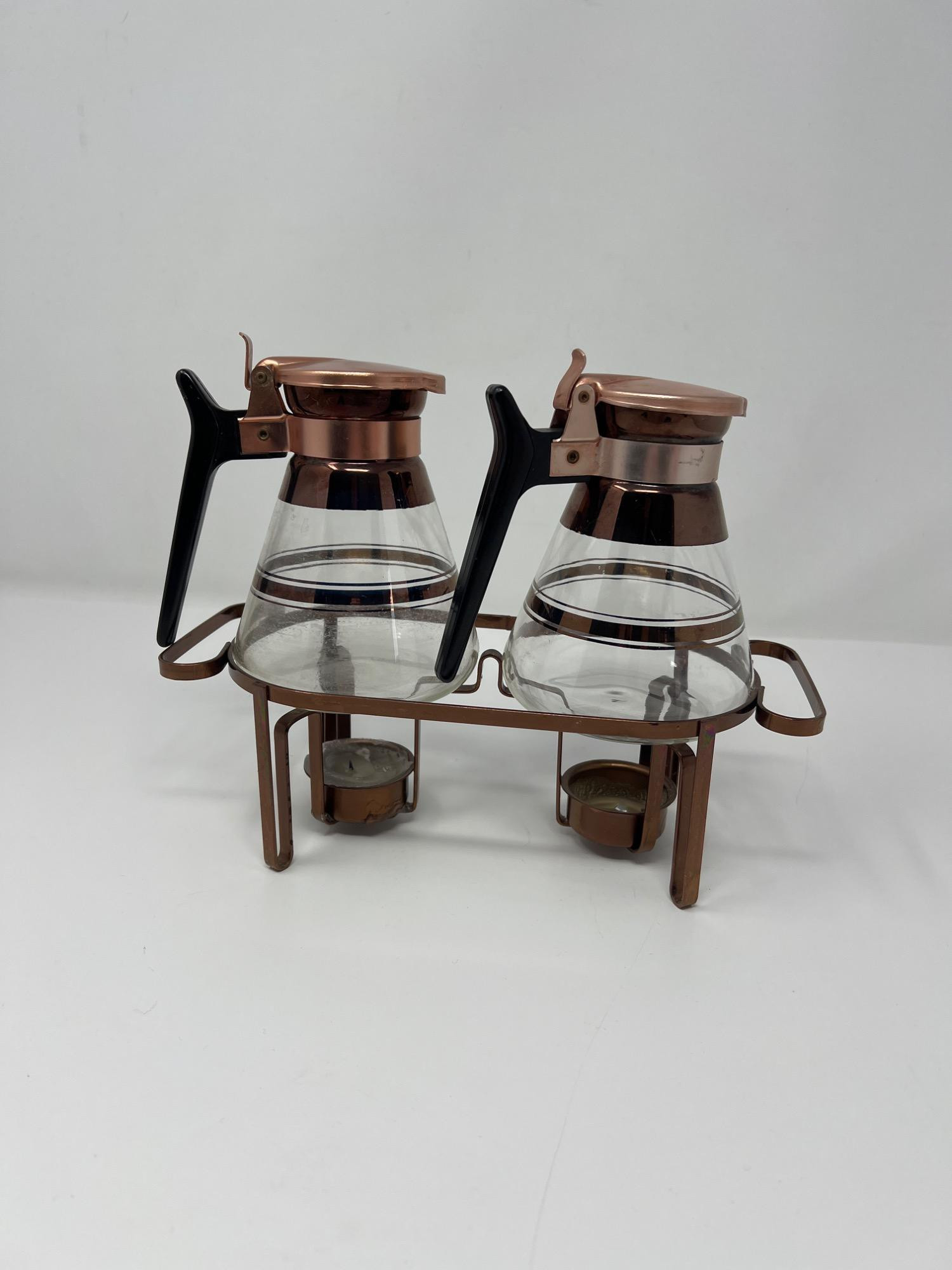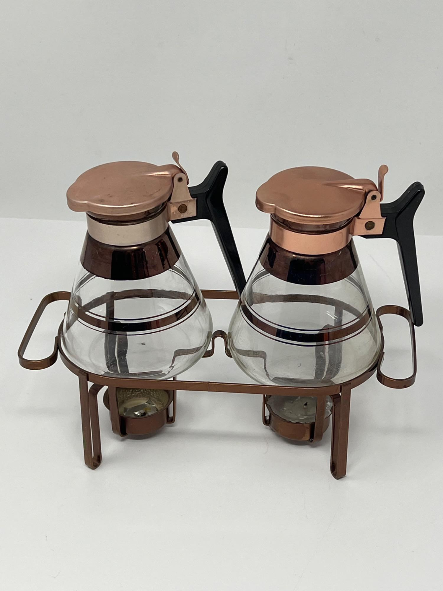 Lot # 32 - Vintage Copper Double Syrup Carafes with Warmer
