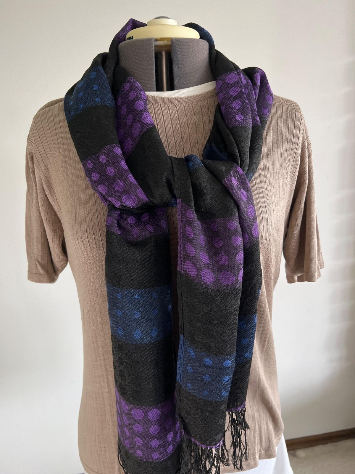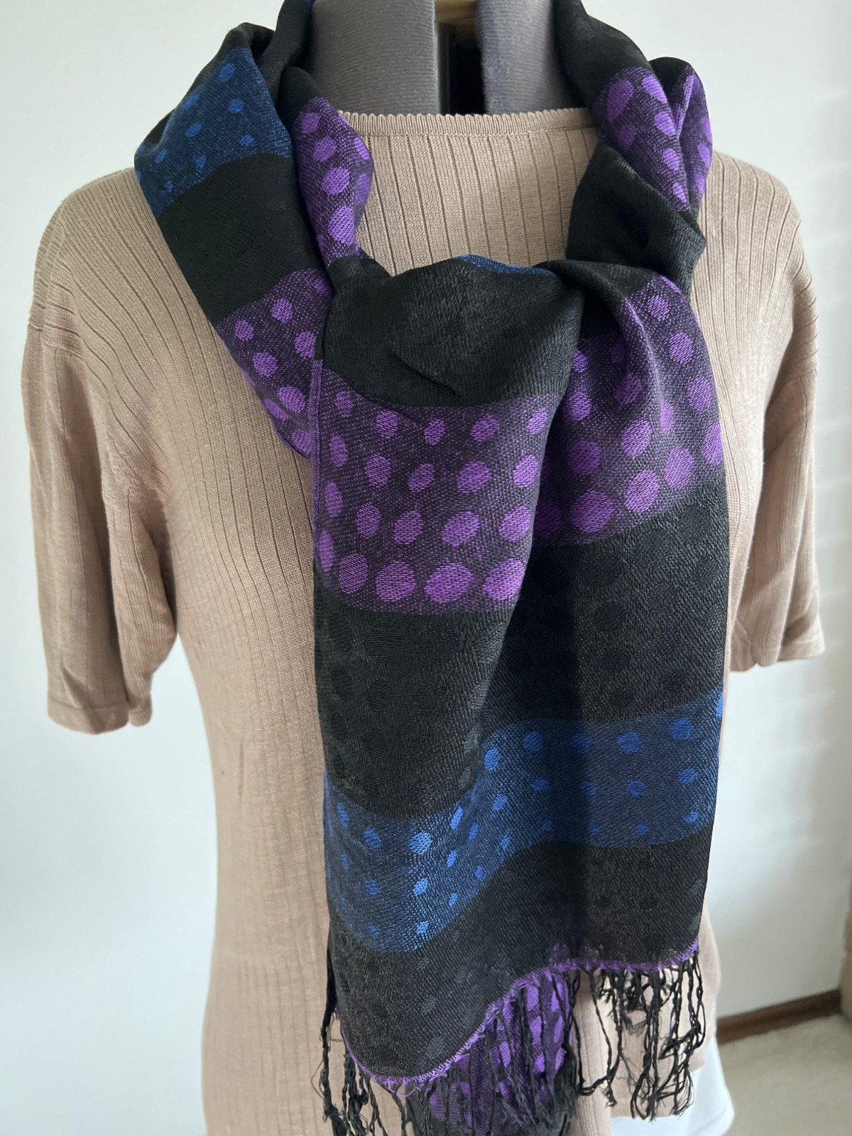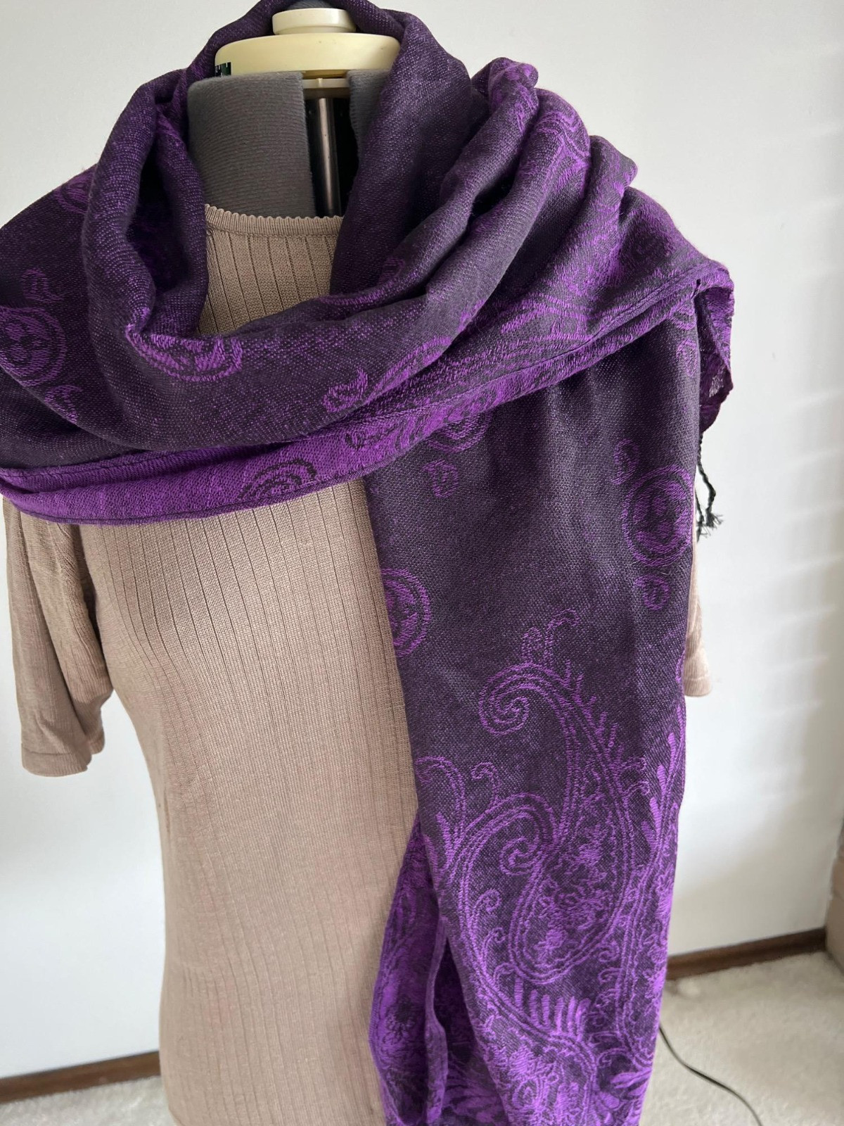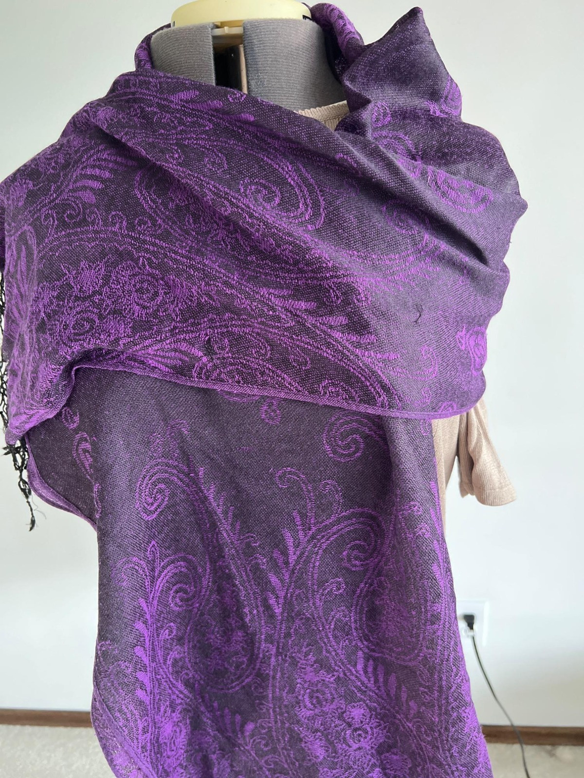 Grey and white 100% wool neck scarf with fringe. Two more scarfs that are Pashmina style (potentially Pashmina) but no tags.