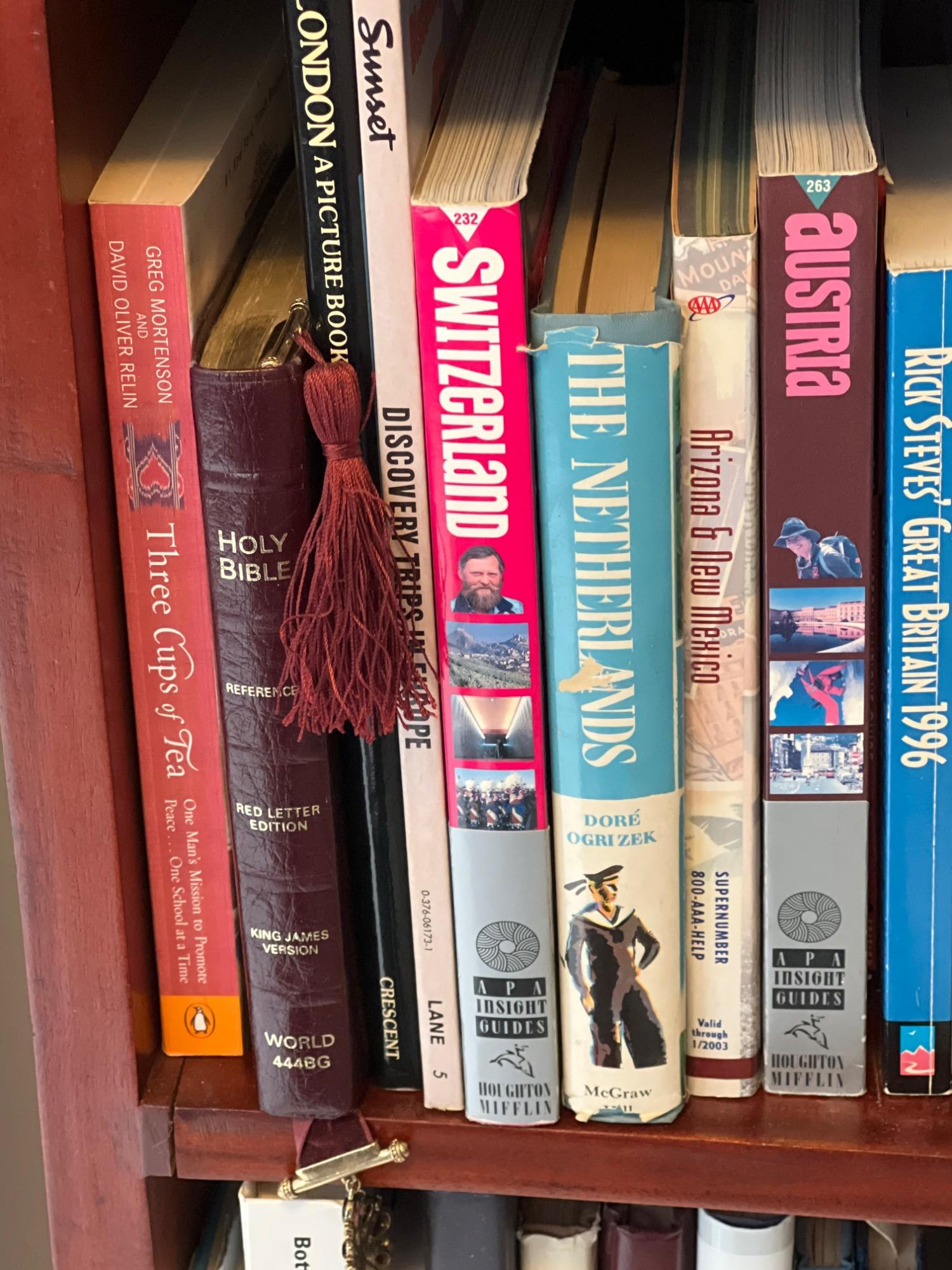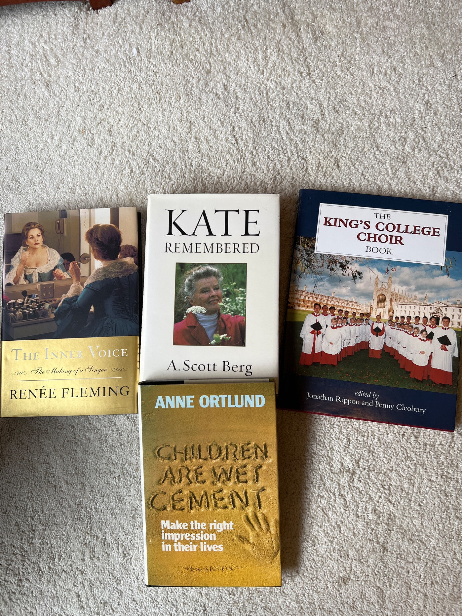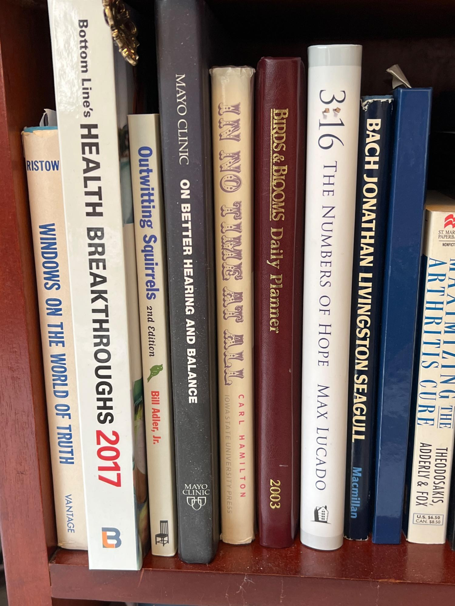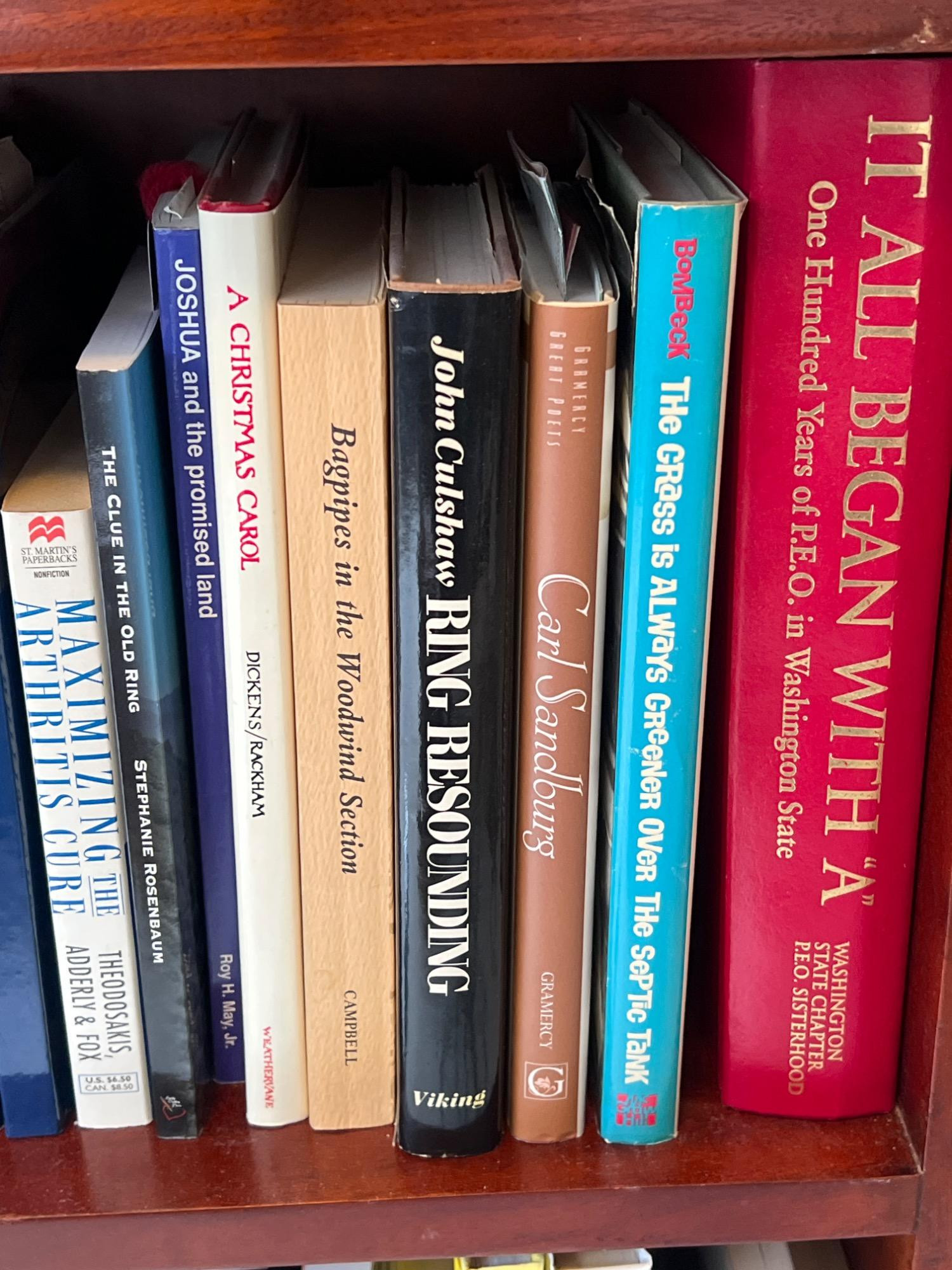Over 100 book titles of various genres. Also includes VHS of Titanic movie and a sealed copy of the VHS about Princess Diana. Does not include bookshelves.
