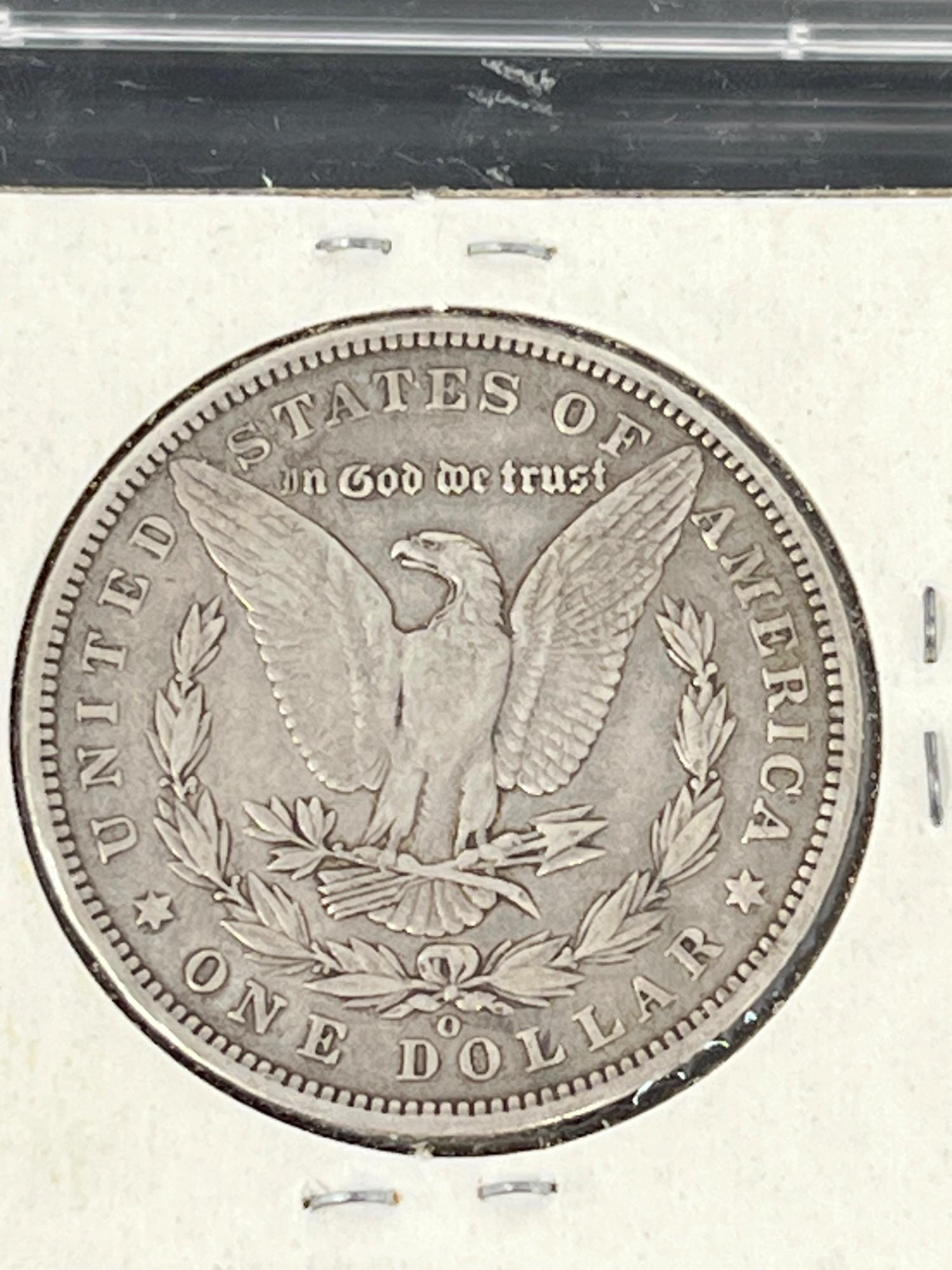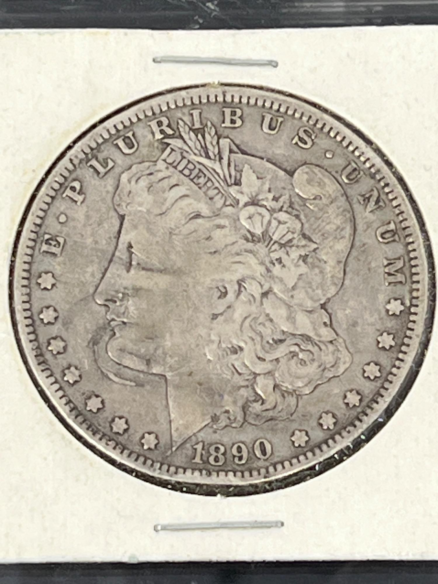 United States Silver Dollar dated 1890 with an O mint mark. Liberty head one side, Eagle crest on obverse.