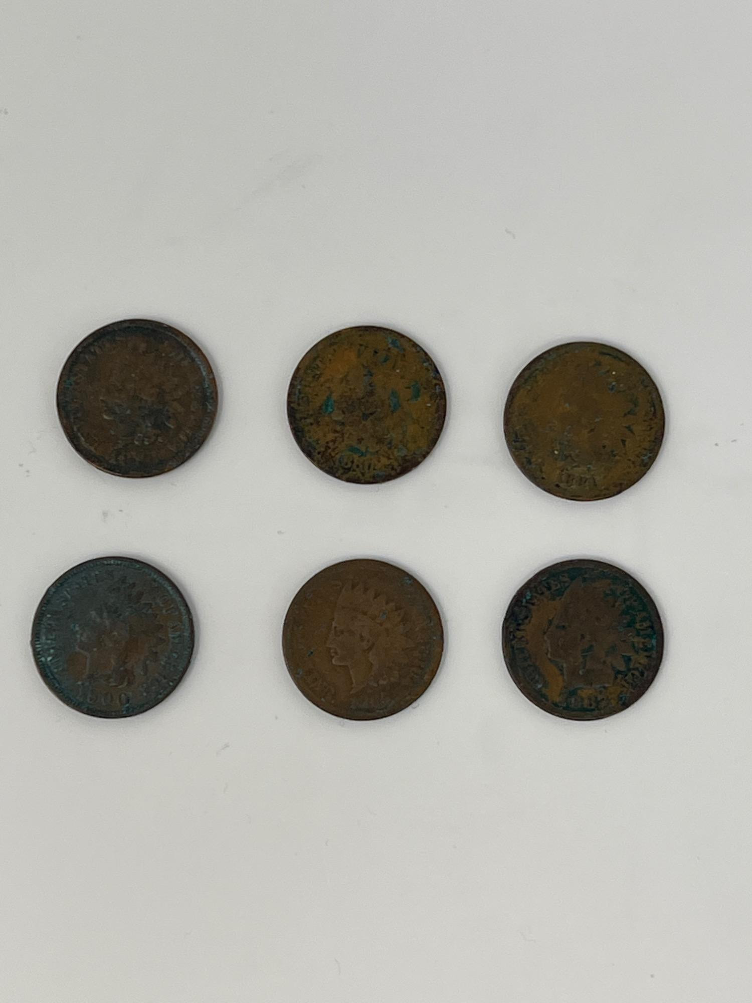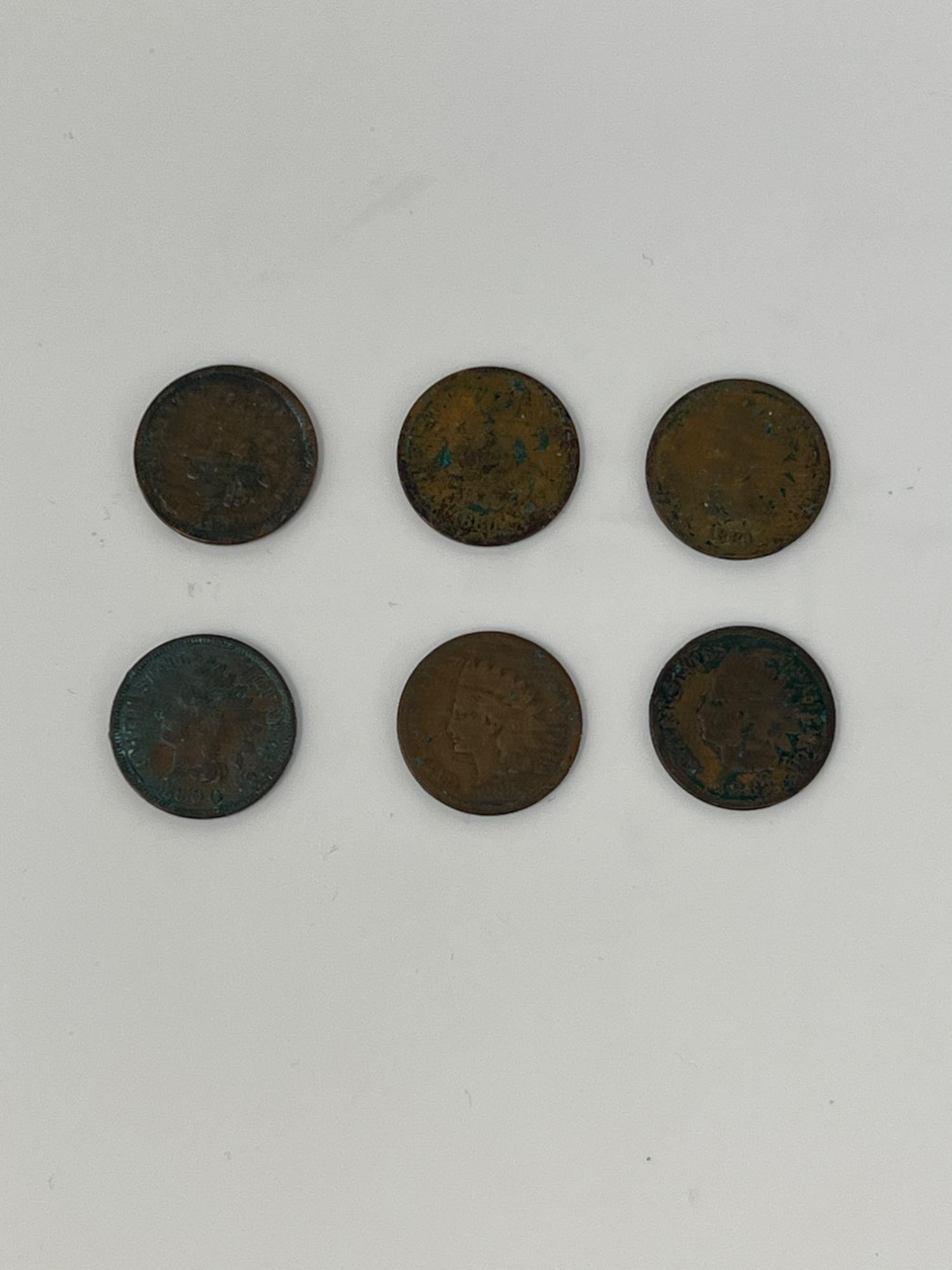 Lot # 75 - Six Indian Head 18-1900s One Cent Coins