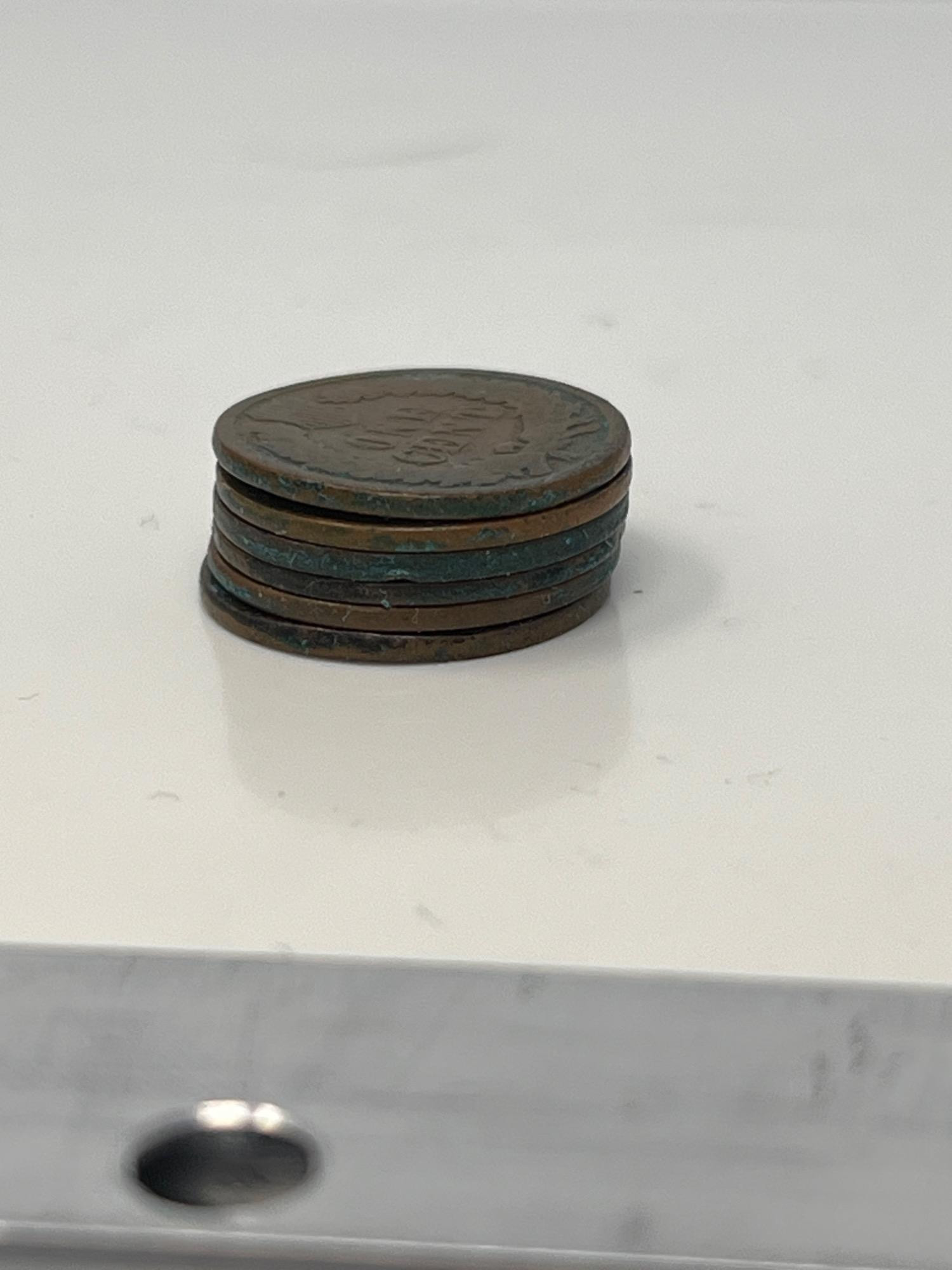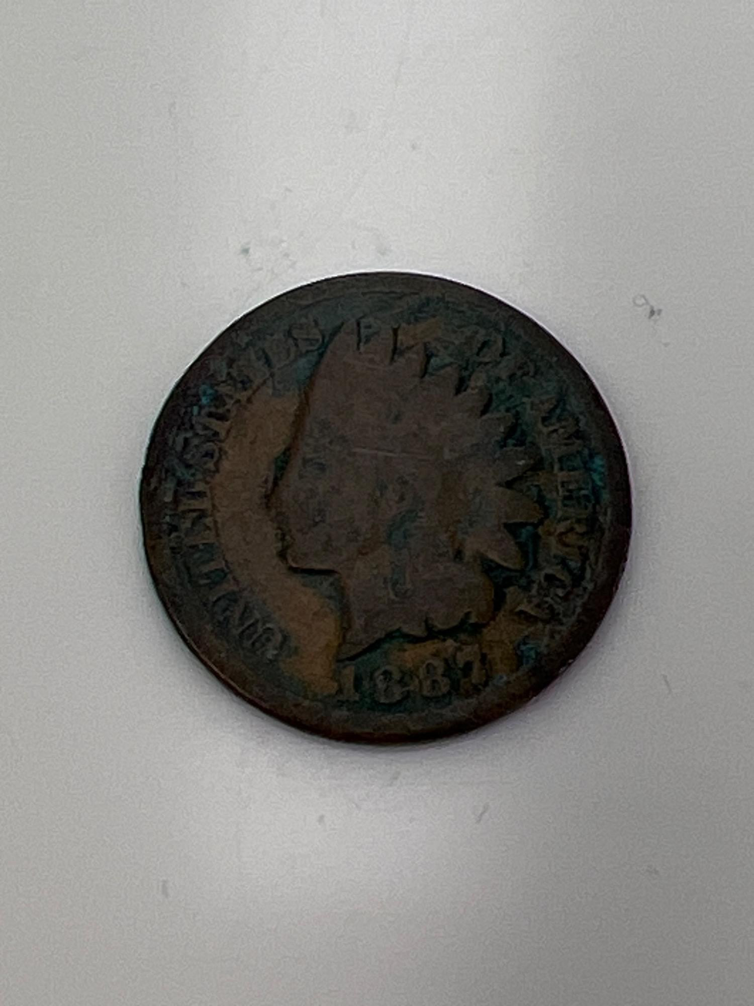Indian head pennies - 1888, 1881, 1880, 1900, 1865, 1887.