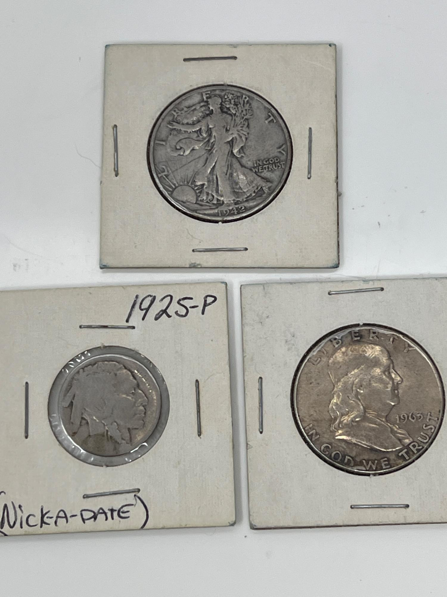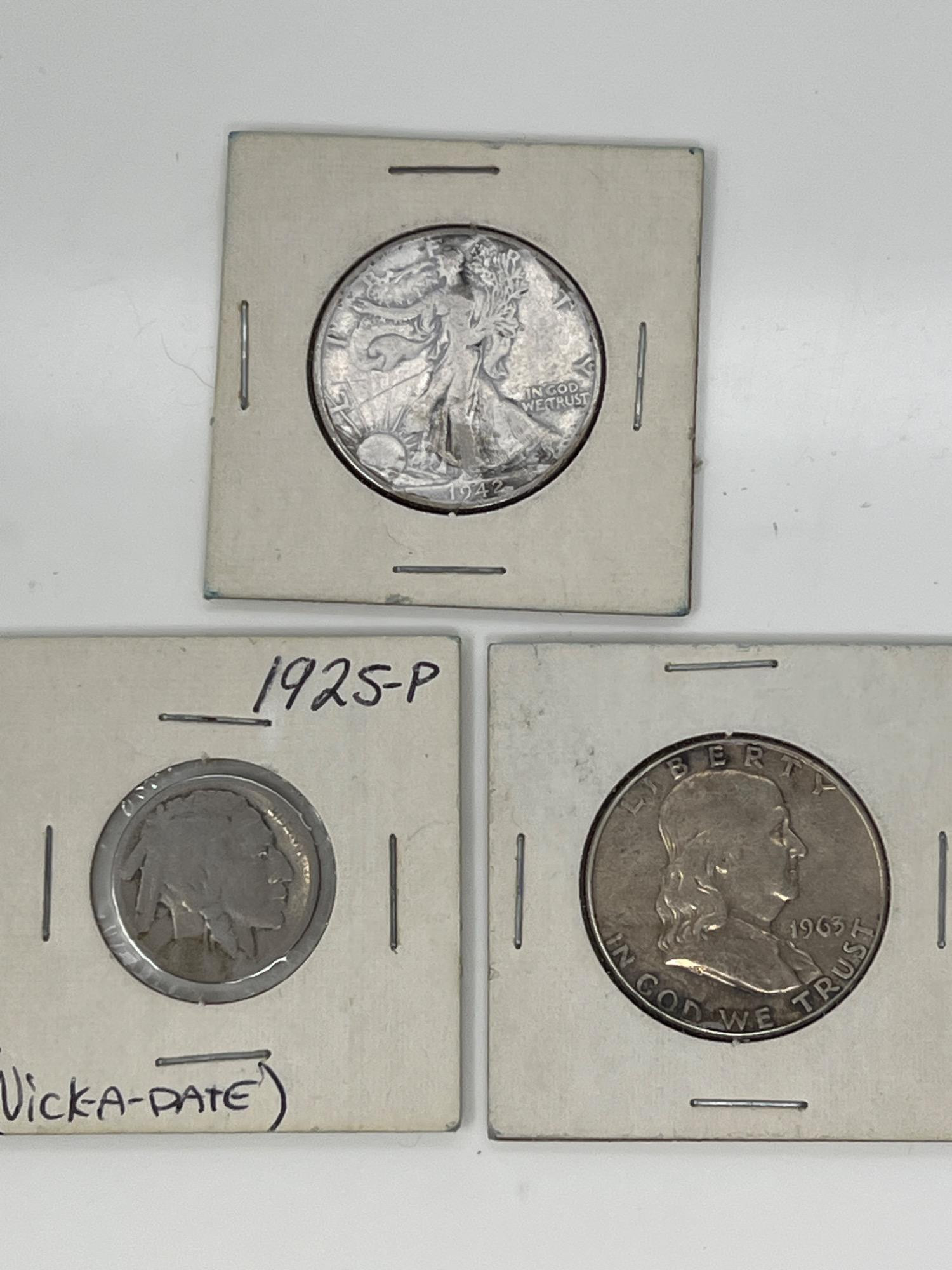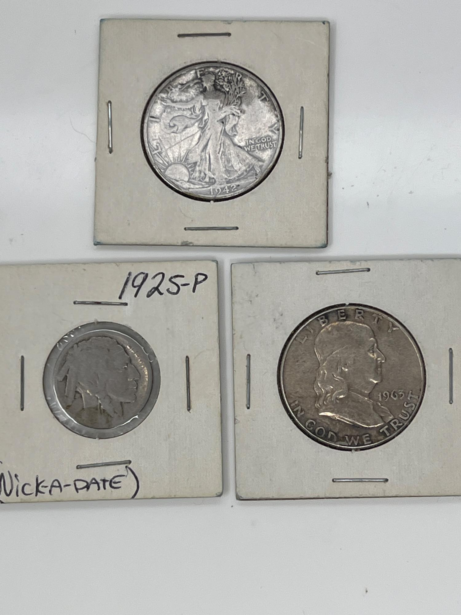 Lot # 76 - Walking Liberty Half Dollar, Buffalo Nickel, Franklin Fifty