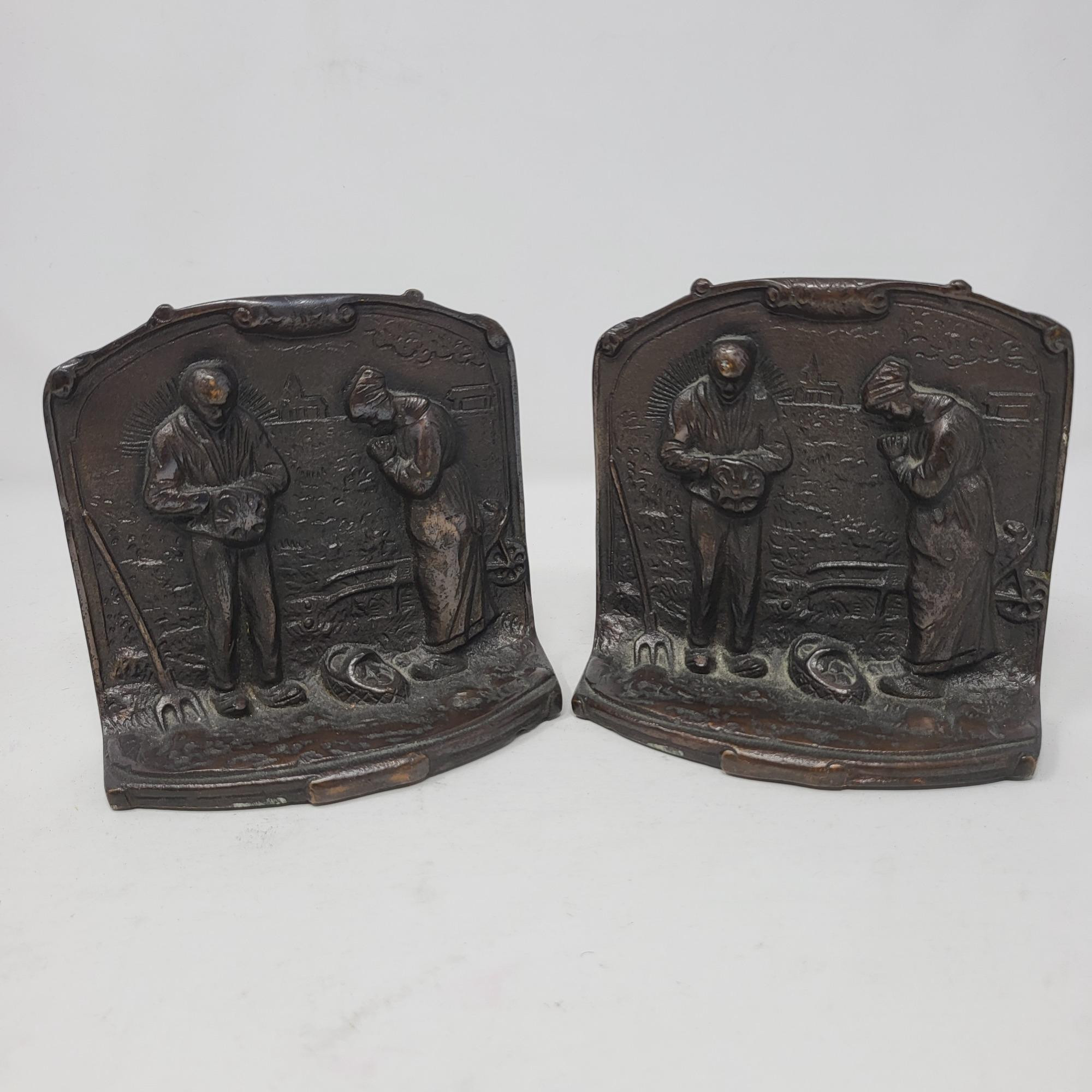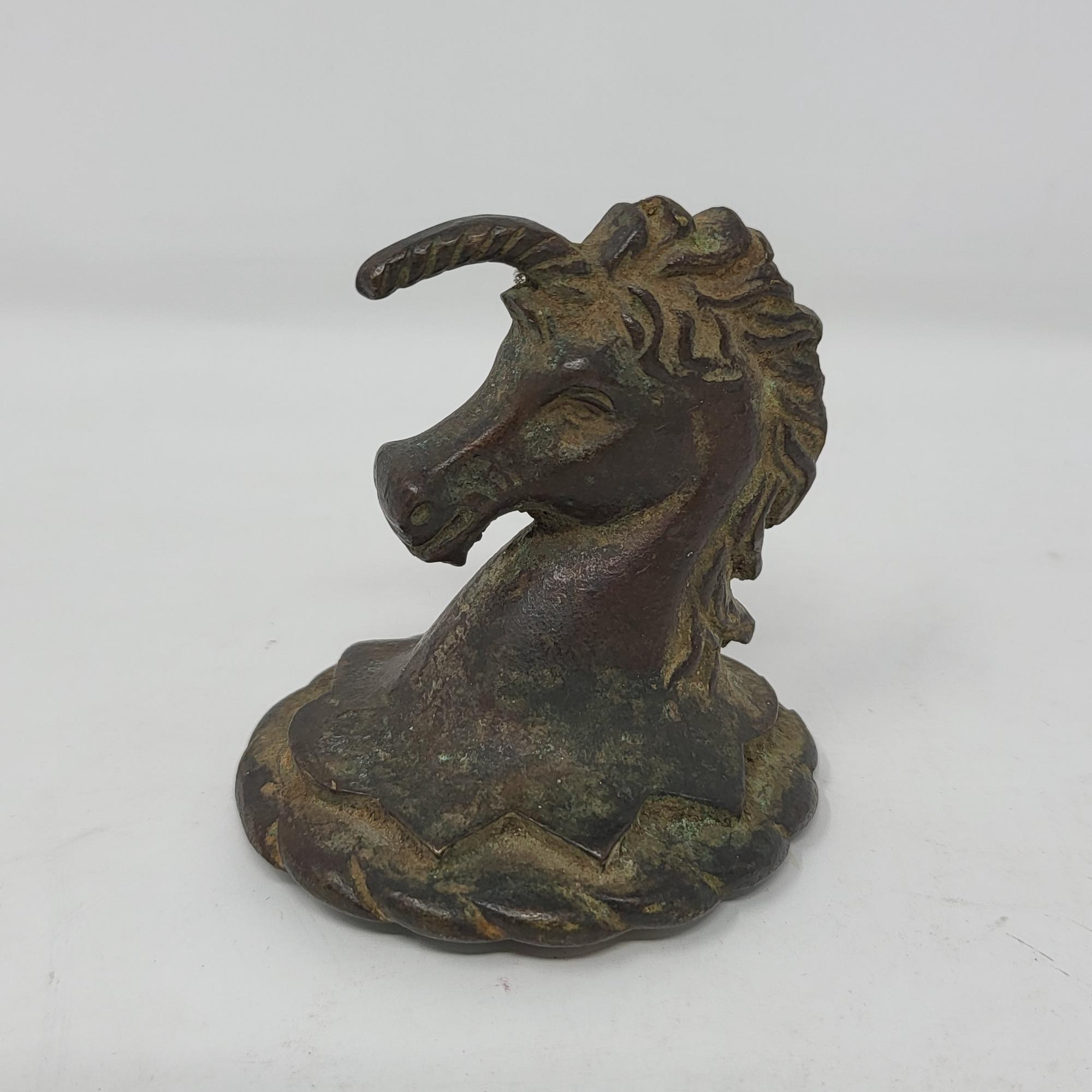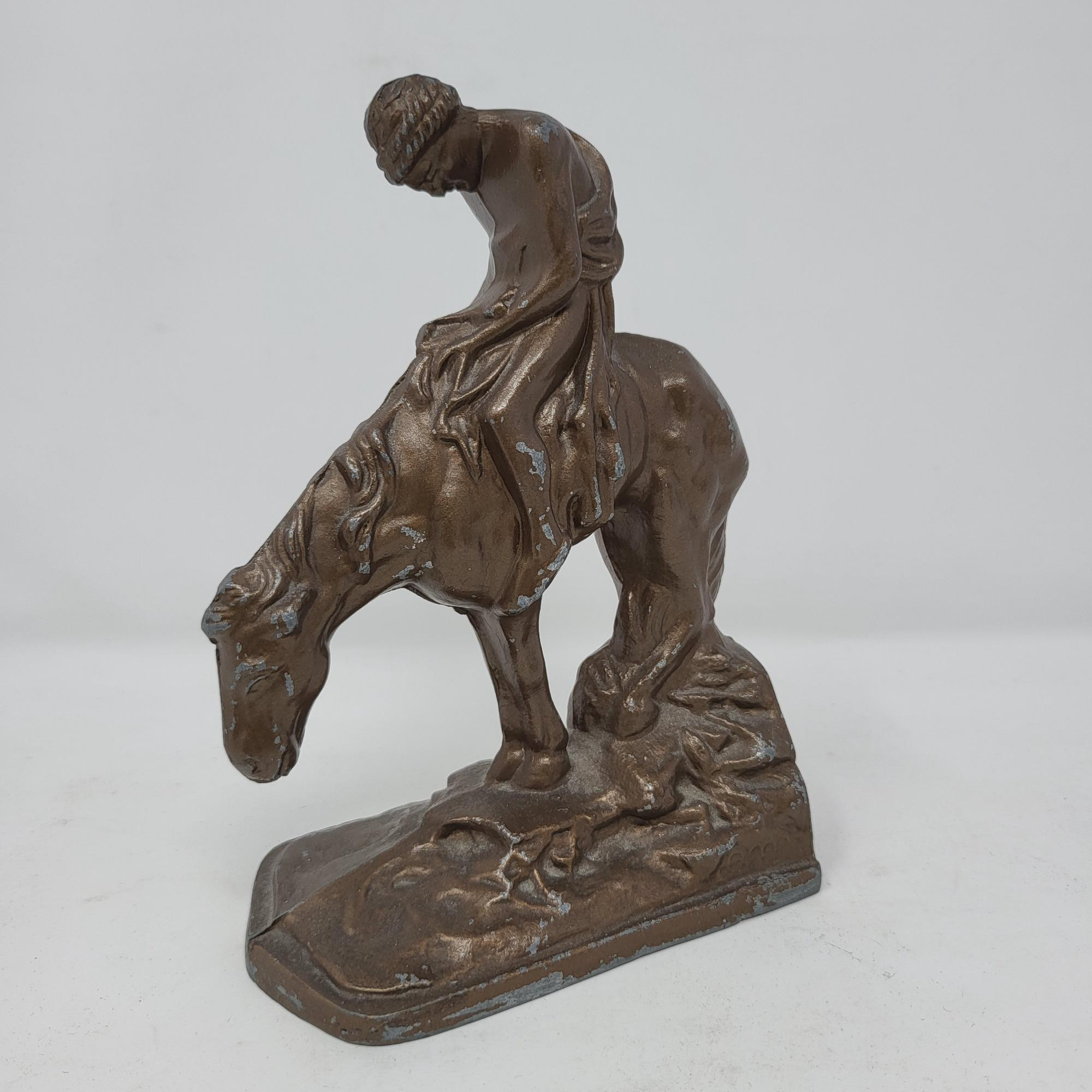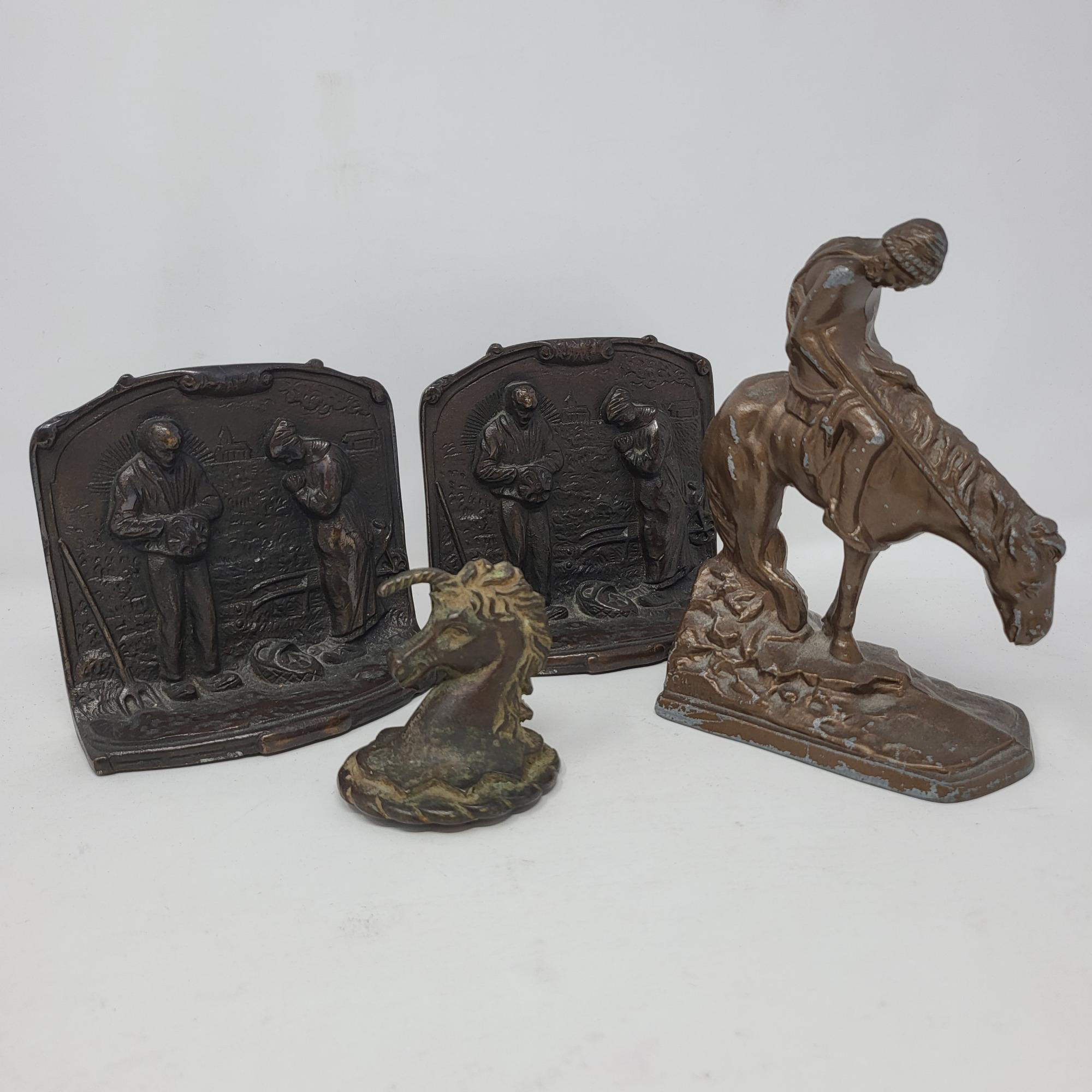 Lot # 65 - Antique Cast Iron Preyer Bookends, End of Trail Statue & Unicorn Hook
