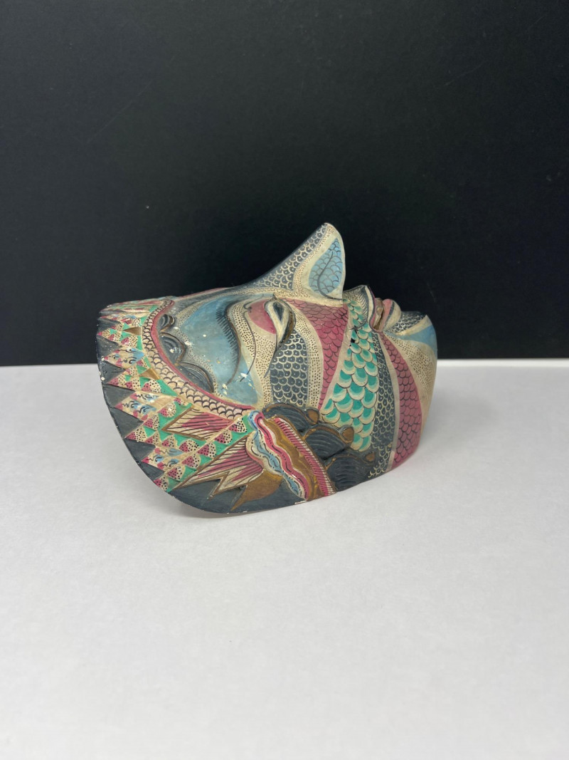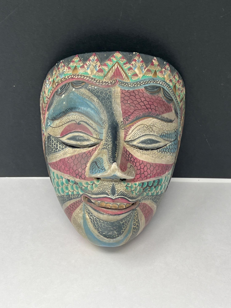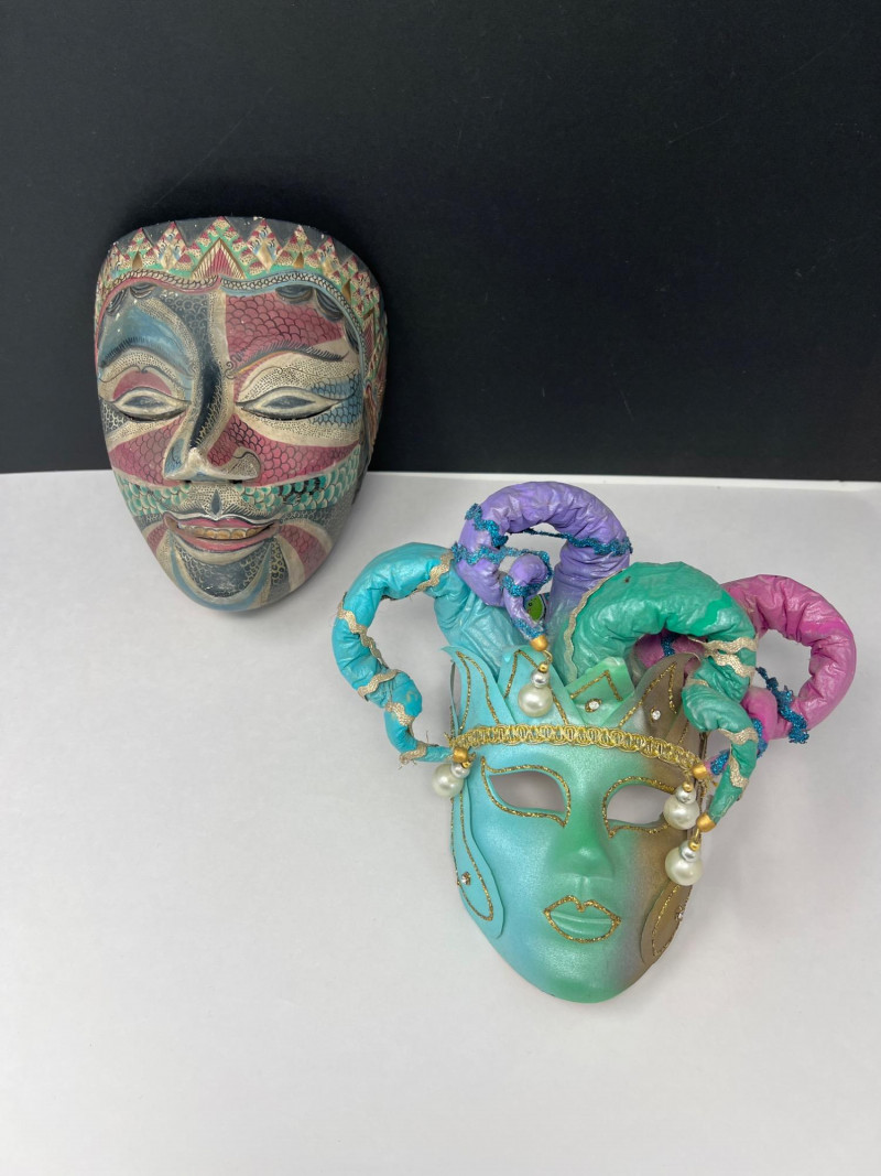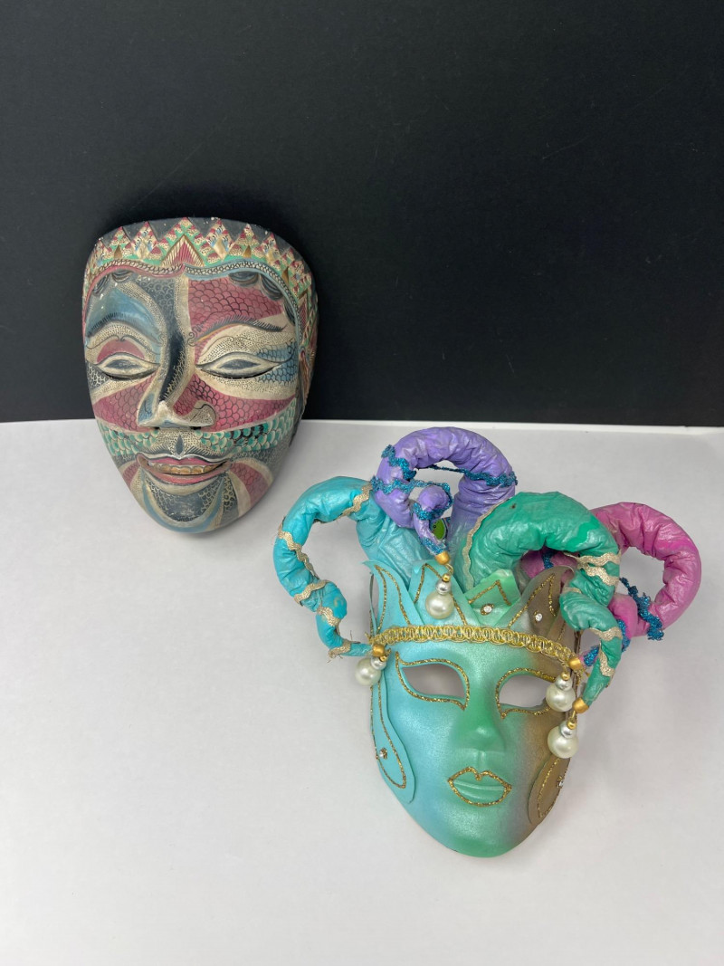 Lot # 84 - Venetian Carnivale Ceramic Mask & Balinese Wood Batik Mask
