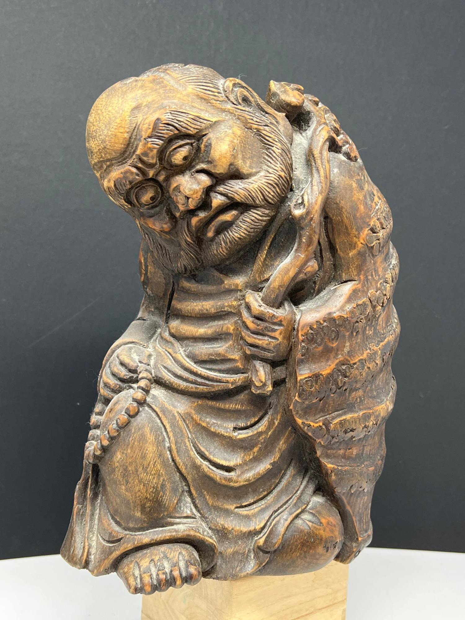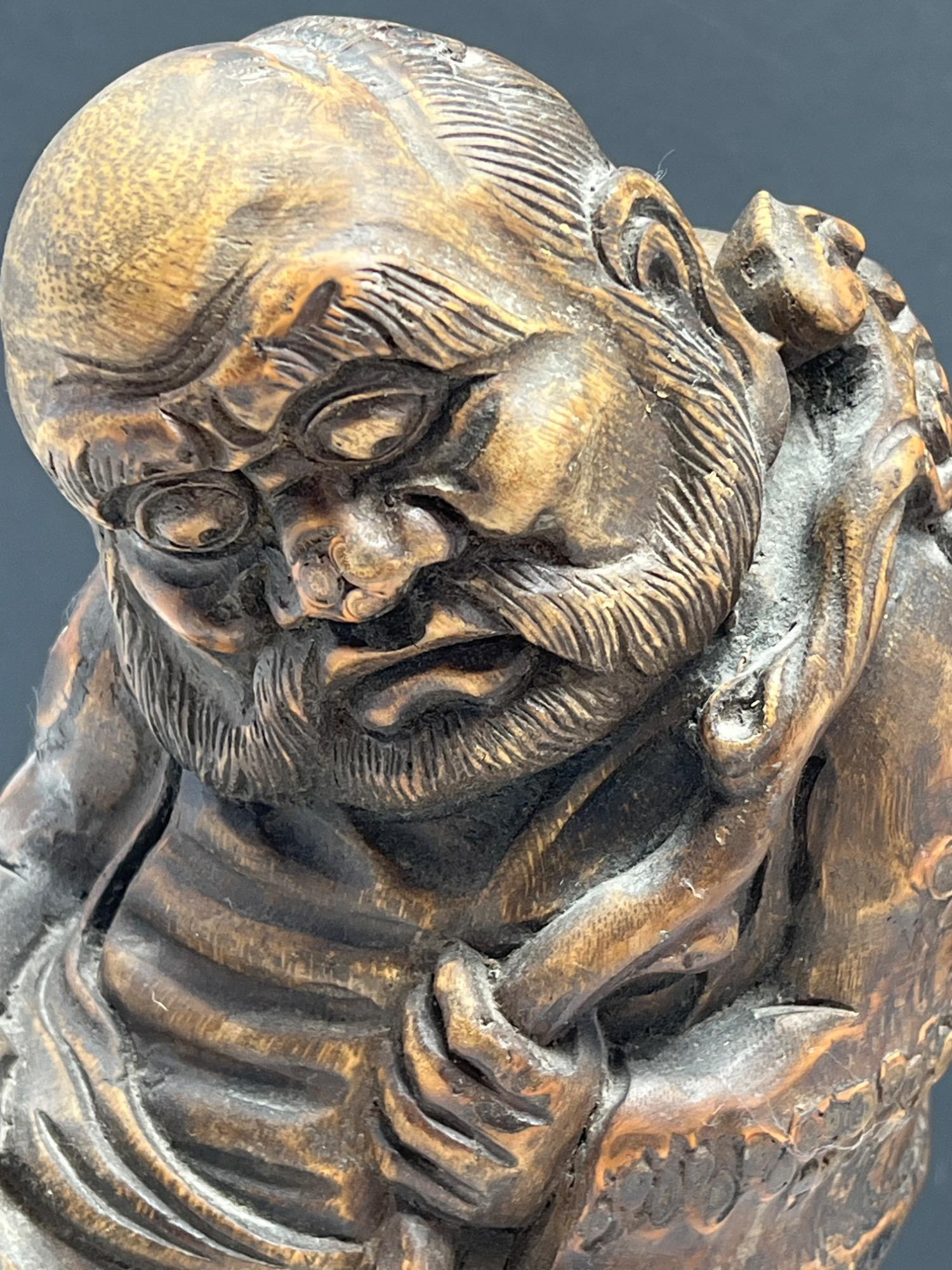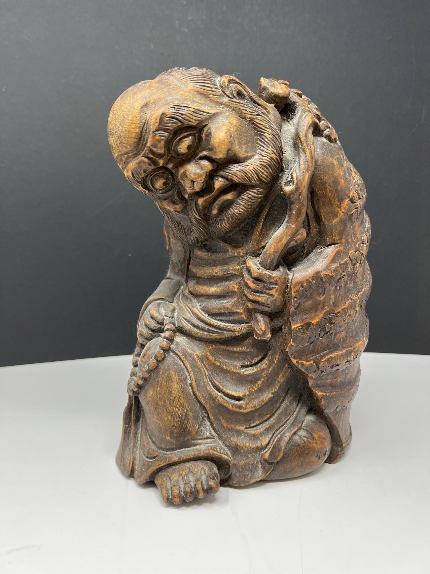 Shaulao is a Chinese diety of longevity commonly known as the Old Man of the South Pole. Potentially dated early 1900s. Shaulao represents long life, wisdom and accumulation of knowledge and is depicted with a staff and beard.