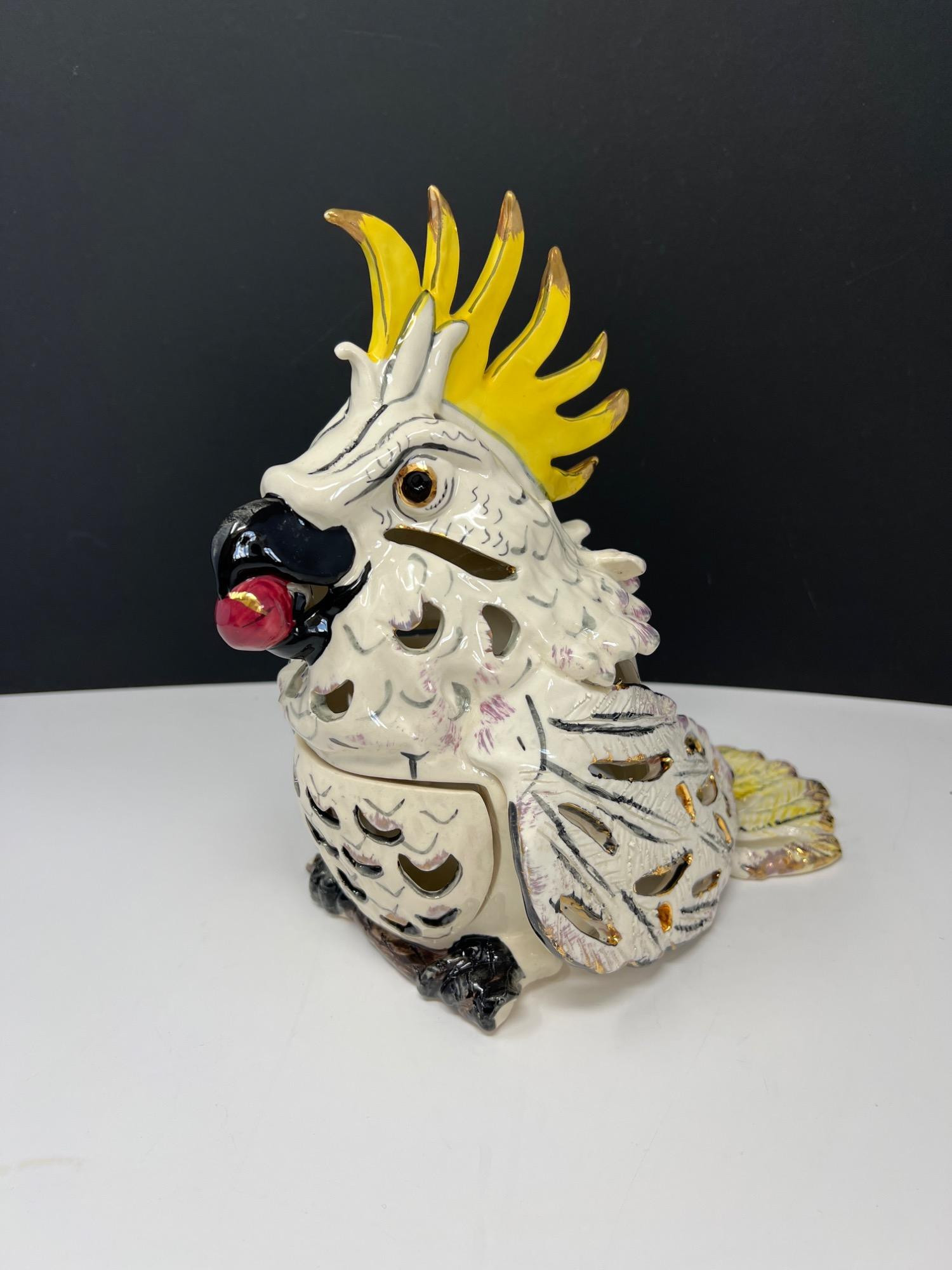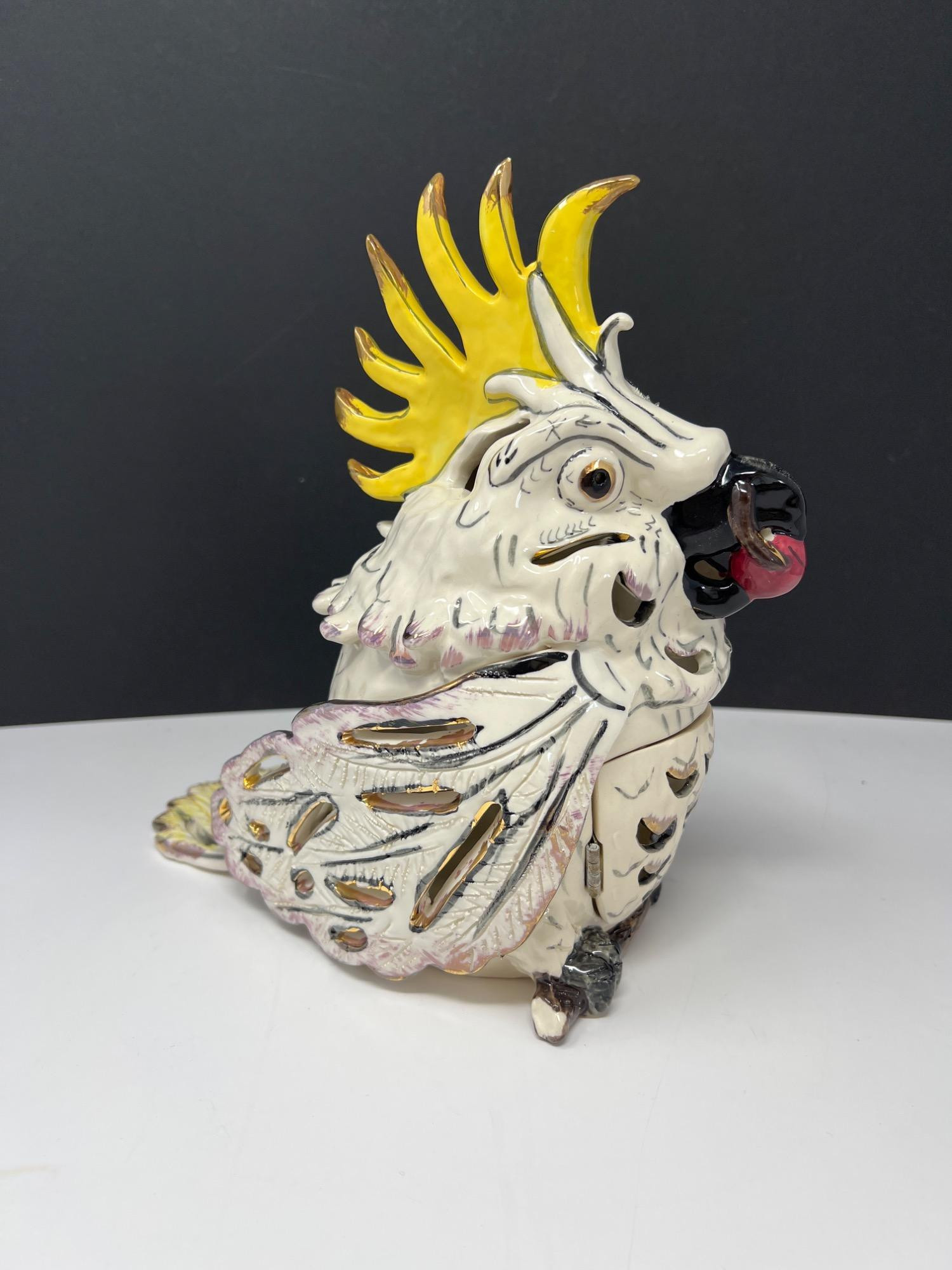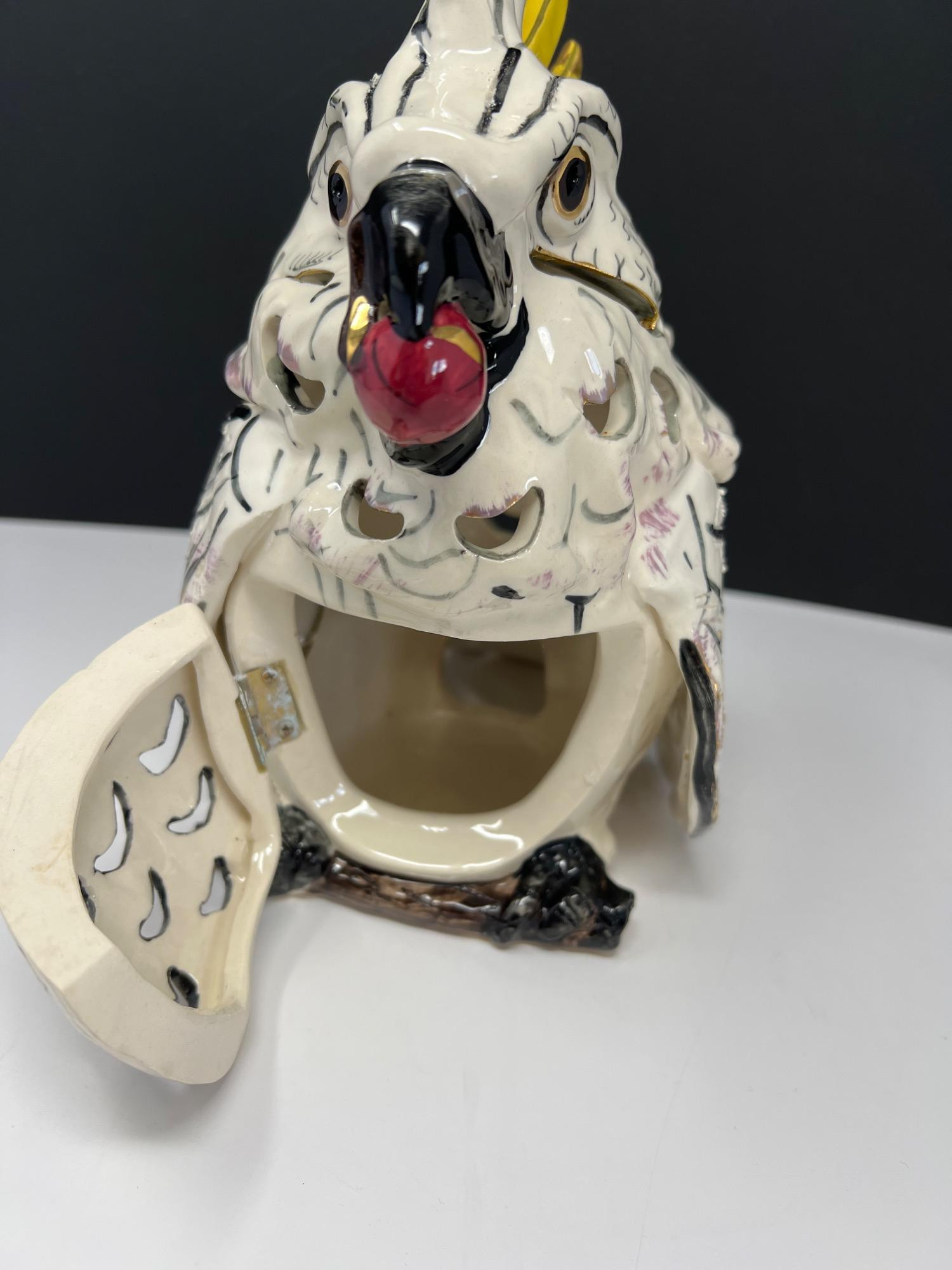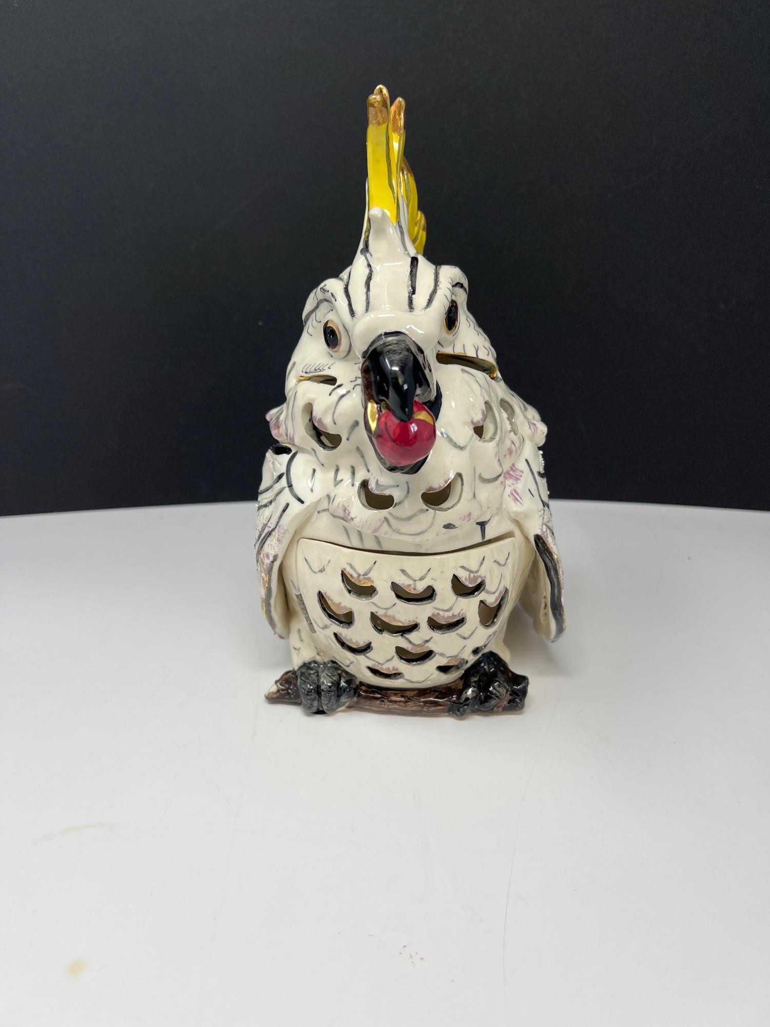 1981 Heather Goldmire, Blue Sky Corp, porcelain cockatoo bird tea lite holder.