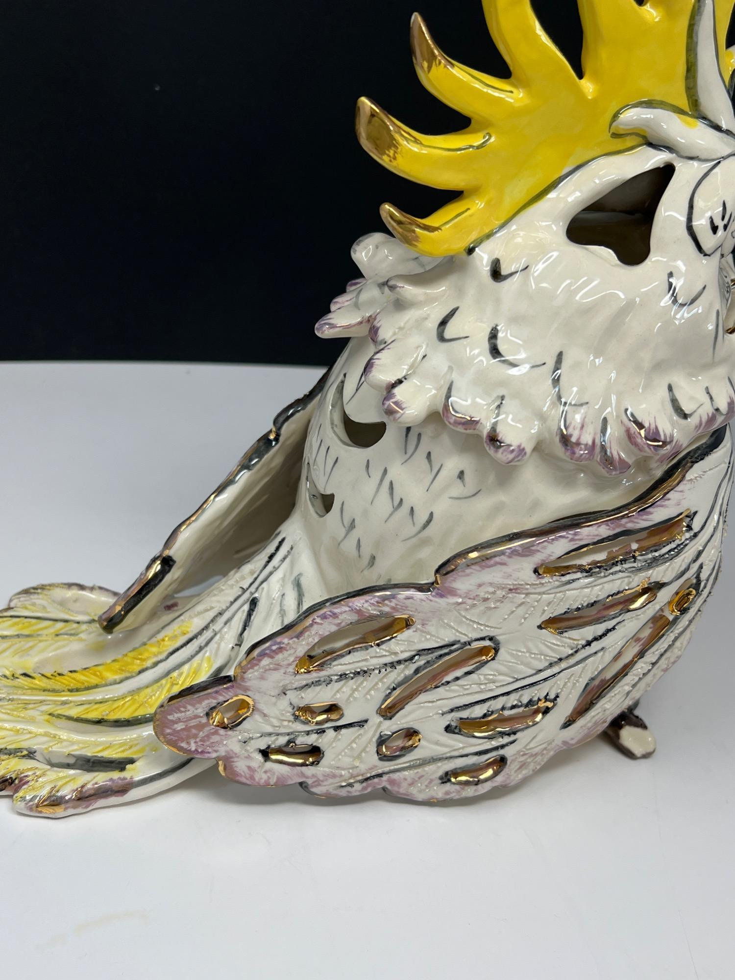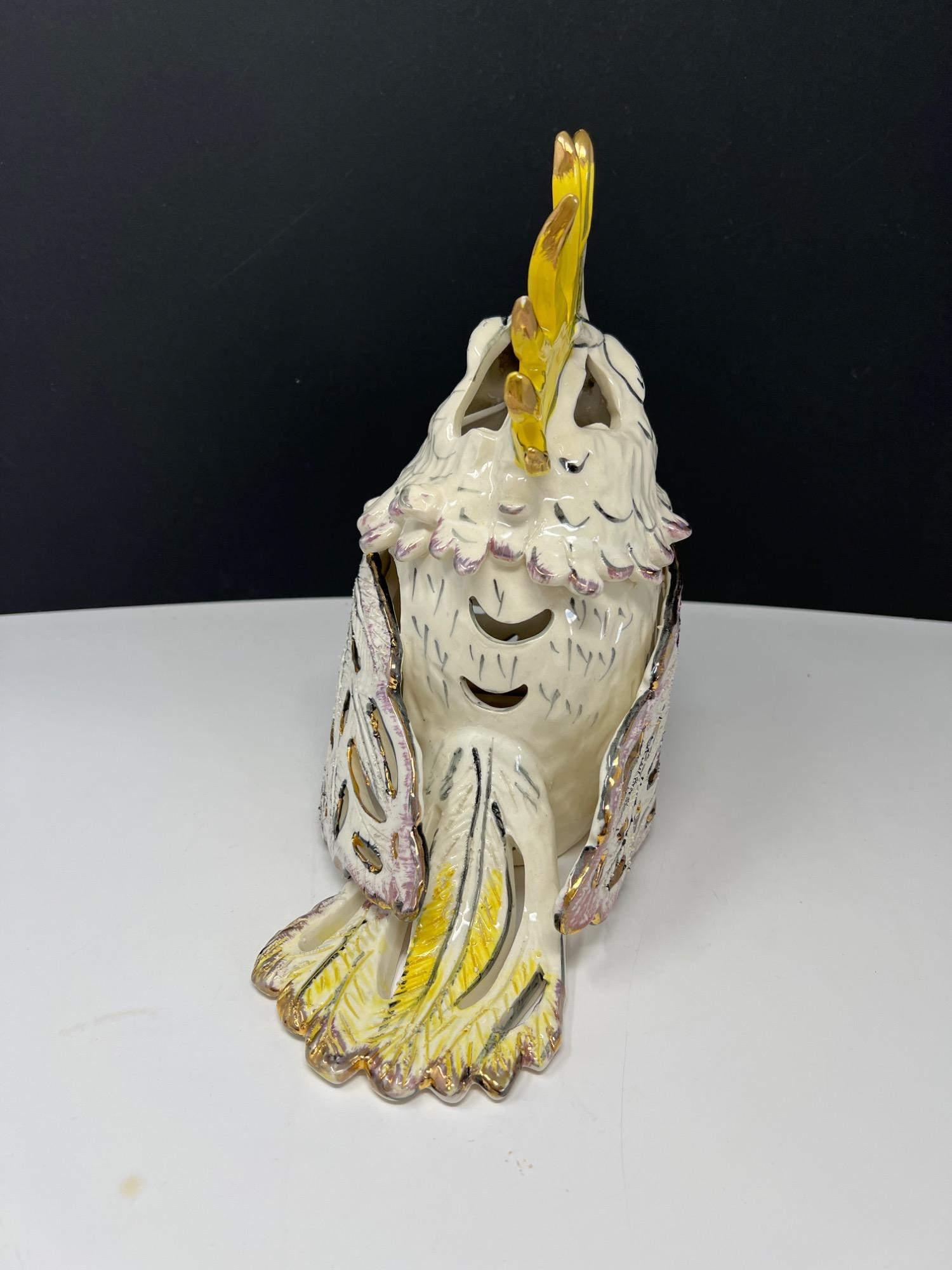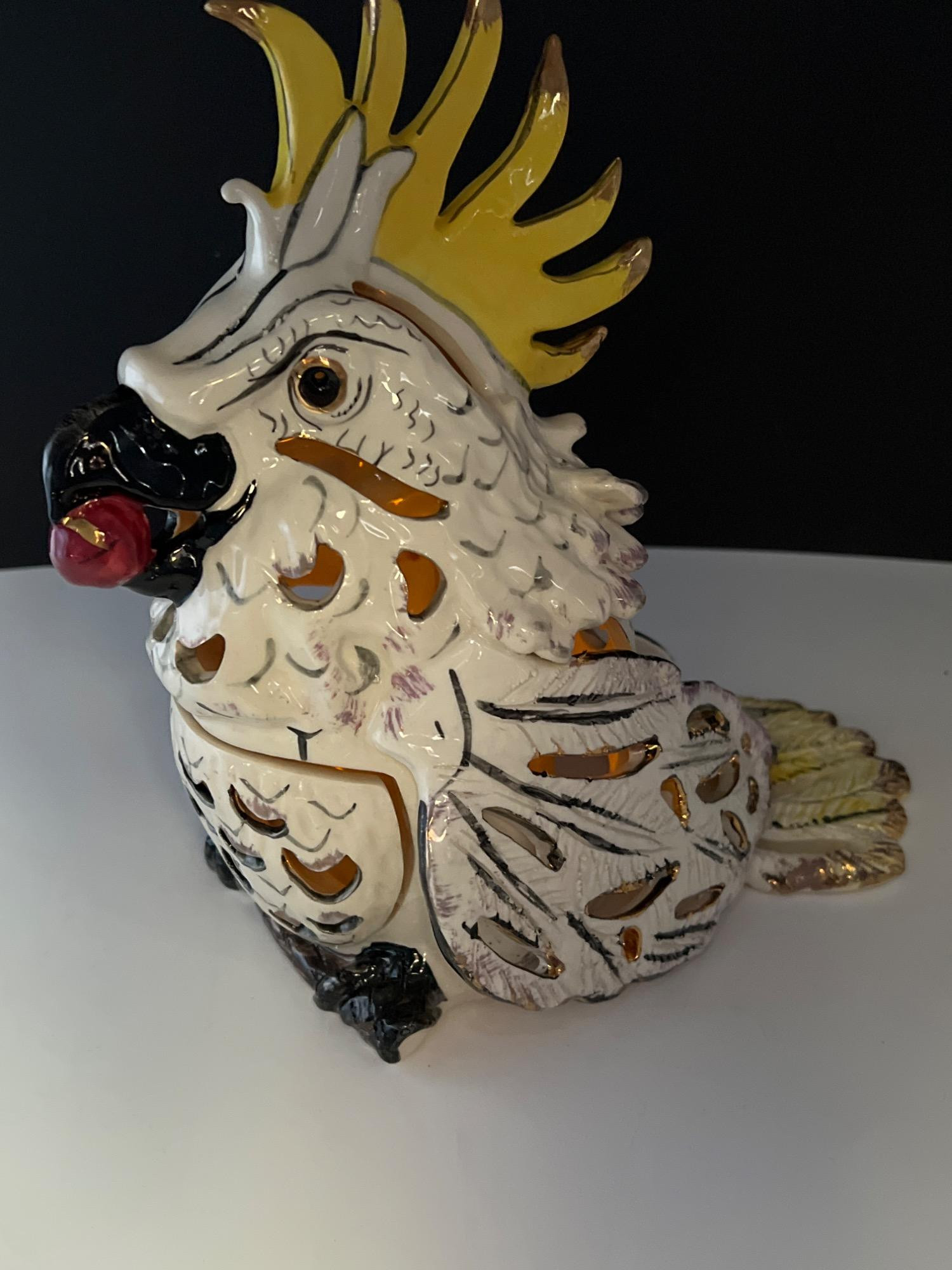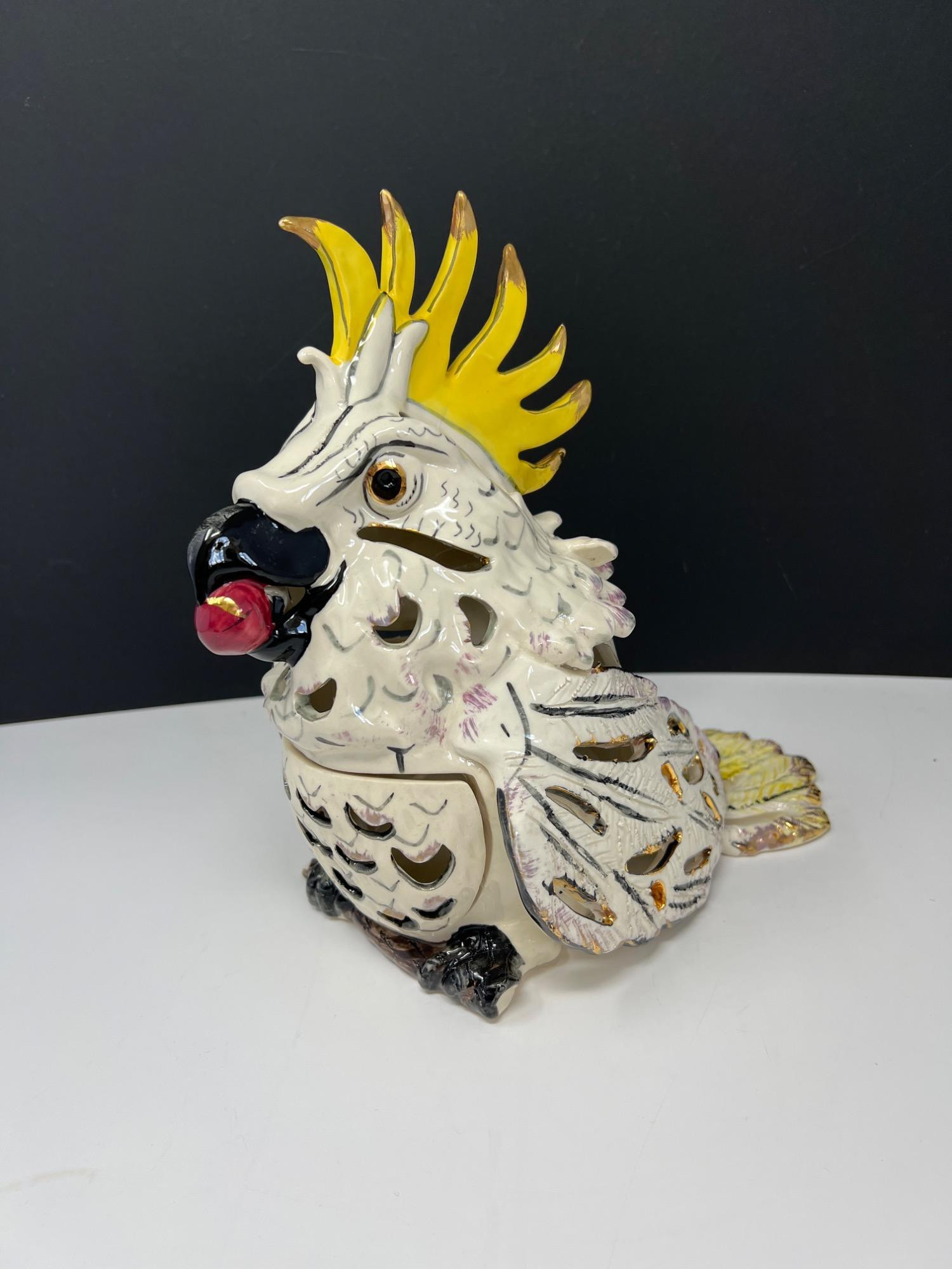 1981 Heather Goldmire, Blue Sky Corp, porcelain cockatoo bird tea lite holder.