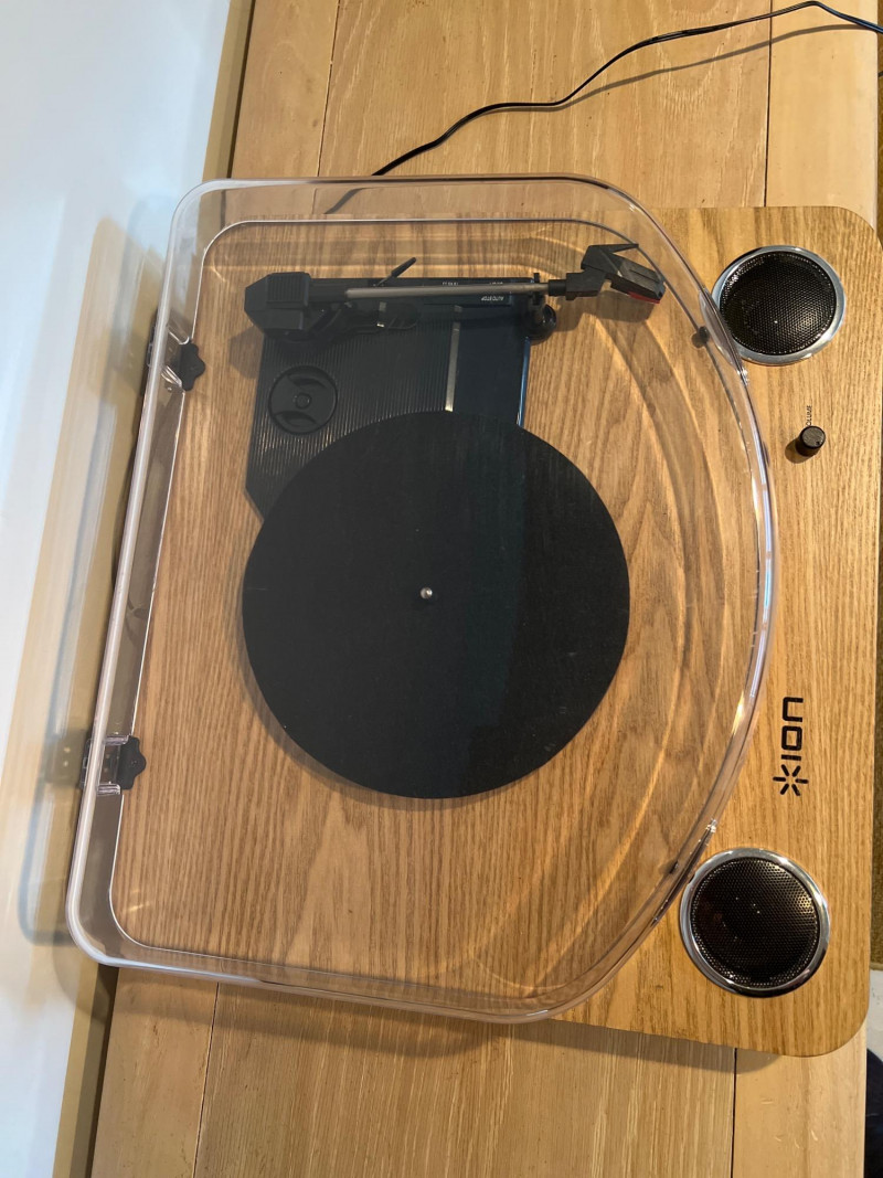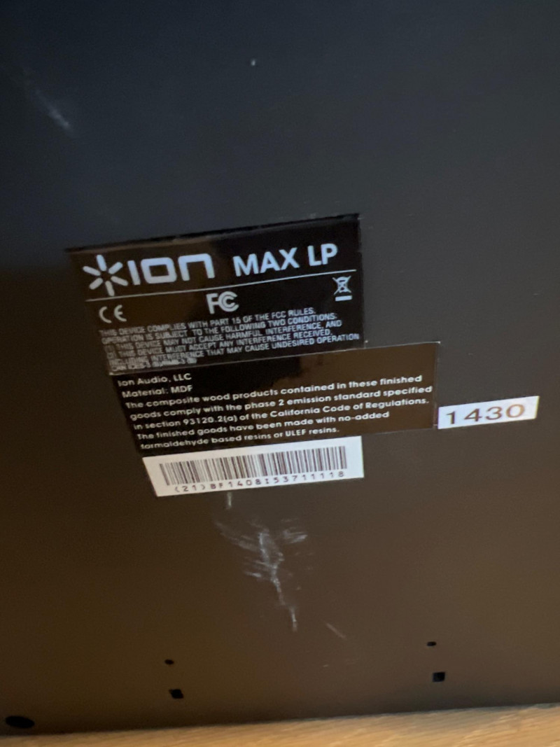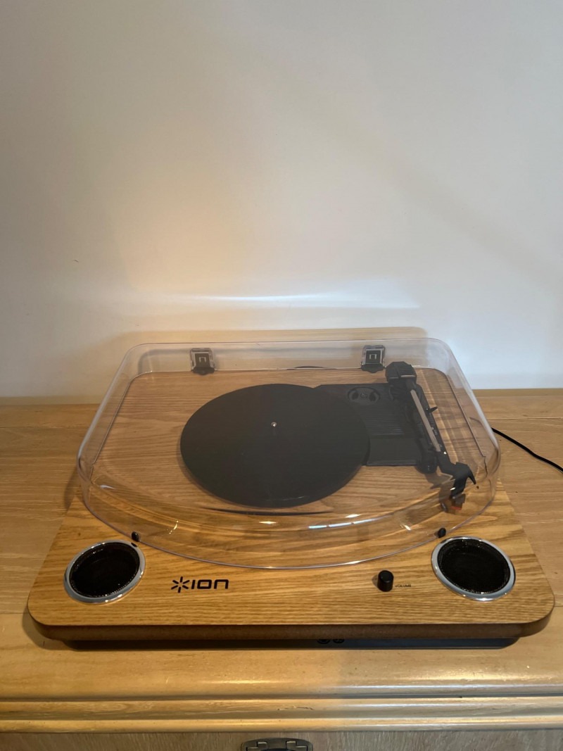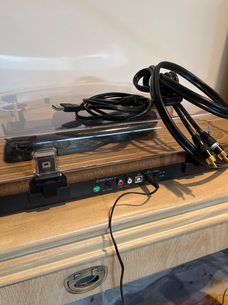 The Ion Max LP is a versatile turntable with a natural wood base that adds a touch of elegance to its design. It's an all-in-one record player that supports three playback speeds (33 1/3, 45, and 78 RPM), making it compatible with a wide range of vinyl records. One of its standout features is the USB connectivity, which allows you to digitize your vinyl collection using the included EZ Vinyl/Tape Converter software. It also has an auxiliary input for connecting other audio sources, such as cassette players or CD players. Used. Powers on. No further testing.