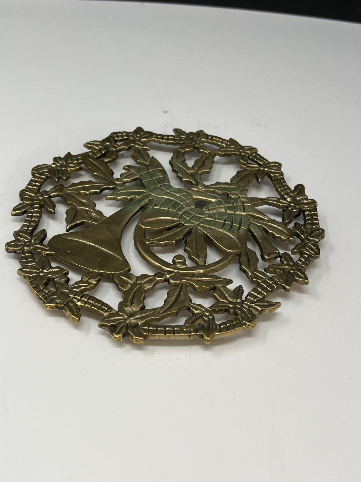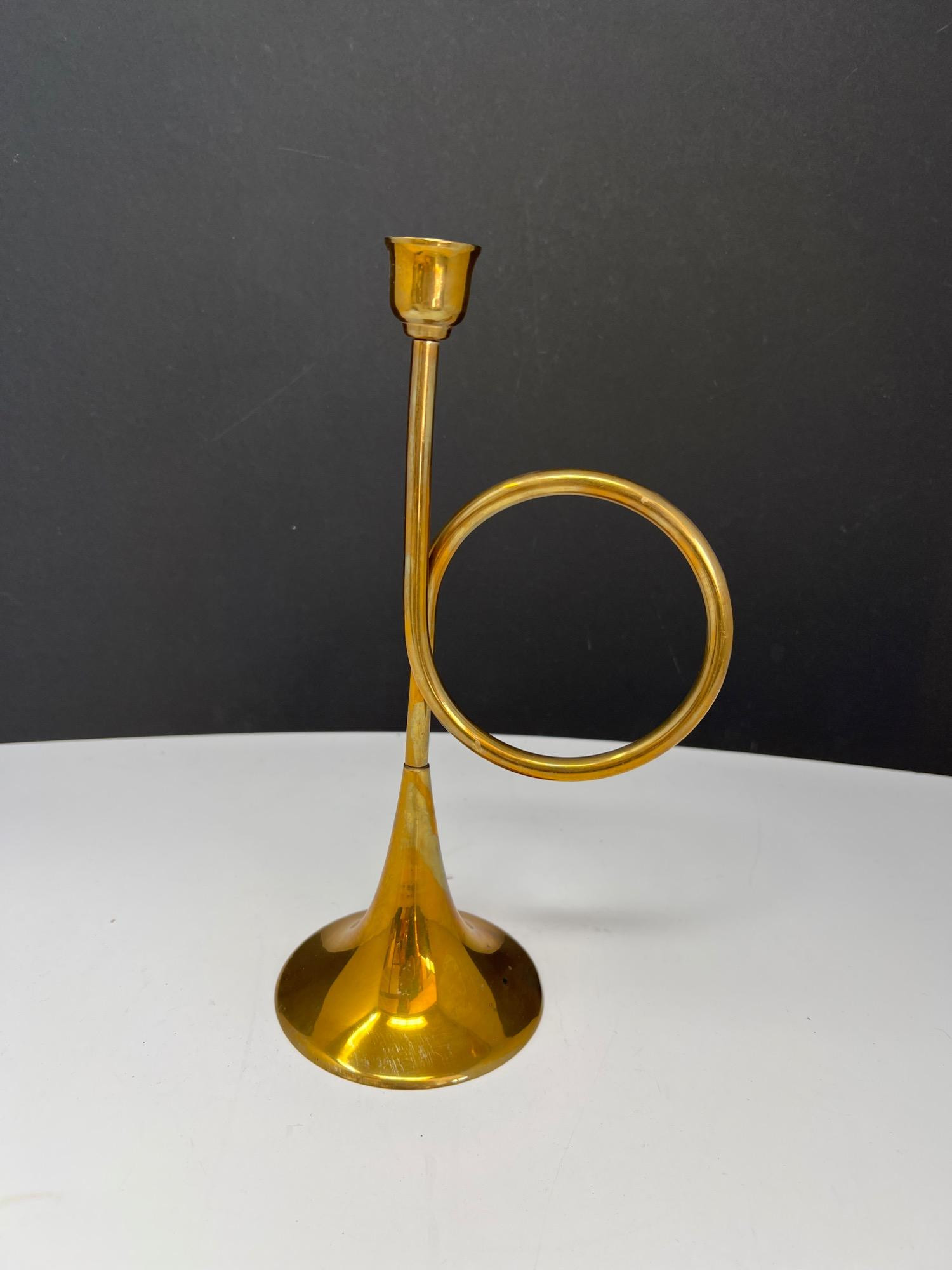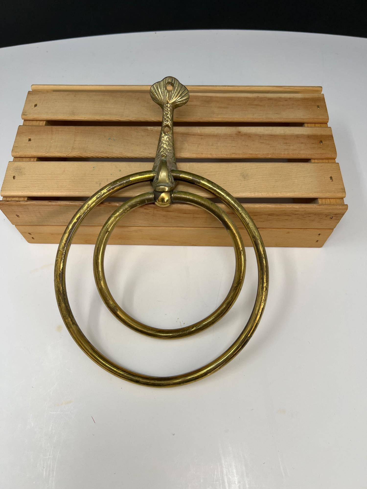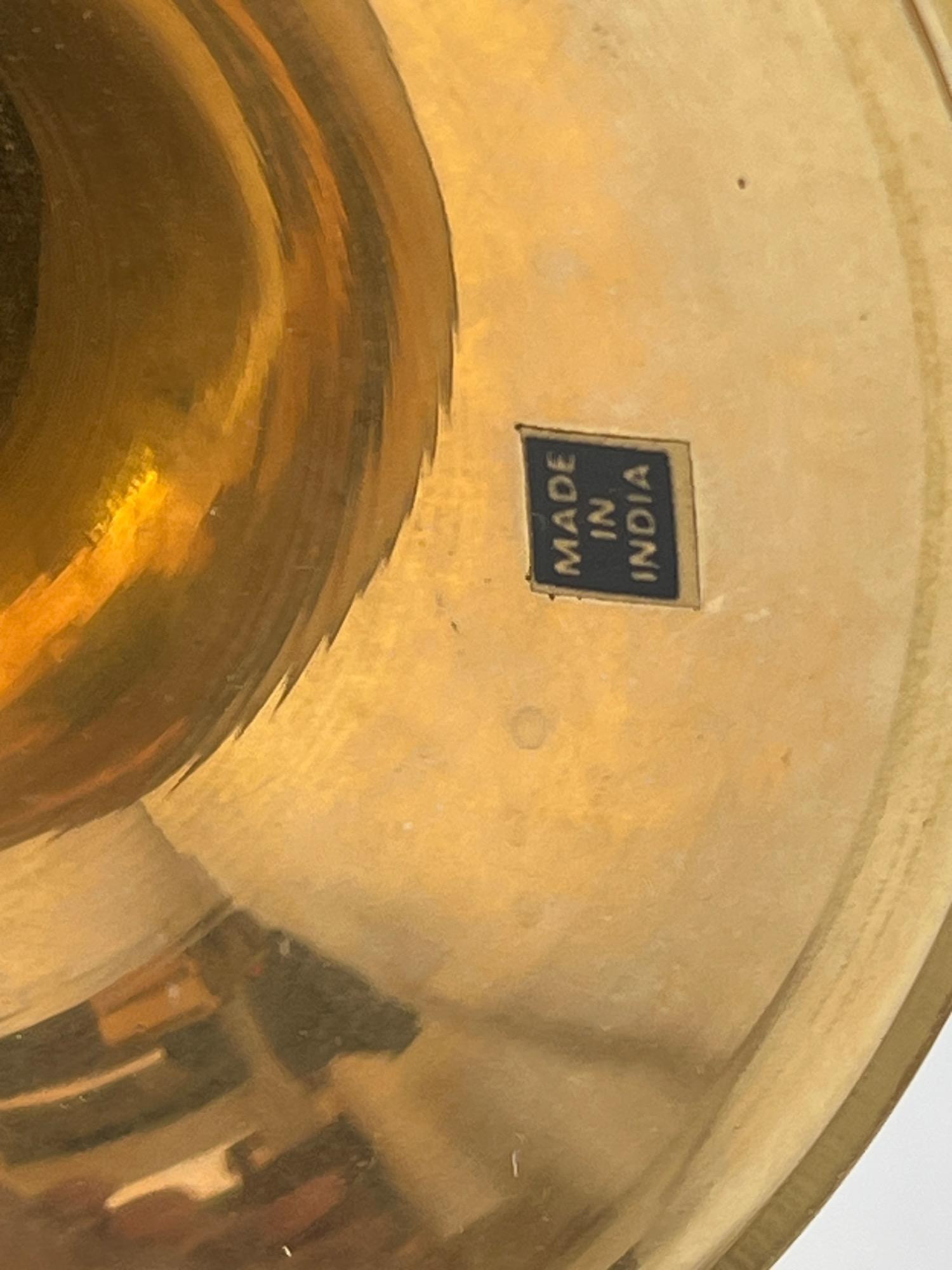 Variety of brass decorations including a vintage rocking horse, decor bugle (made in India), trivet, towel holder, pitcher, chains for hanging light fixtures, two vintage brass lamps, and copper/brass collander - and much more.