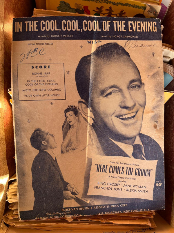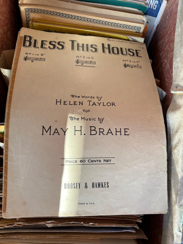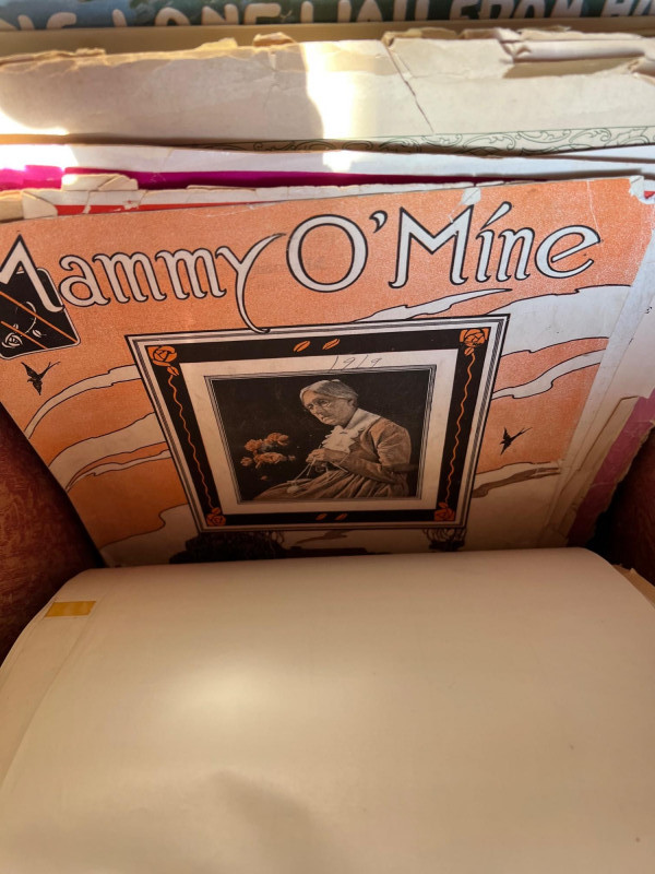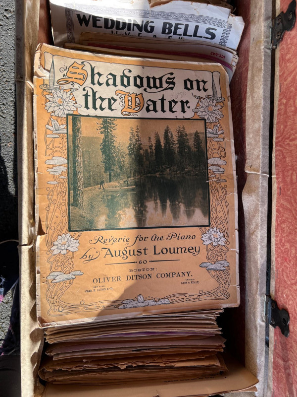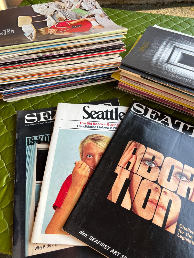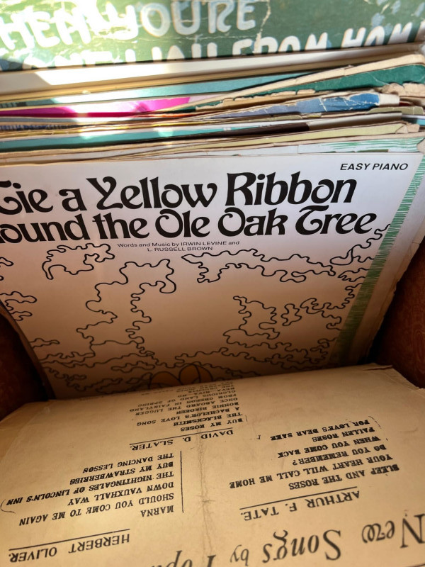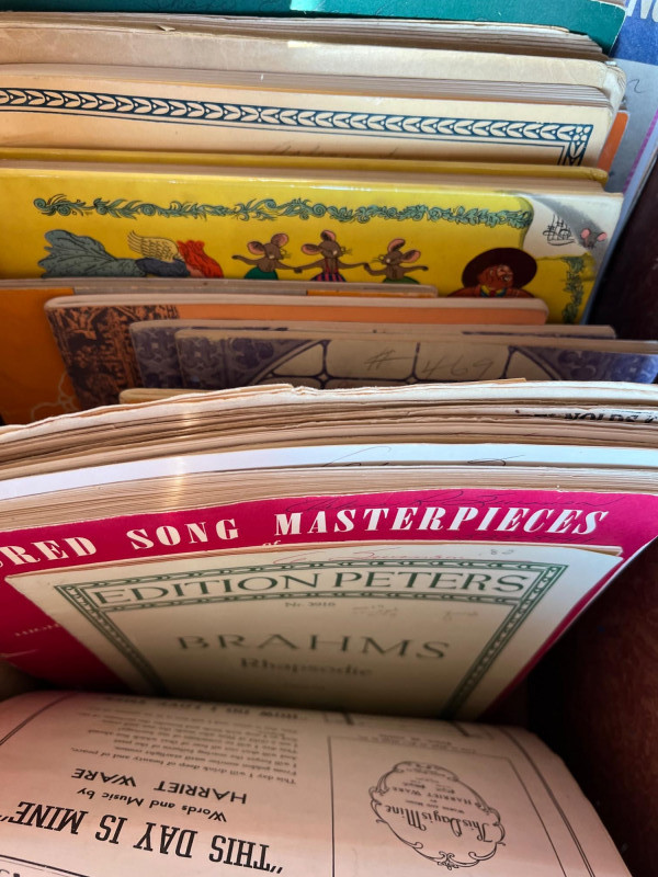 Mid century vinyl covered wood box (with padded top) filled with Seattle Opera brochure programs, Seattle Magazines, and musical sheet music. Seattle Opera brochures are the originals from 1969 to 1980s (later changed name to Encore). Some years included with this new brochure title. Seattle - The Pacific Northwest Magazine from the 1970s - 1980s. Loads of sheet music from early 1900's to 1980's. Several genres.