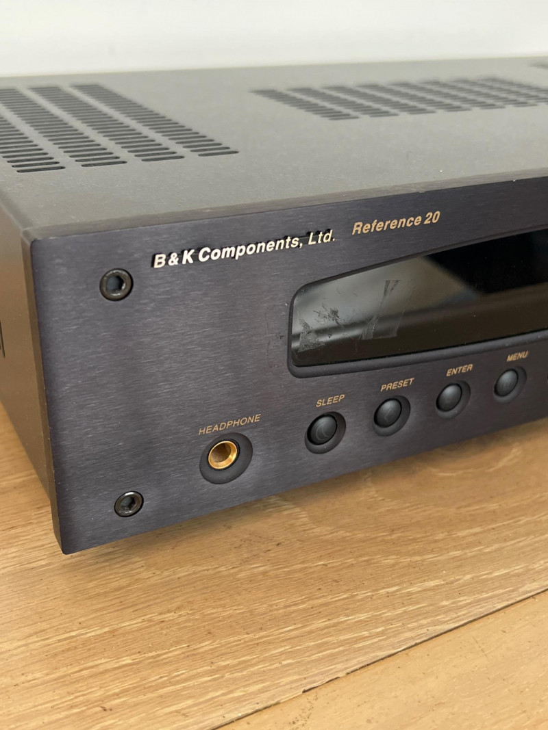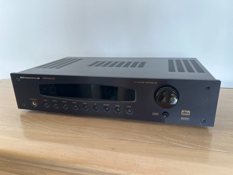 The B&K Components Reference 20 Preamp Controller is a high-quality audio device designed for home theater systems. It supports 5.1 channels, offering surround sound capabilities for an immersive listening experience. This preamp controller is known for its robust build and excellent sound quality. It includes features like digital inputs, subwoofer control, and multi-channel analog inputs for SACD and DVD Audio. Does not have HDMI connectivity, but great for two channel listening or older home theatre systems. No power cord available.