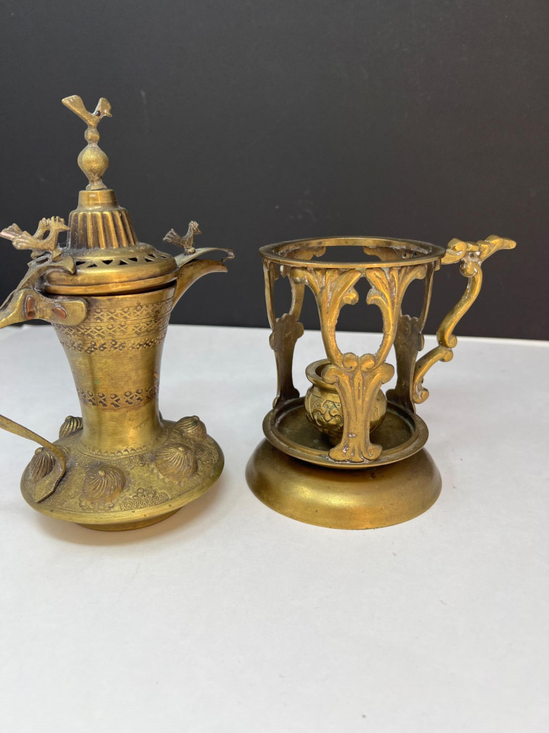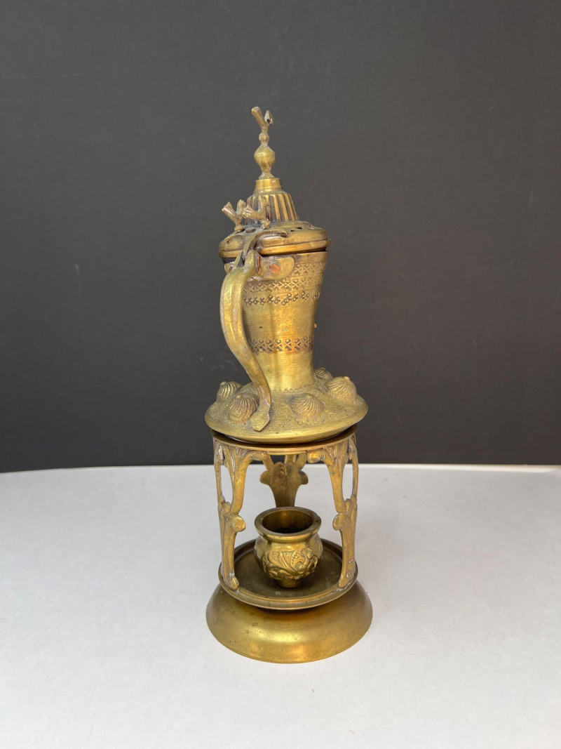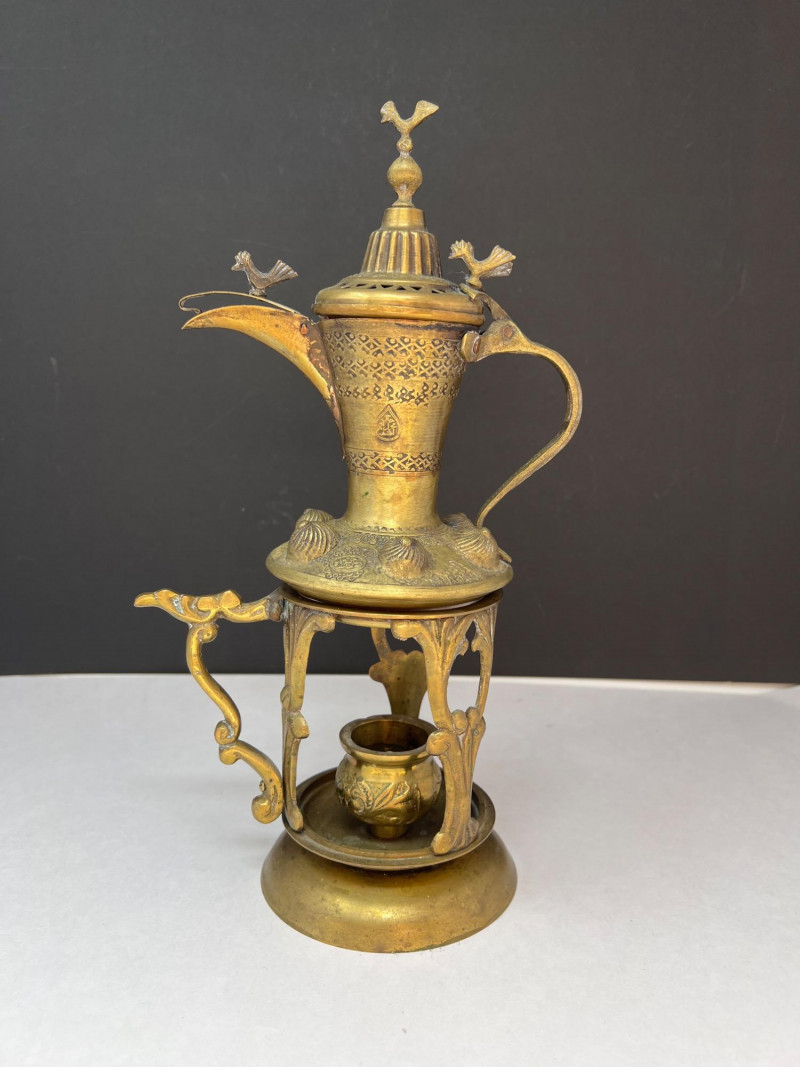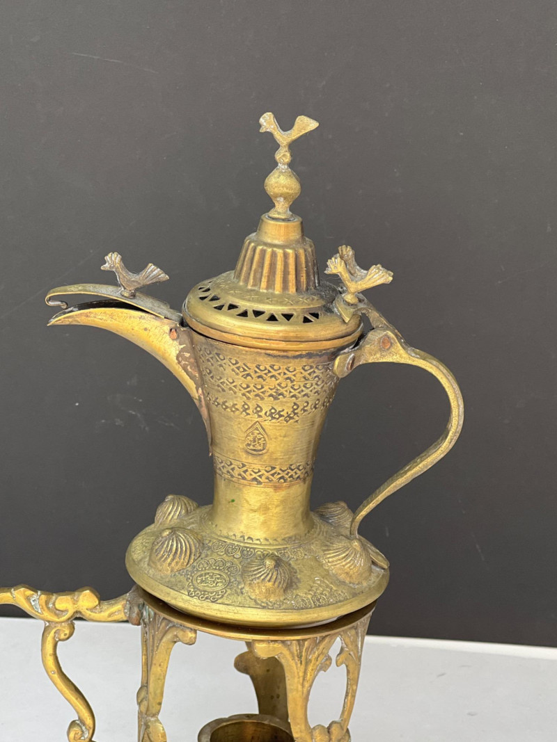 Lot # 181 - Antique Brass Arabic Dallah Coffee Pot with Burner