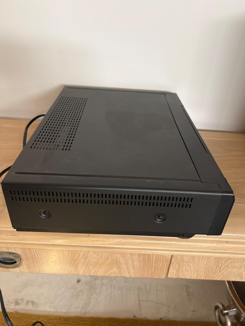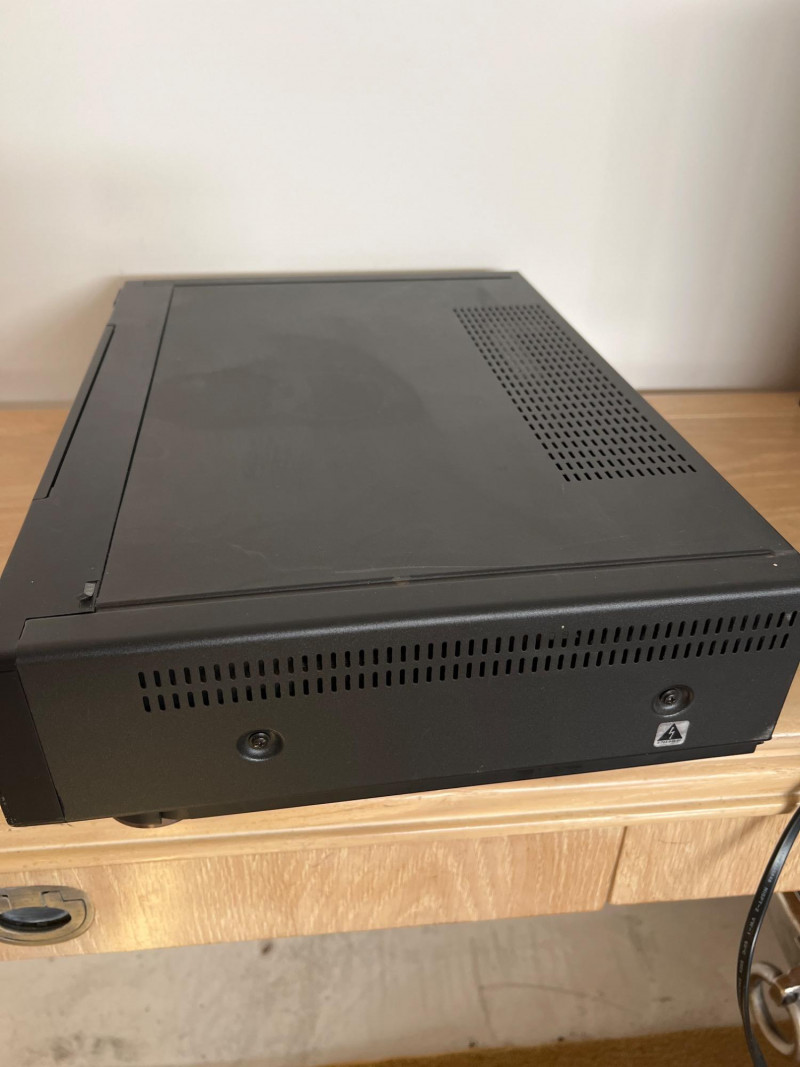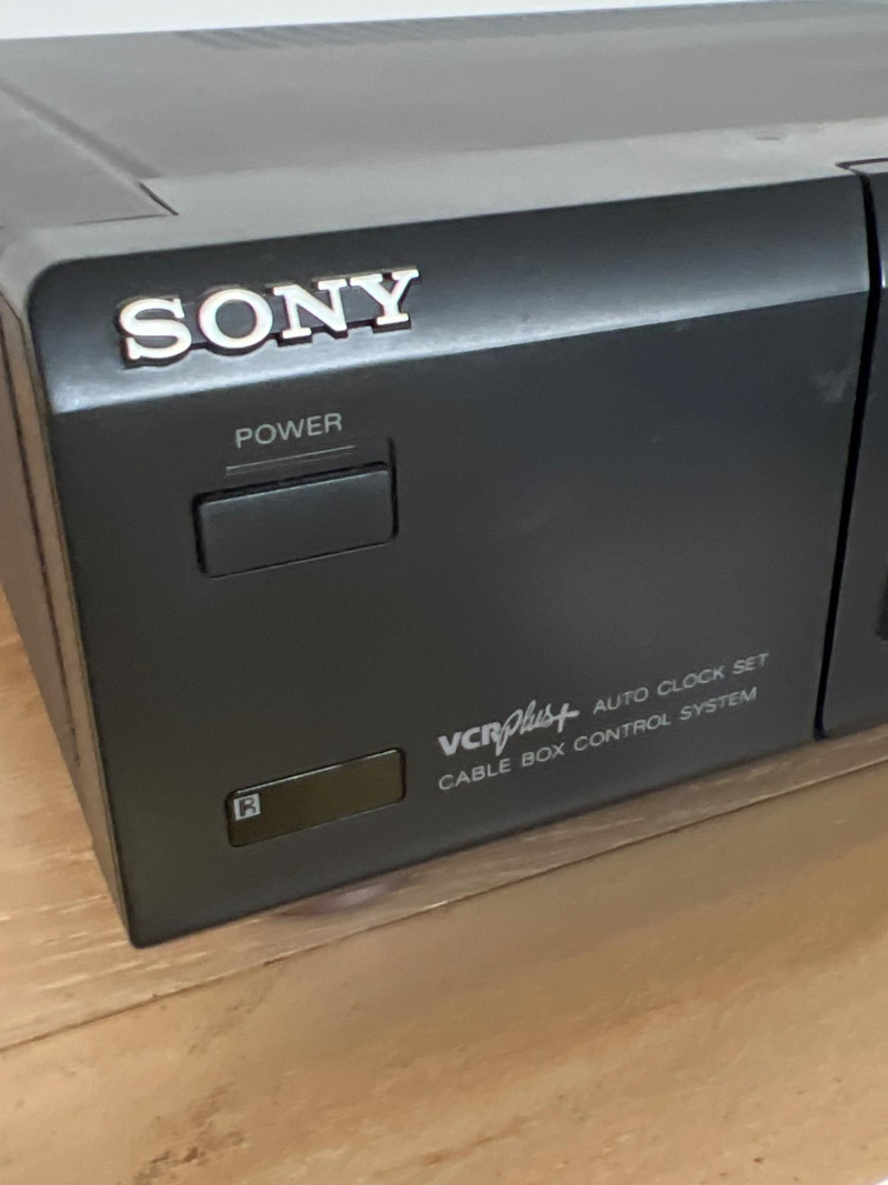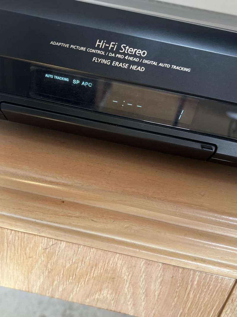 The Sony SLV-960HF VHS Player is a vintage 4-head Hi-Fi VCR known for its high-quality playback and recording capabilities. It features stereo sound, dual azimuth recording, and playback options, making it a reliable choice for enjoying VHS tapes. The design includes a flip-down control panel with AV inputs, a large LCD display, and a glow-in-the-dark multi-brand remote for convenience.This model also supports features like slow motion, frame-by-frame advance, and commercial skip, enhancing the viewing experience. Unit powers on. No further testing.