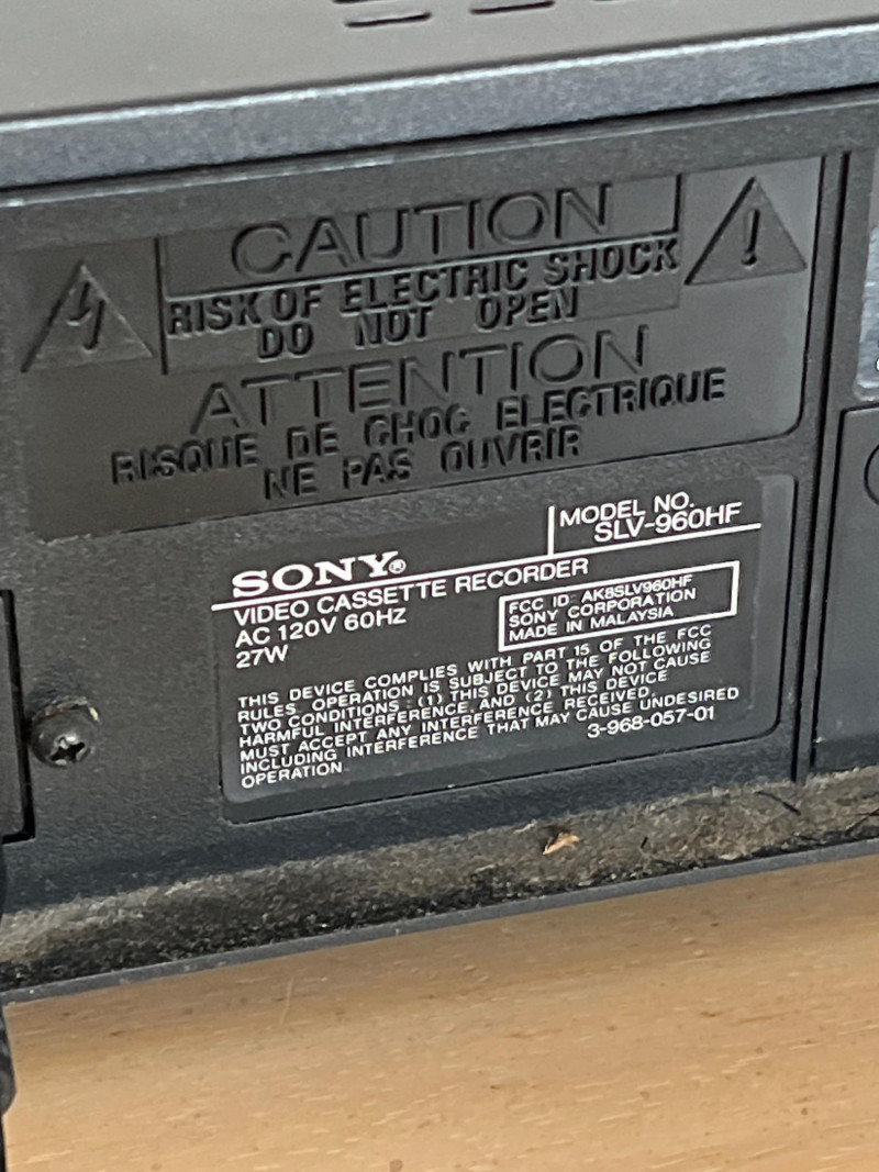 Lot # 184 - Sony Model SLV-960HF VHS Player
